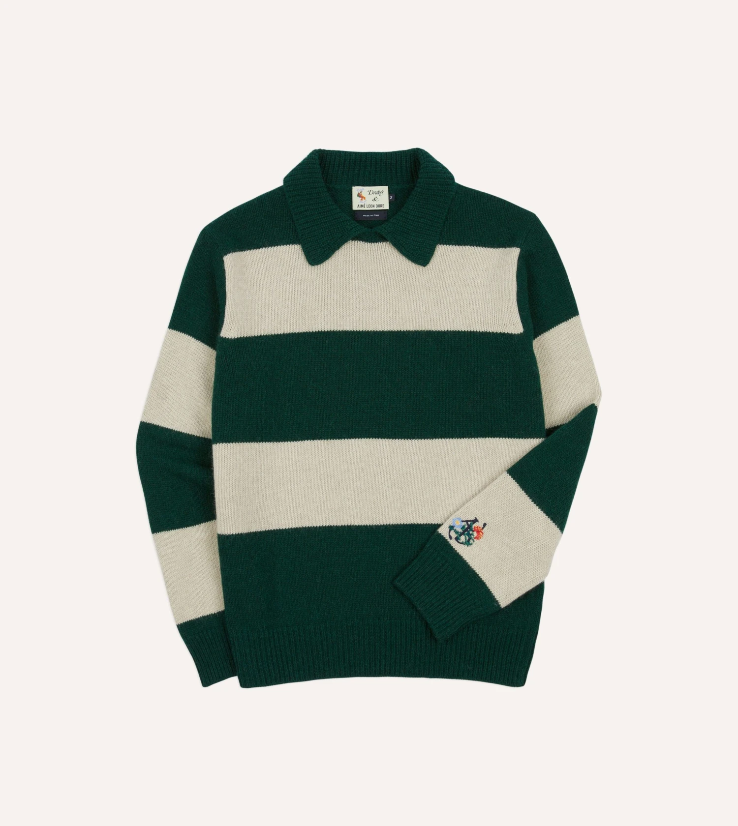 - Green & grey striped sweater
