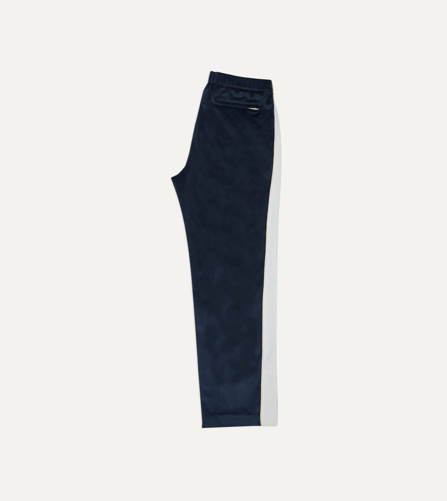 Styled after mid-century athletic gear, featuring twill weave piping, embroidered artwork and on seam pockets, these jogging bottoms are authentic 20th century Americana, reimagined for the British sartorial climate.