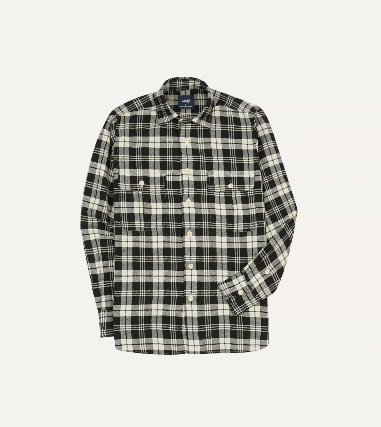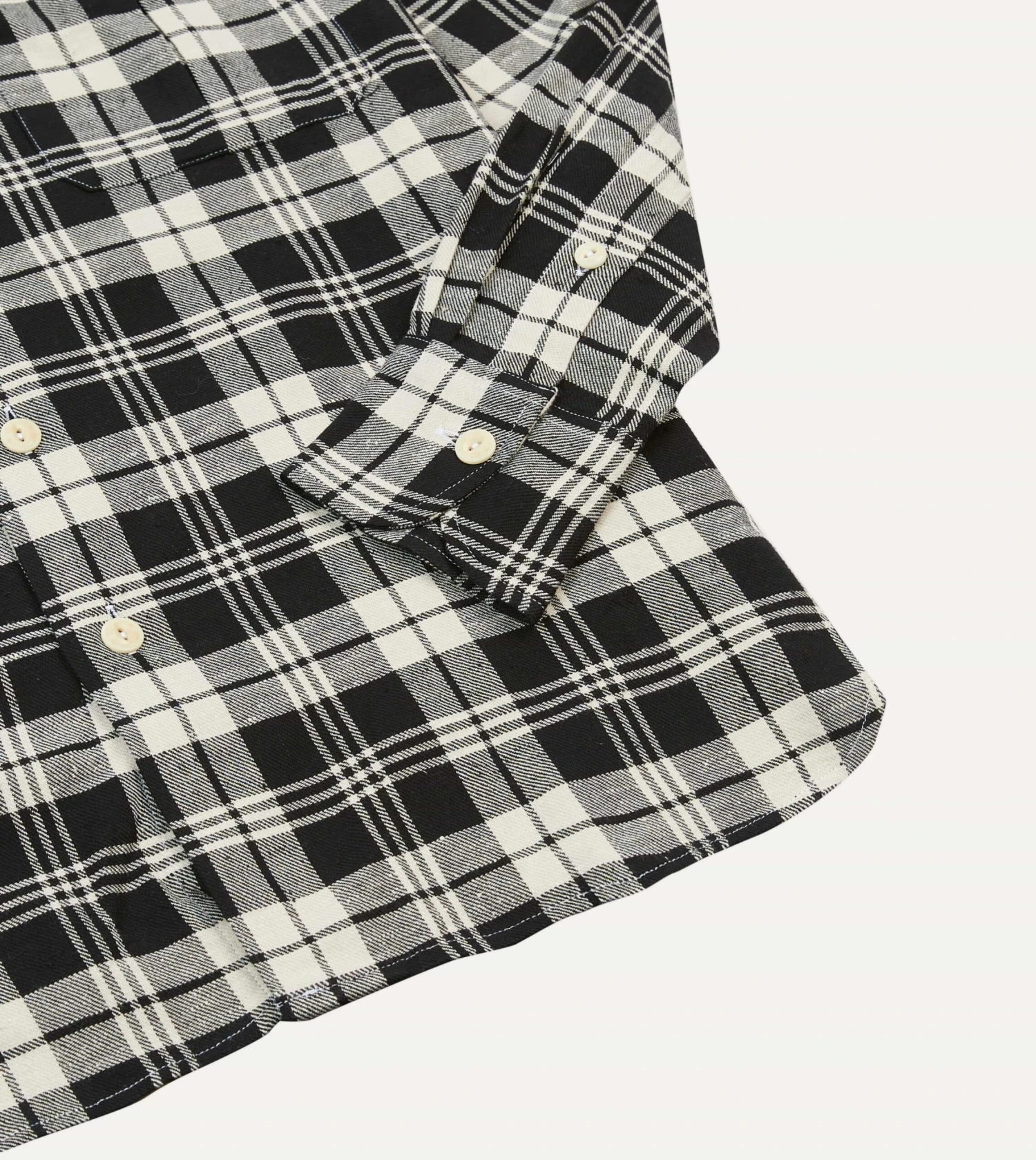 Black And White Check Brushed Cotton Two-Pocket Work Shirt