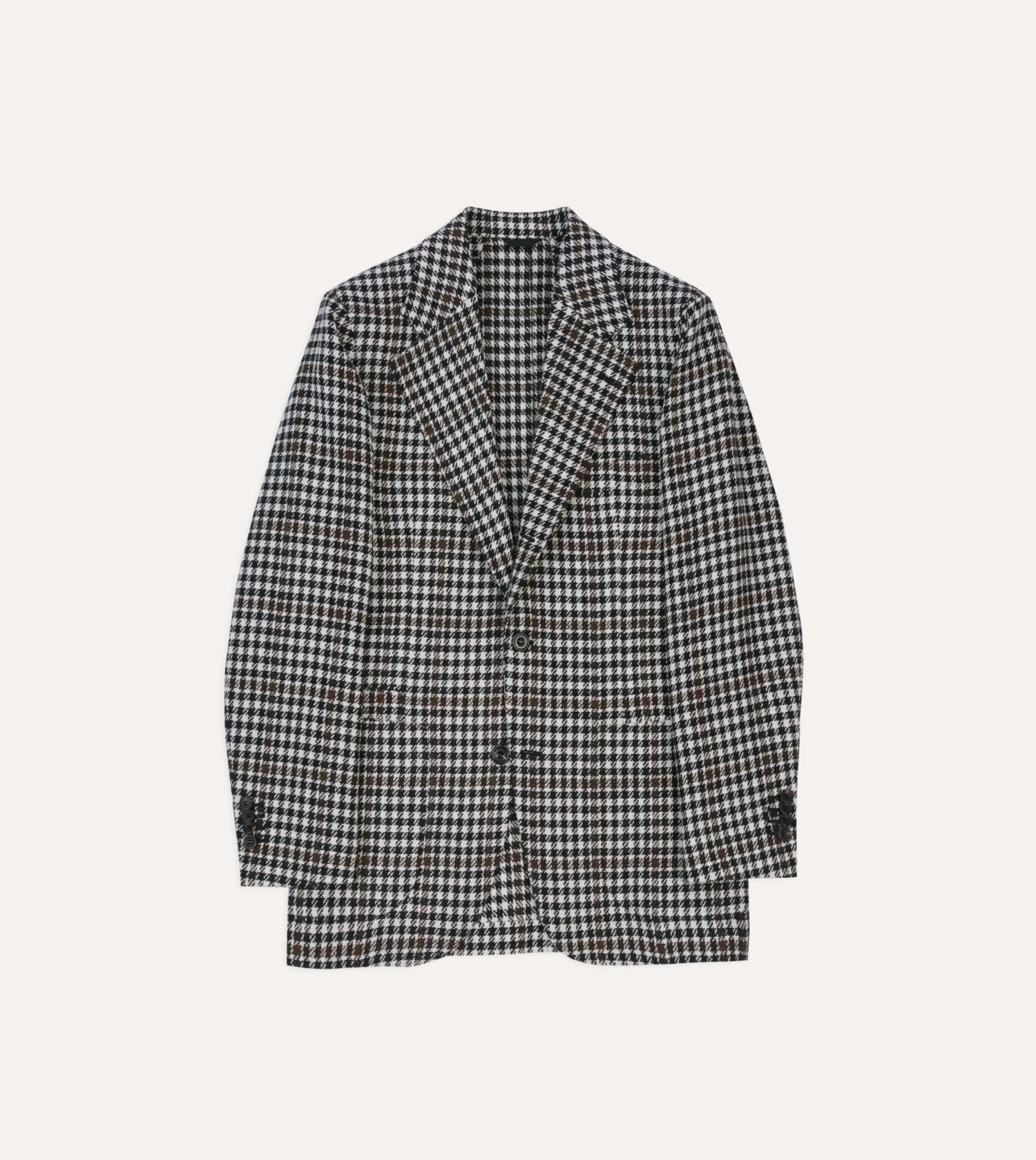 Few patterns are as enduring as the classic houndstooth check. This beautifully textured wool blazer boasts a deceptively rich colour palette, incorporating earthy tonal hues.