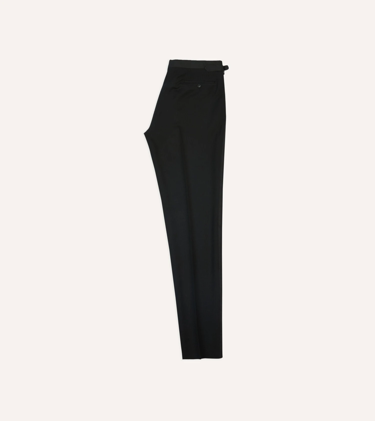 Crafted from a textured barathea wool cloth, the half-lined trousers feature understated details such as an extended tab front, French bearer valueing with interior waistband curtaining, an after-dinner split to the rear, and side adjusters in lieu of belt loops.