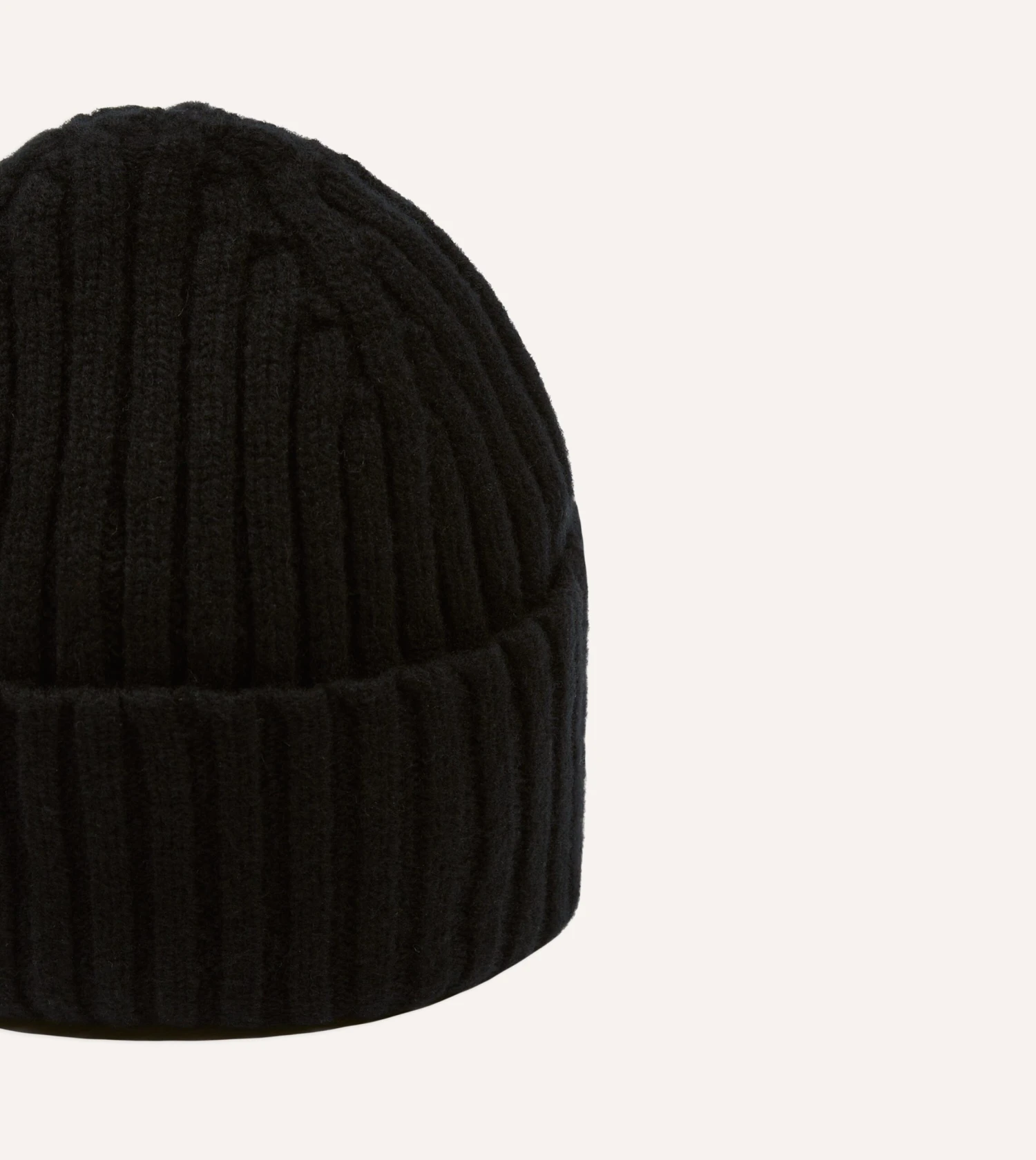 Black Lambswool Ribbed Knit Cap