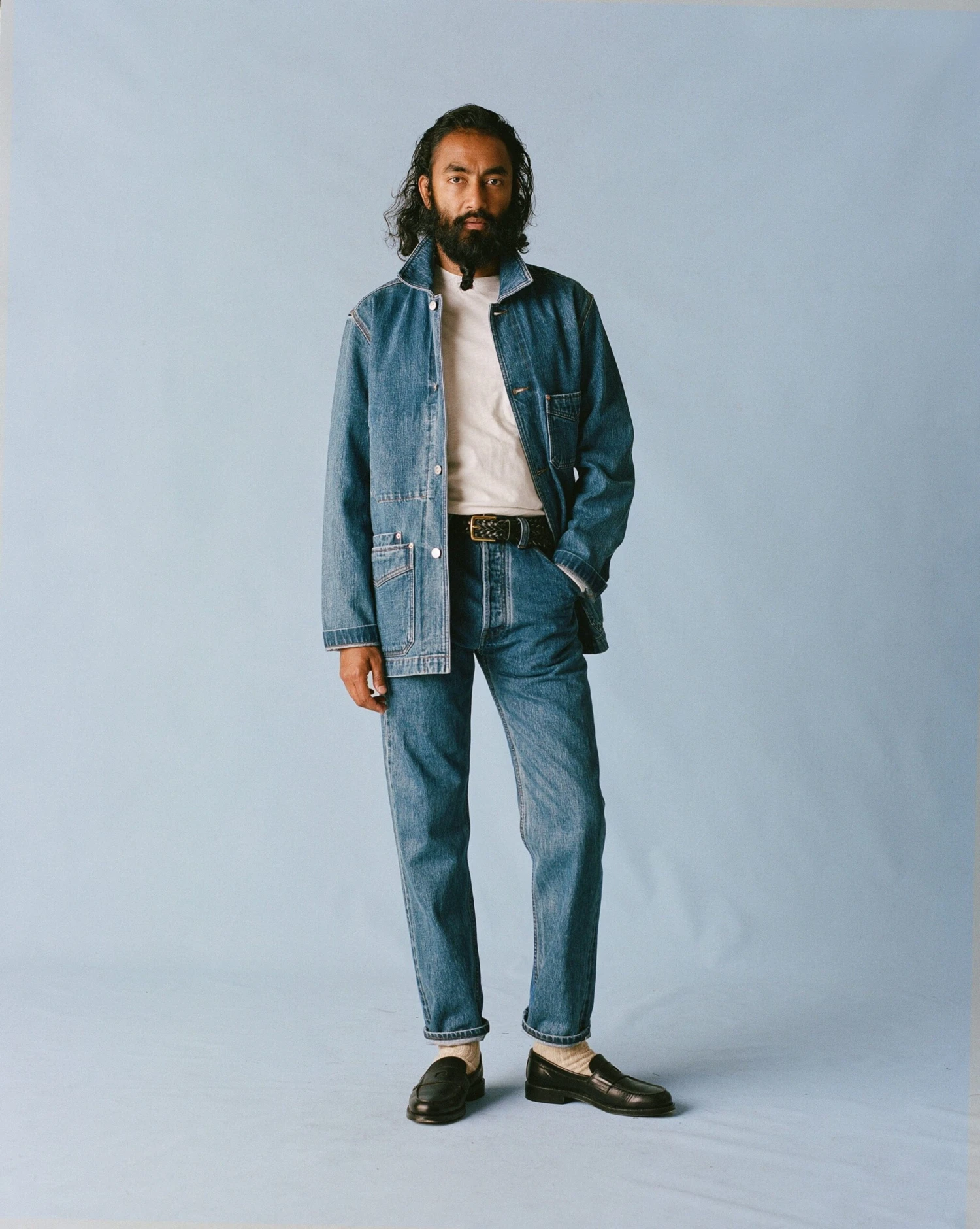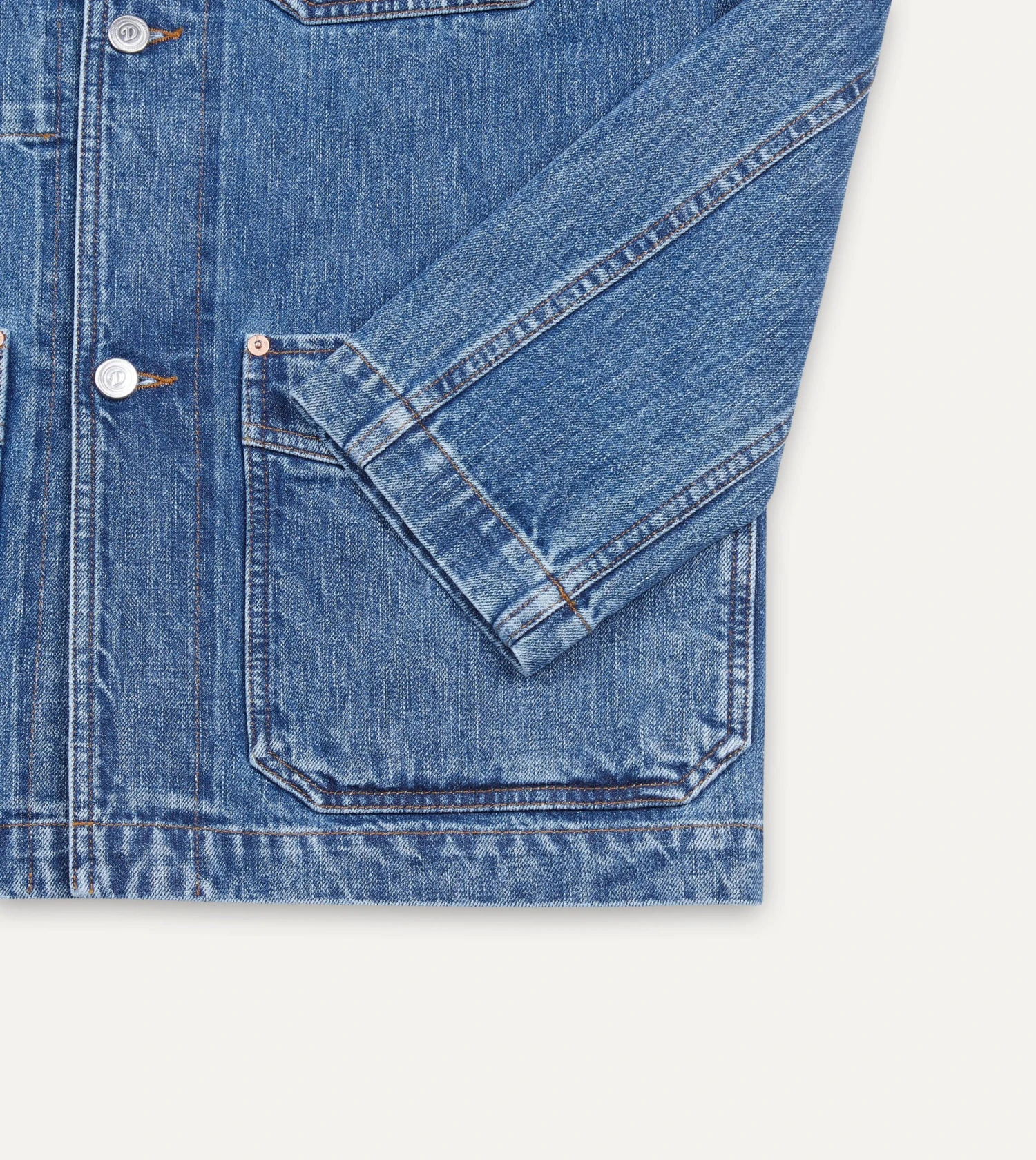 Bleach Wash Selvedge Denim Five-Pocket Chore Jacket