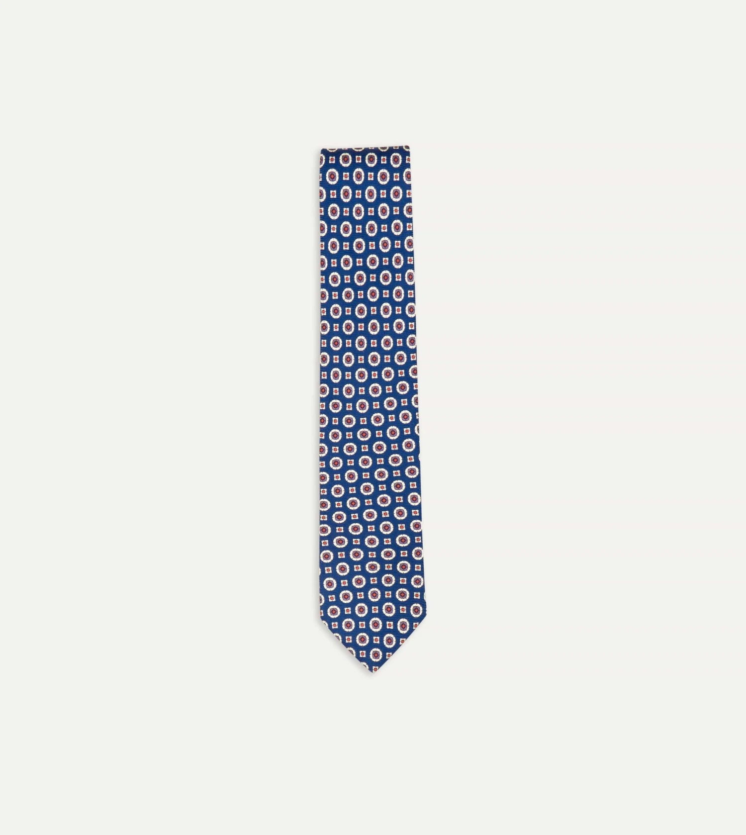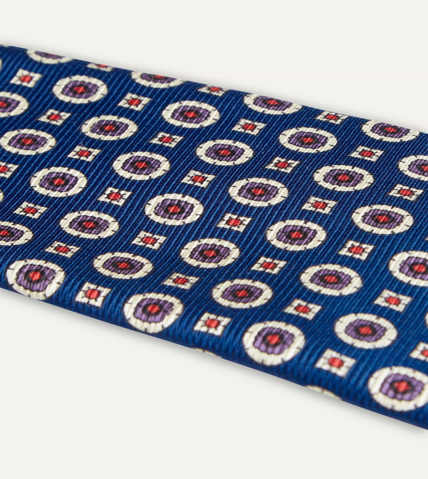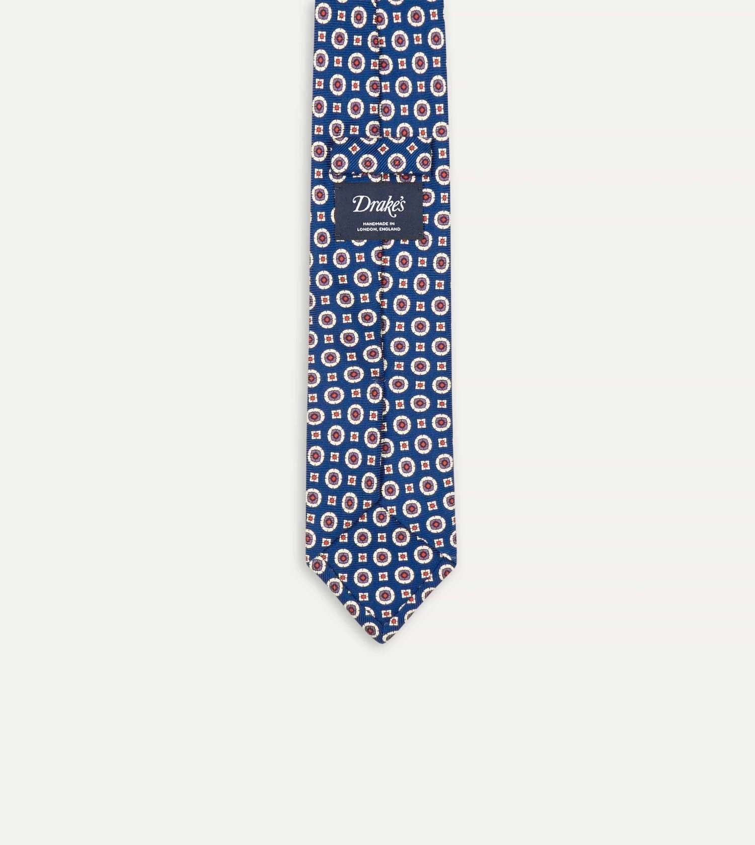 An ornate medallion design simply exudes elegance, particularly when printed on pure silk and hand rolled by our dedicated tiemakers in the heart of east London.