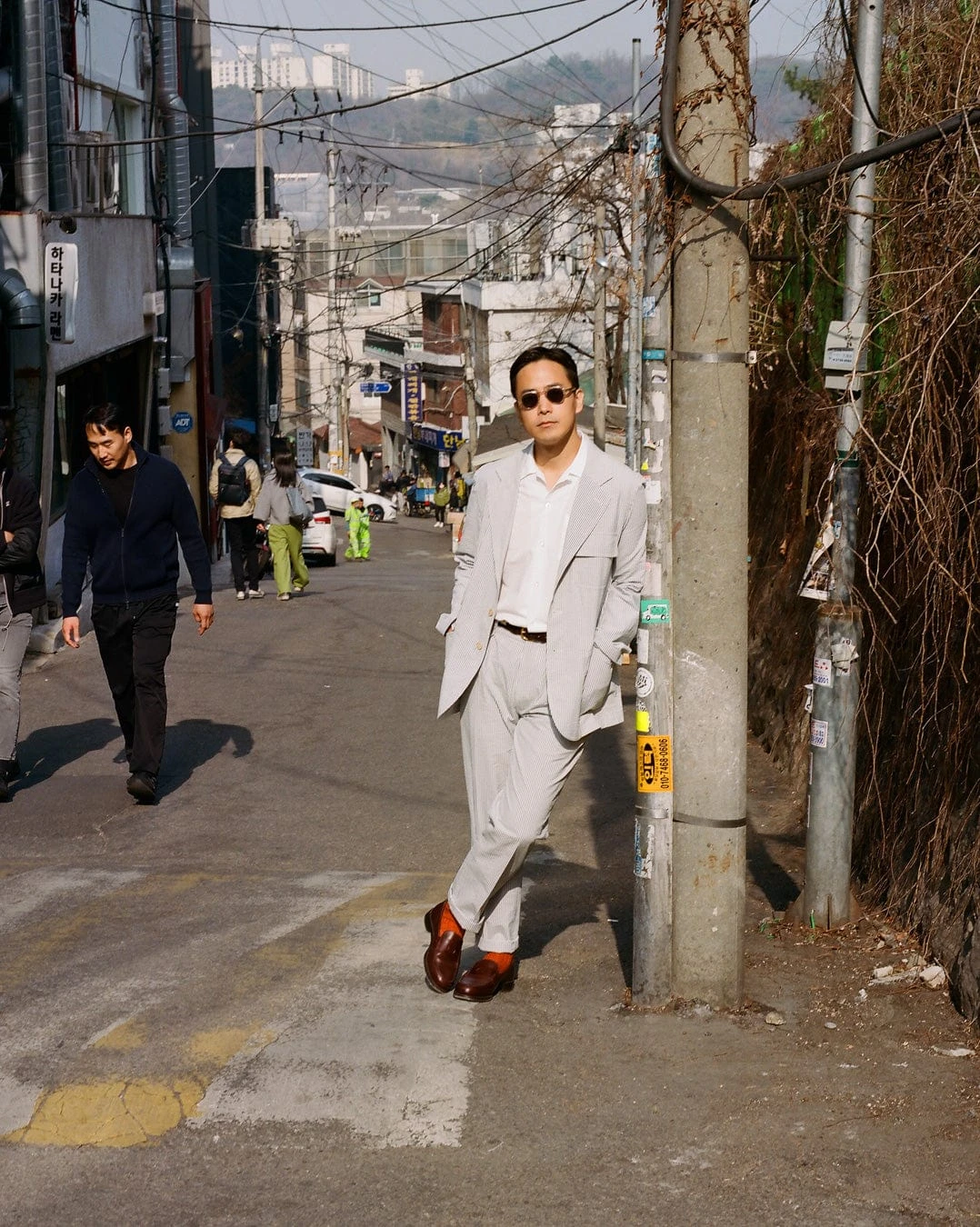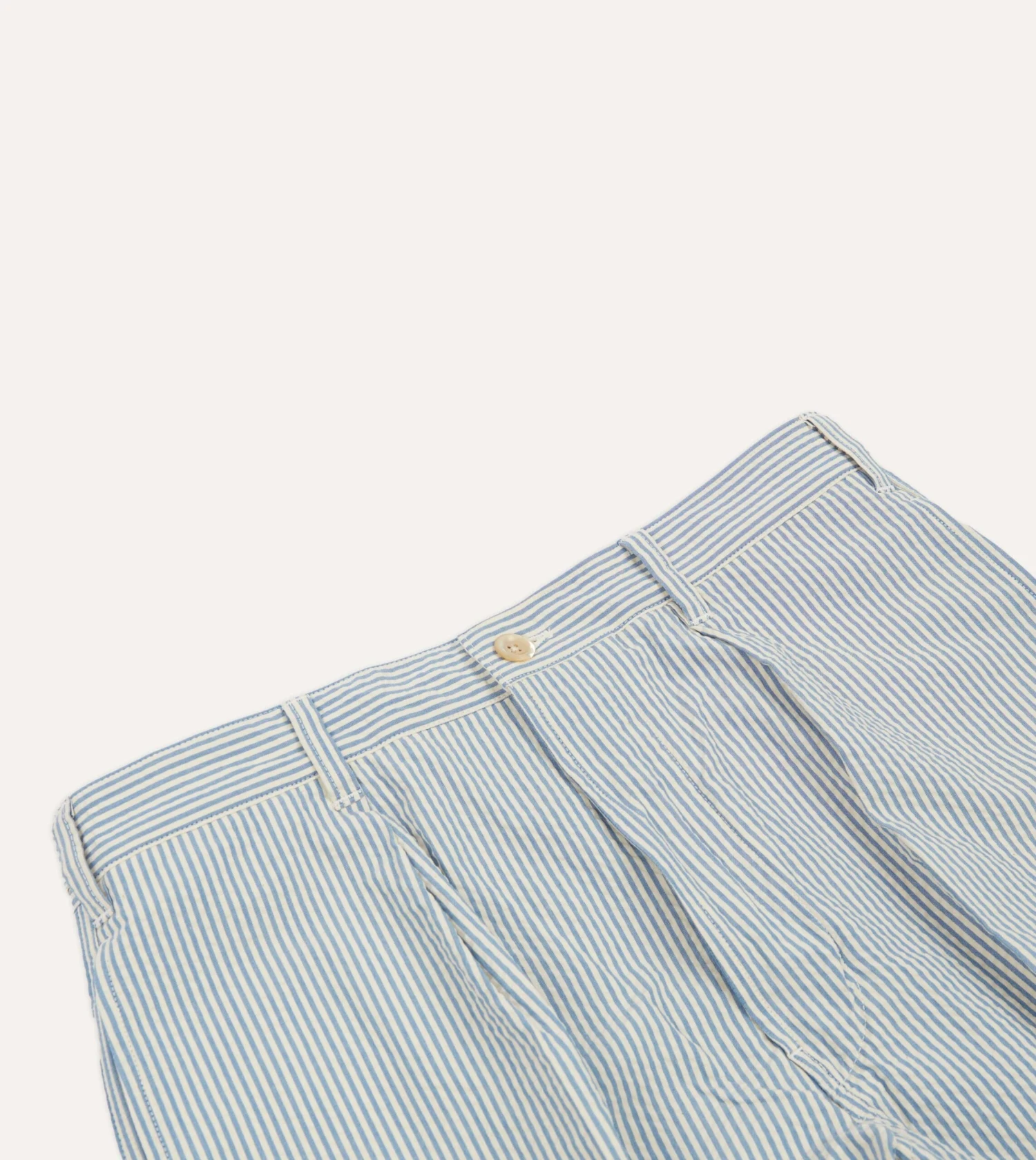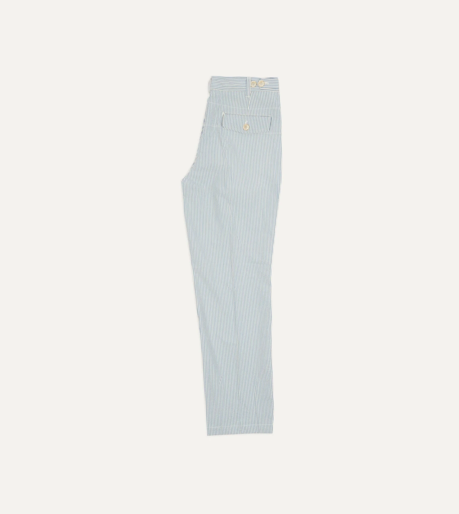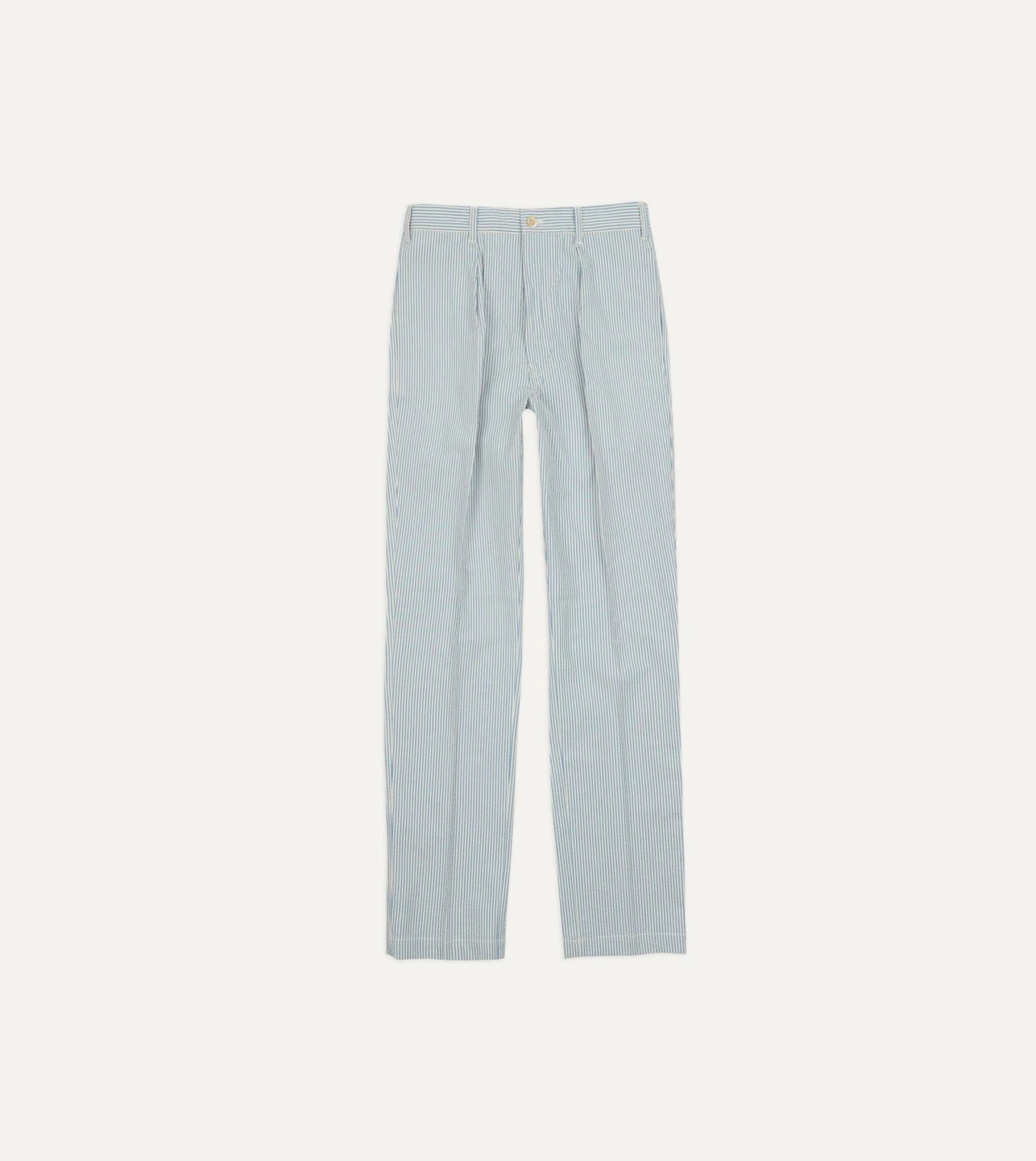 Cut from a soft seersucker cotton, they feature single pleats for greater freedom of movement, with a gentle taper below the knee, affording a clean, stylish silhouette suitable for year-round wear.