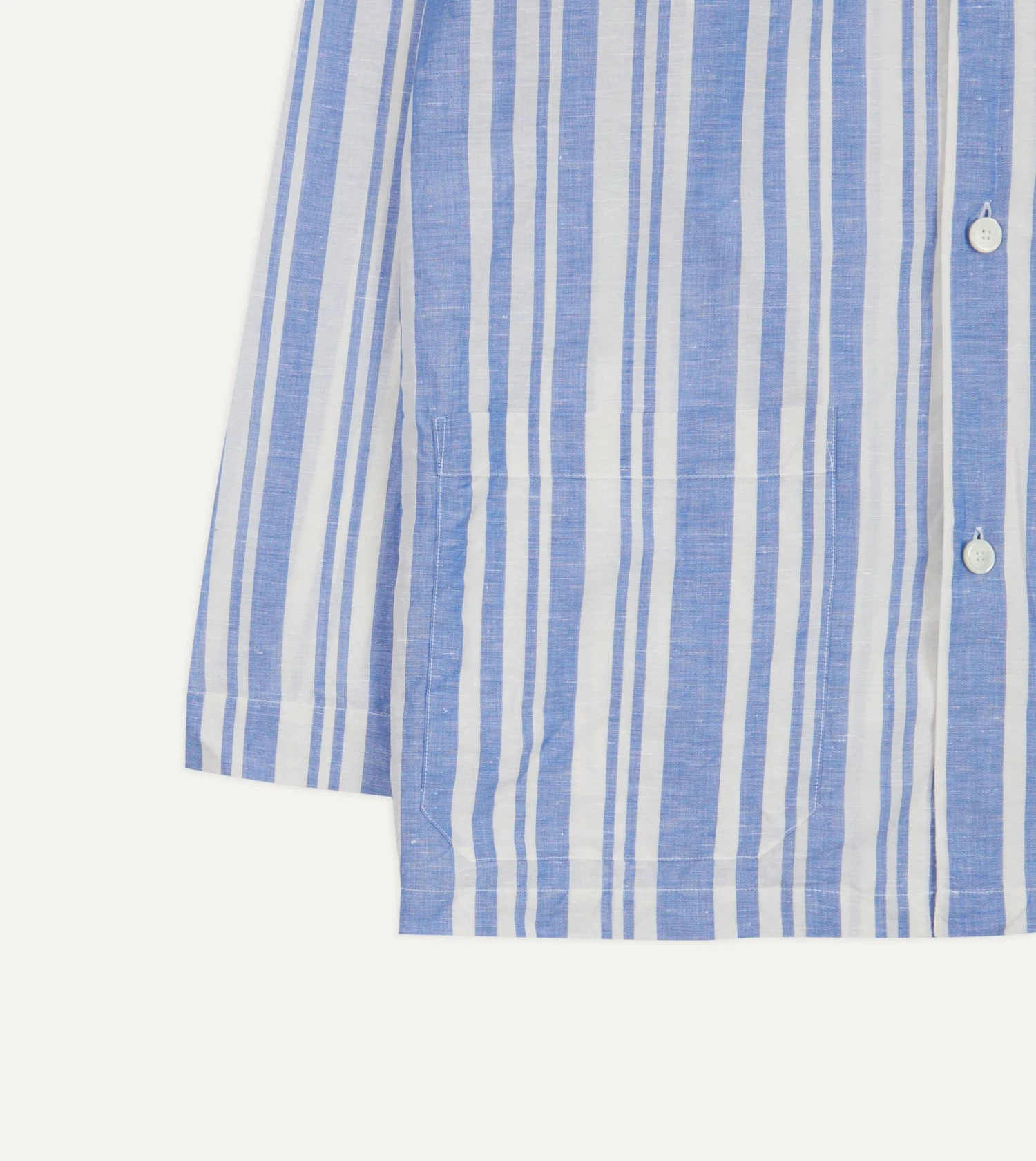 Constructed from a breathable and cosy Italian linen, this pyjama shirt features a value front, rounded collar, three patch pockets and square hem.