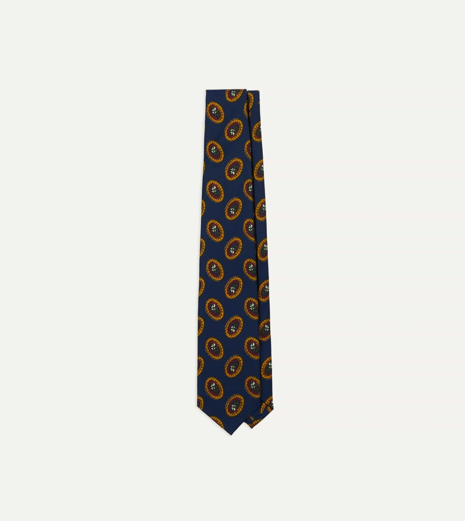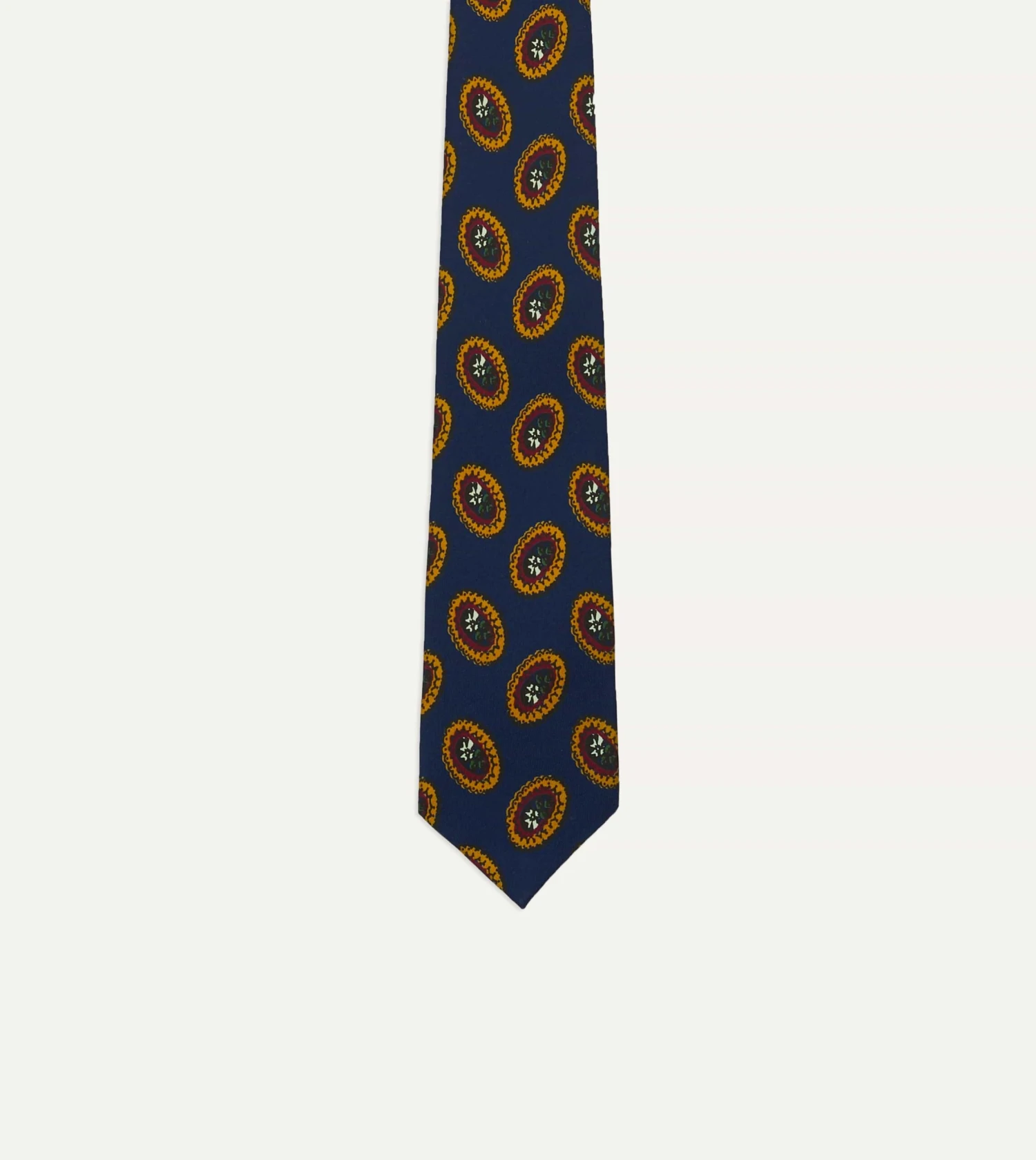 An ornate medallion design simply exudes elegance, particularly when printed on pure silk and hand rolled by our dedicated tiemakers in the heart of east London.