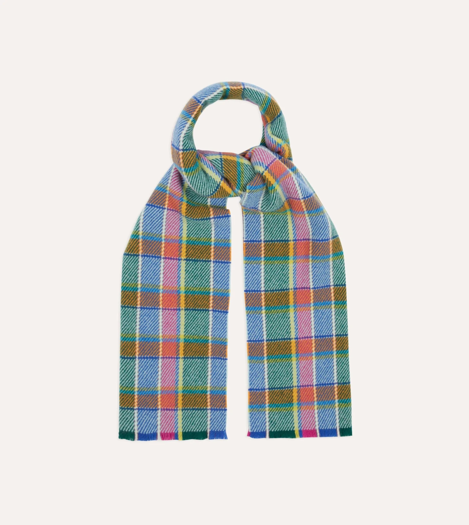 Woven in Tuscany, Italy, this scarf in an archival tartan check is a warming and lustrous addition to your cold weather wardrobe. The highest-quality virgin wool fibres with natural temperature regulating properties keep things cosy, while the eyelash fringe and tonal colouring can be applied to a wealth of looks, ideal for adding a subtle sense of Highlands charm to an ensemble.