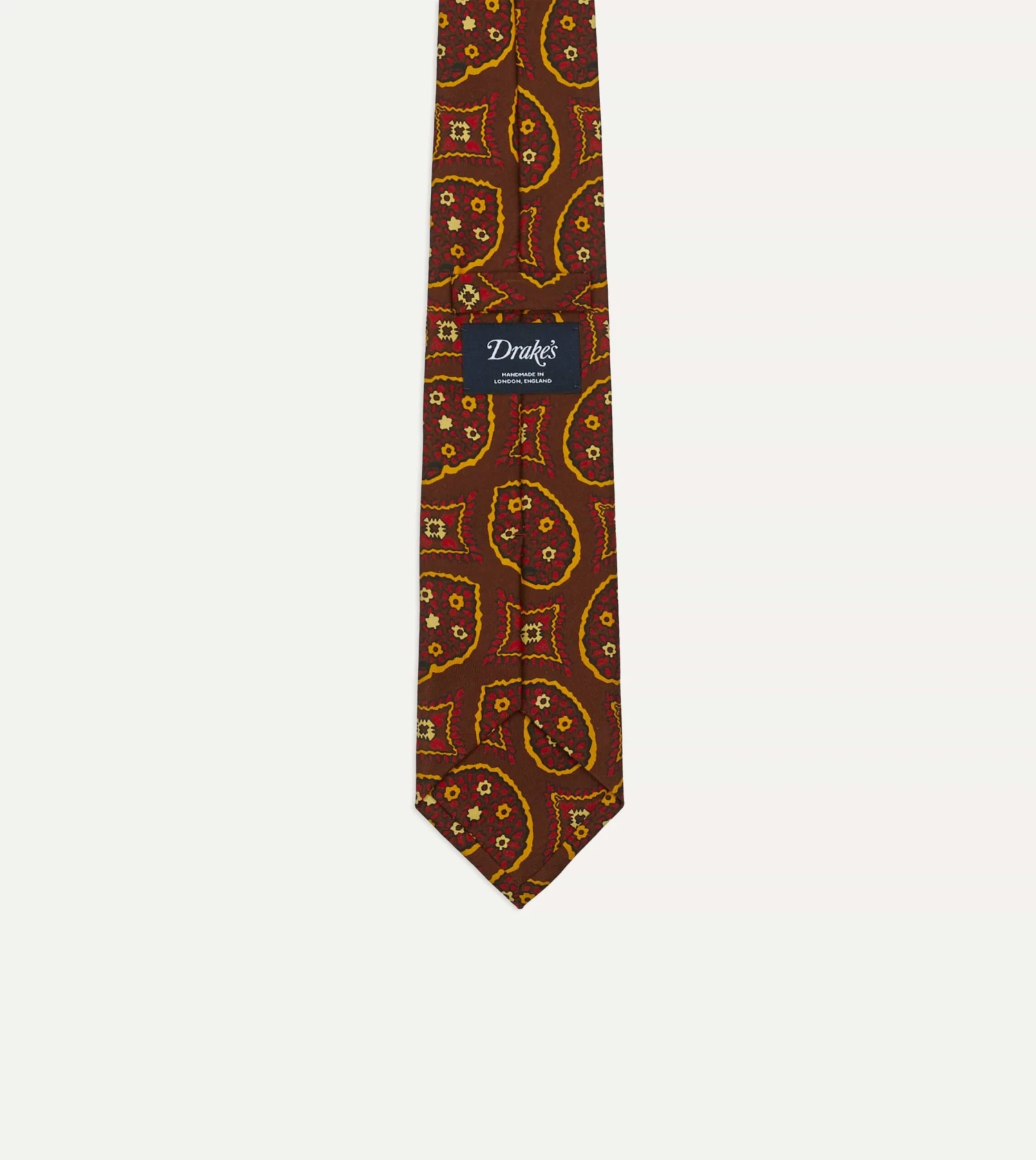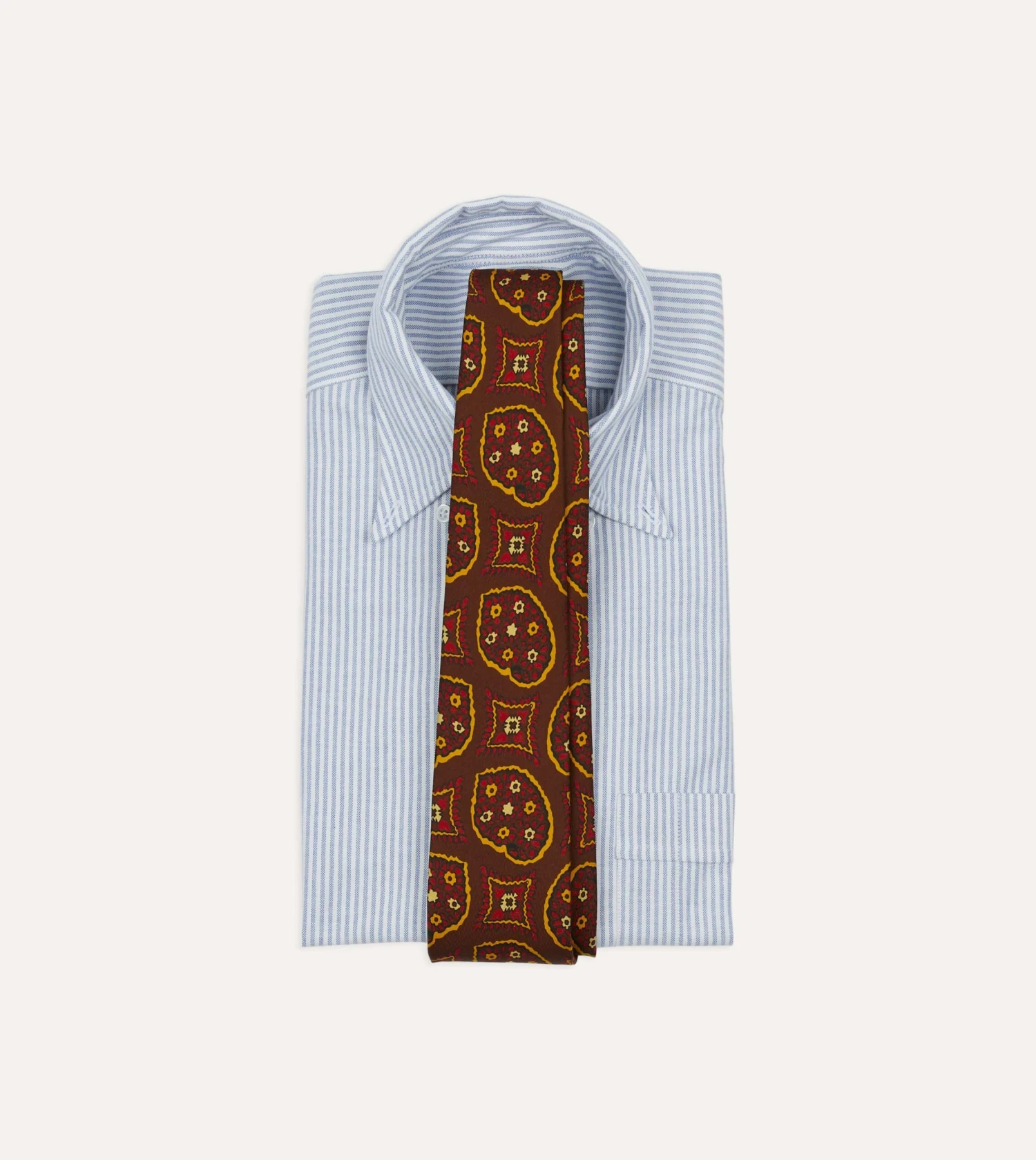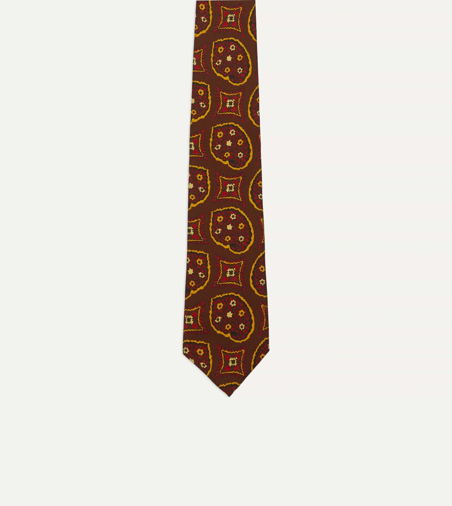 This design, direct from our extensive archive and printed on pure silk, features a classic paisley, and is reminiscent of the elegant late 1960s neckwear favoured by rockstars and royalty alike. The tie is pure silk with hand-rolled blades, made by hand in London.