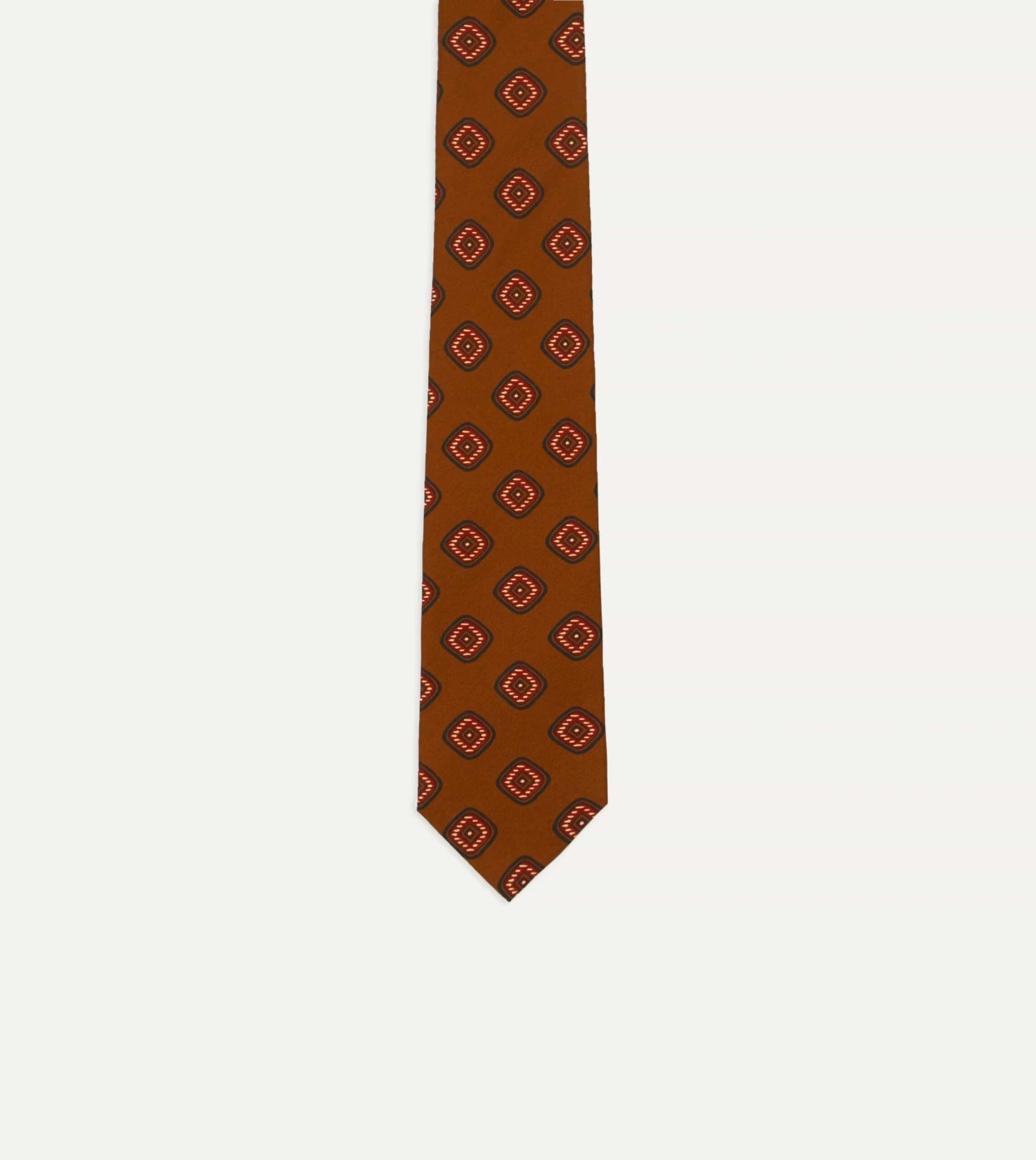 An elegant necktie, handmade in London and featuring an archival tile design, hand-printed in Macclesfield on 36oz Madder silk.