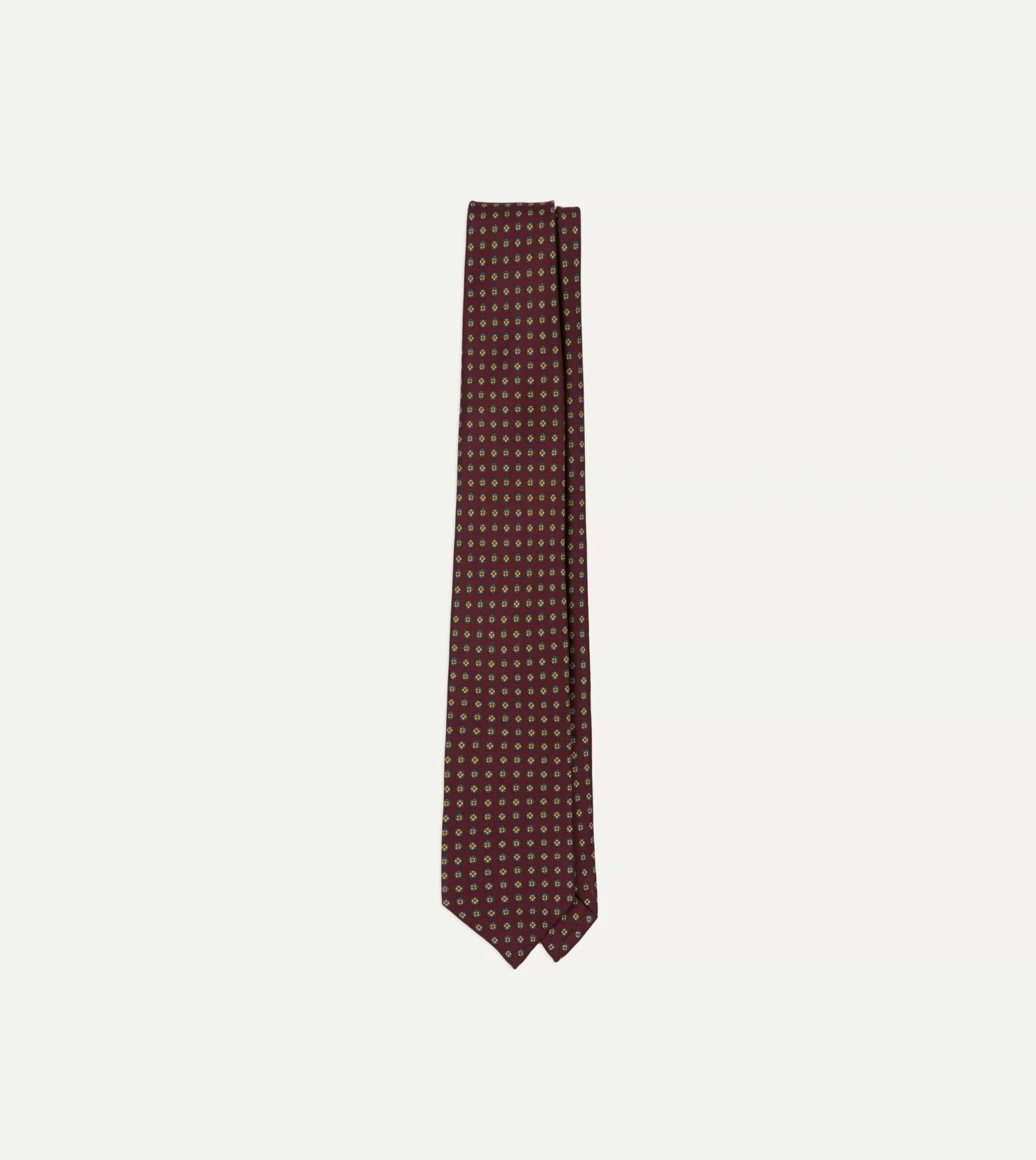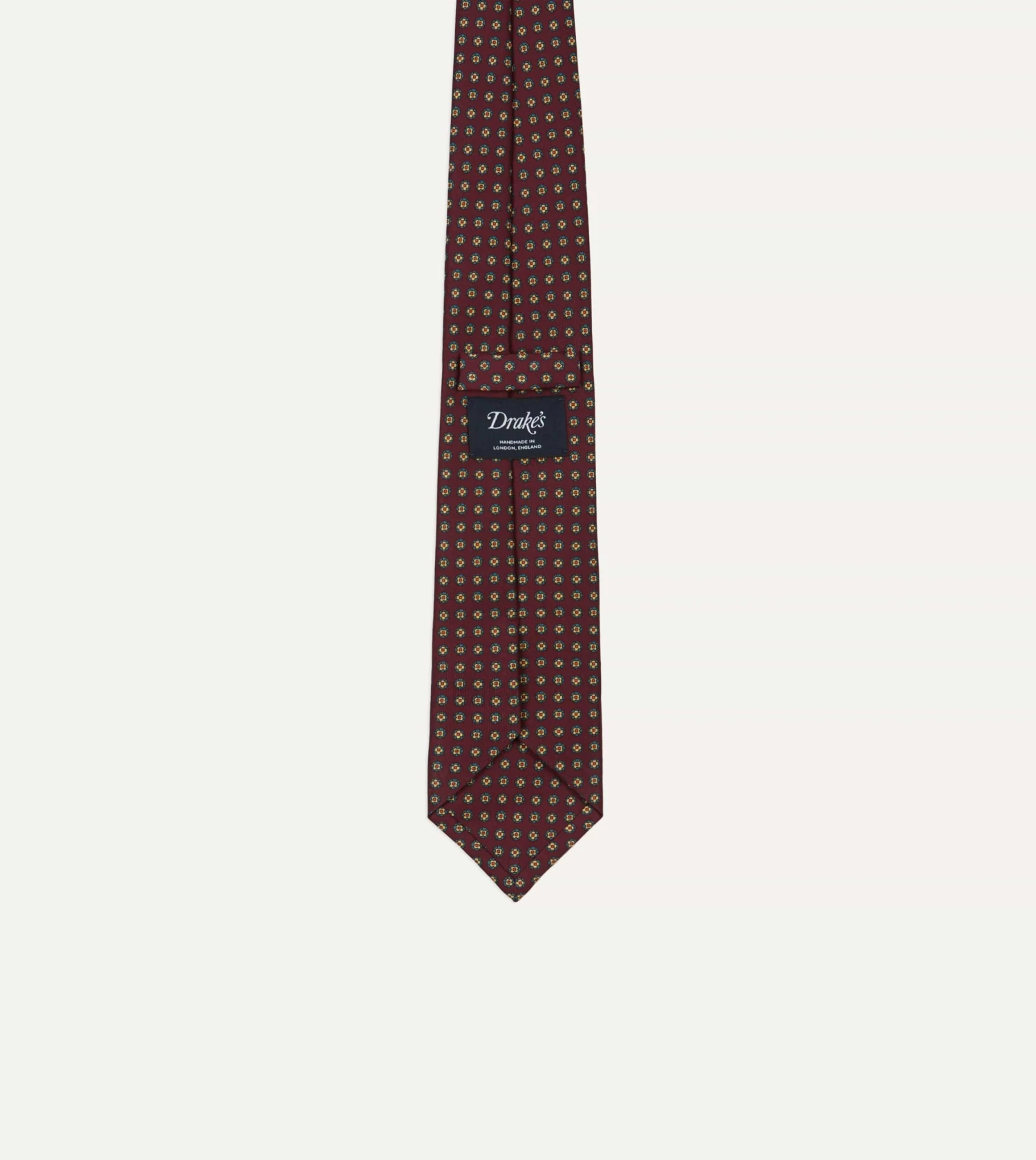 A jaunty geometric pattern creates a dynamic visual effect with this exquisite silk tie, handmade in our East London factory.