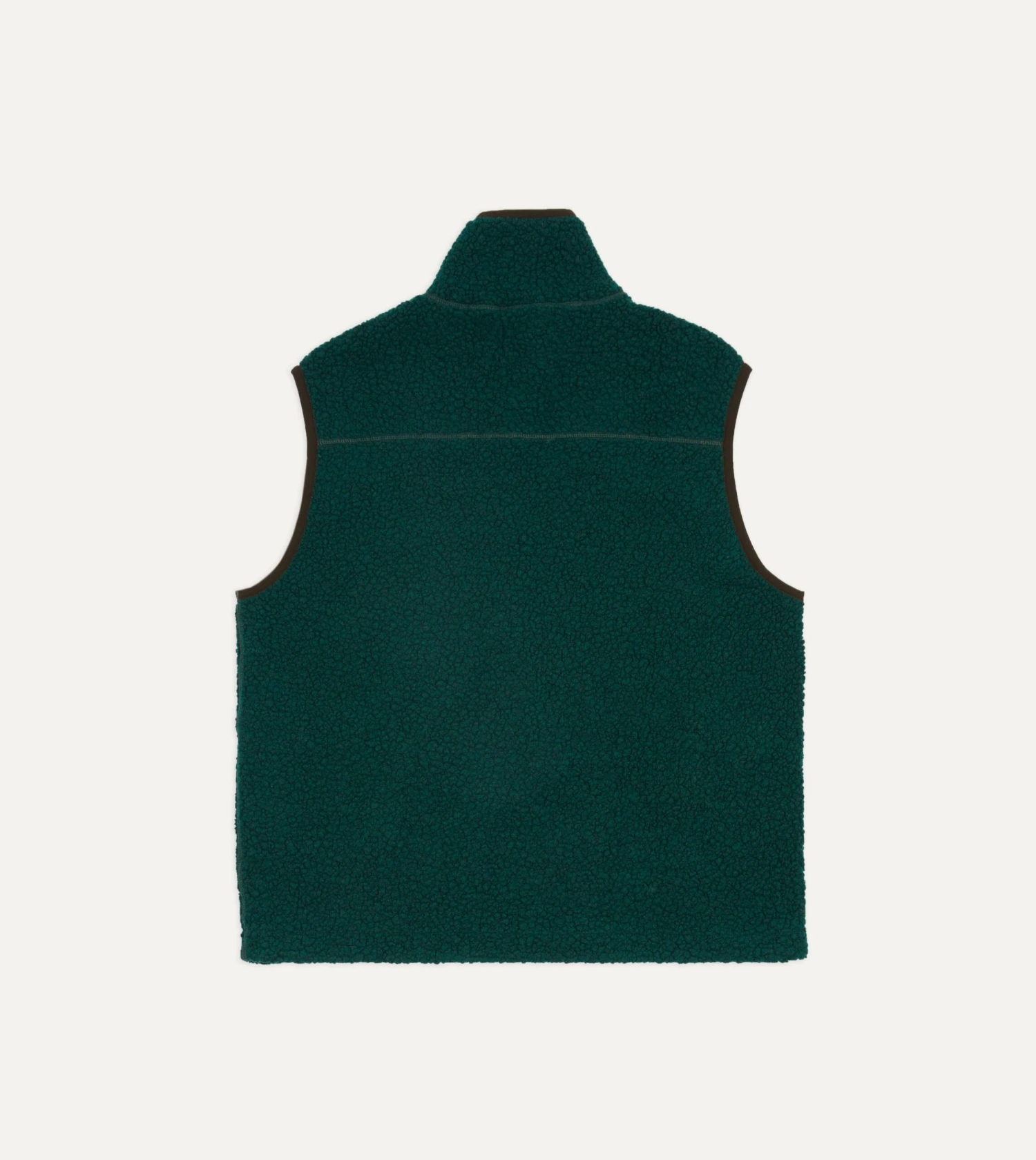 With a nod to everything from outdoorsy Americana and Ivy League prep to classic British countryside attire, this zip-front vest is constructed from a densely knitted boucle jersey fleece fabric with a pronounced texture. Finished with a single white zip, and our embroidered ‘D’ flag on the chest, it is a sporty number perfect for the changing seasons.