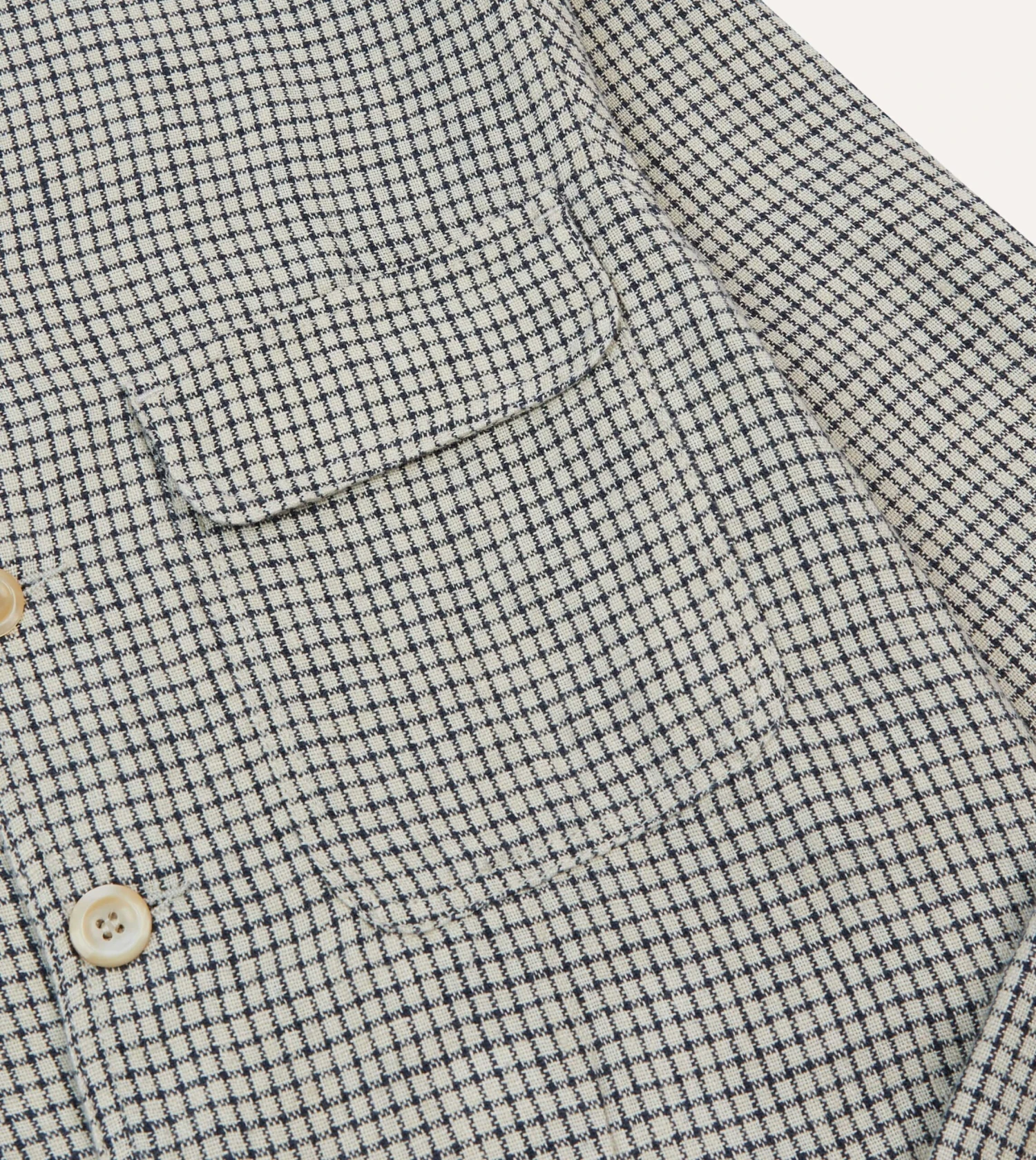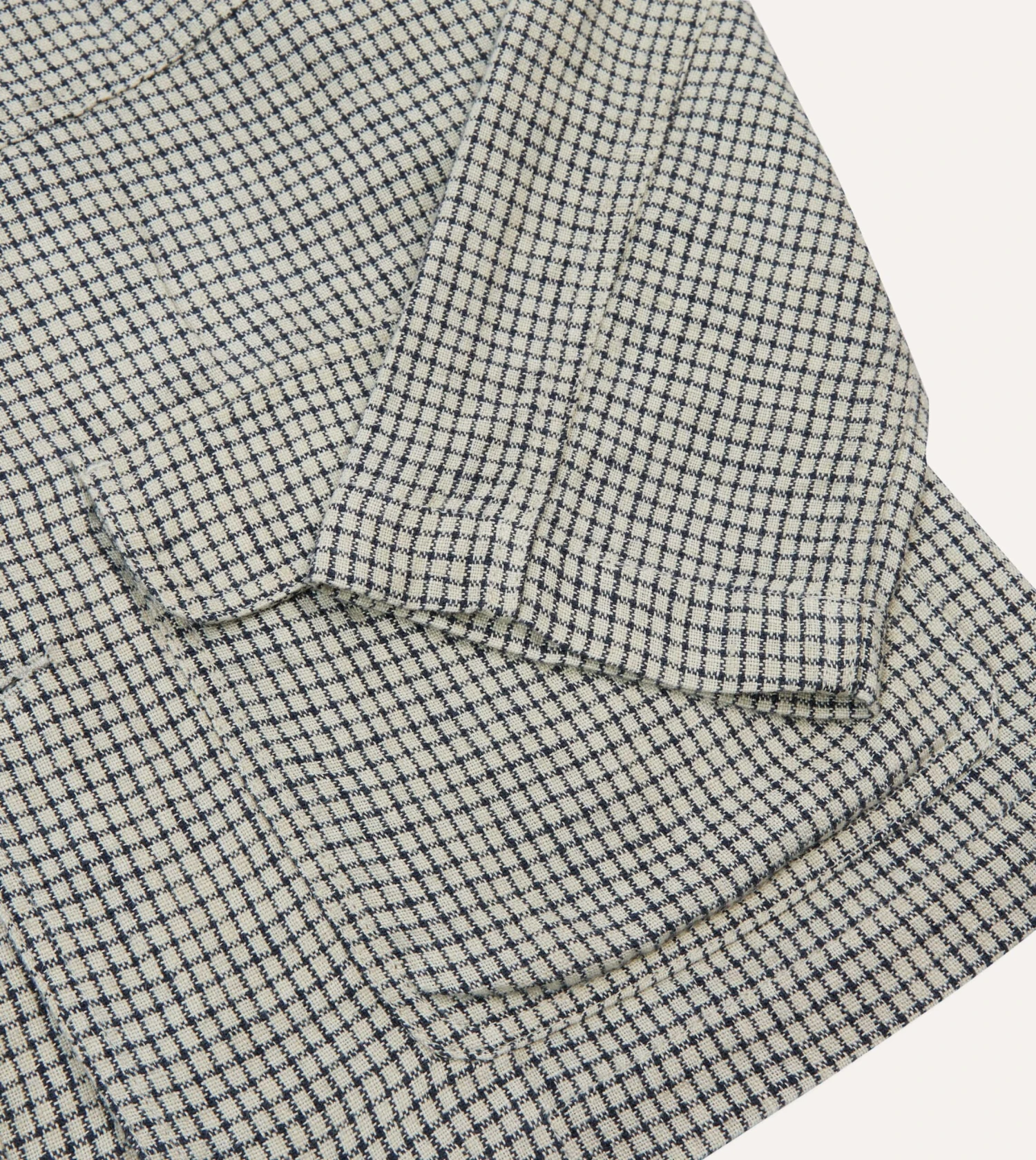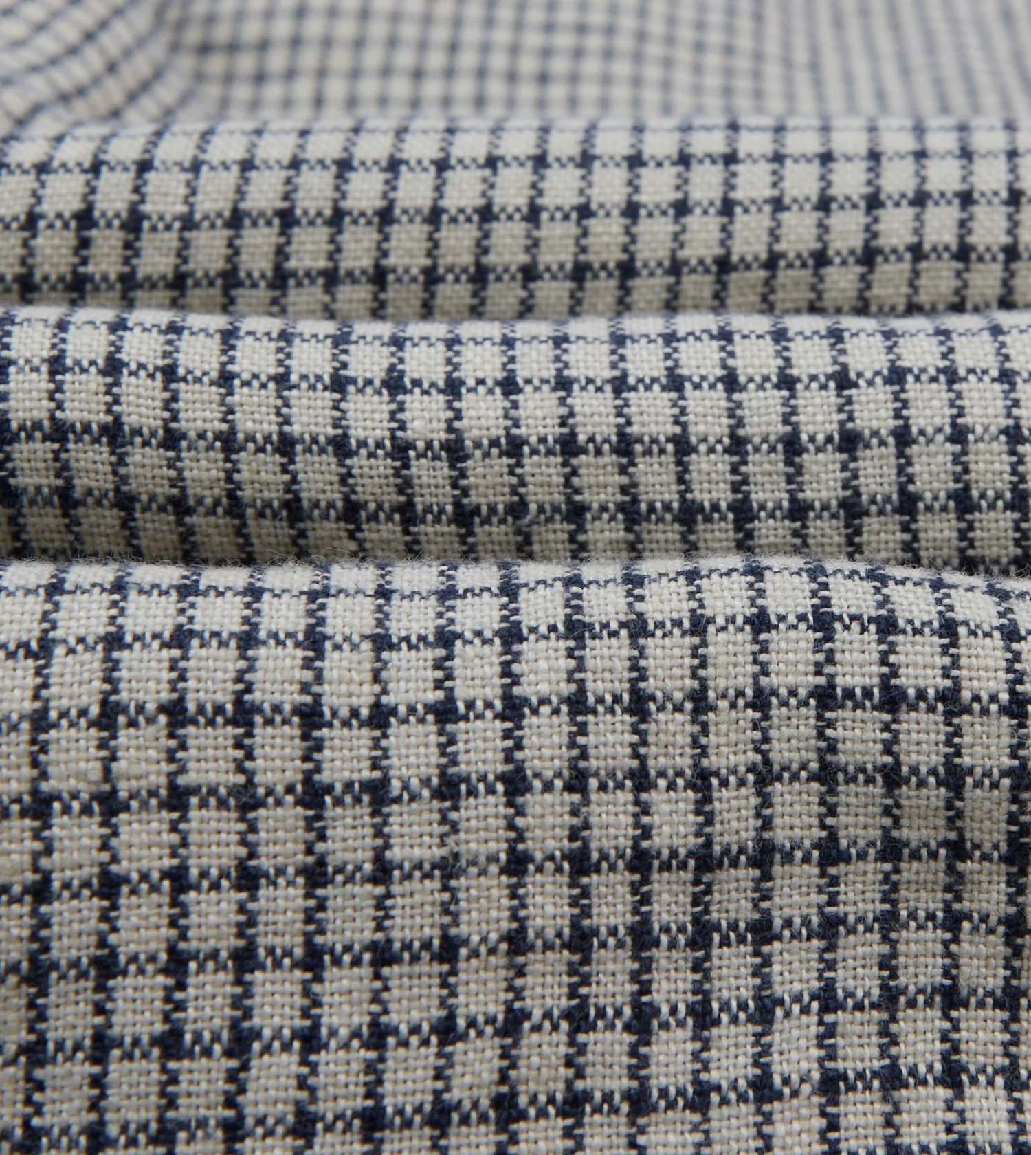 Where previous iterations could be found in corduroy or moleskin, we’ve instead opted for a lightweight Italian linen in a fitting graph check. Retaining the iconic mandarin collar, we’ve brought the jacket up to date with a slightly slimmer silhouette and three generous patch and flap pockets, plus two internal pockets, to stash your compasses, set squares, or anything else an architect on-the-go may require.
