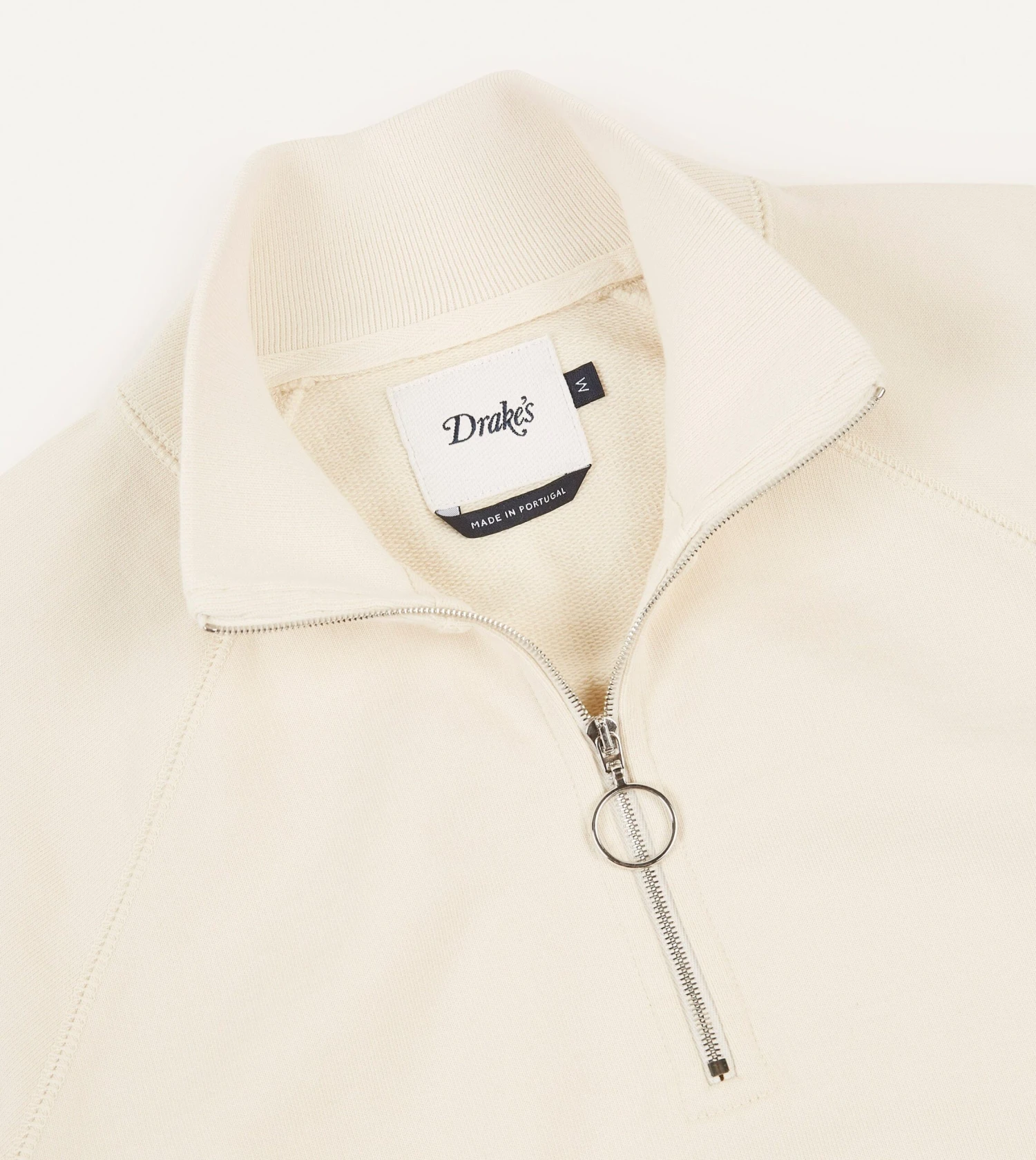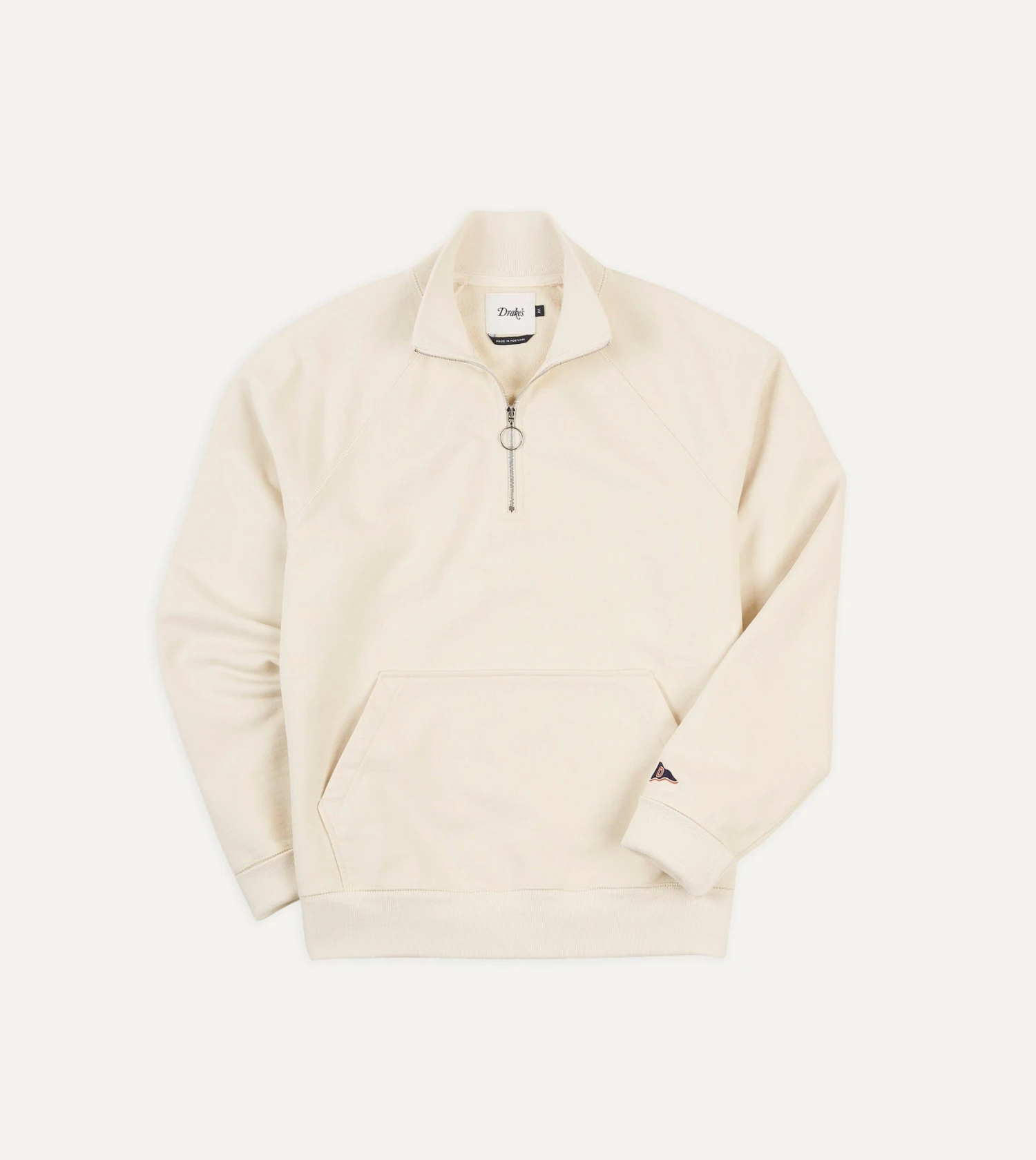 Styled after tops worn by runners in days of yore, this quarter zip sweatshirt is made from a densely woven cotton jersey and features ribbed cuffs, a kangaroo pocket, raglan sleeves, and our Ivy-inspired pennant motif.