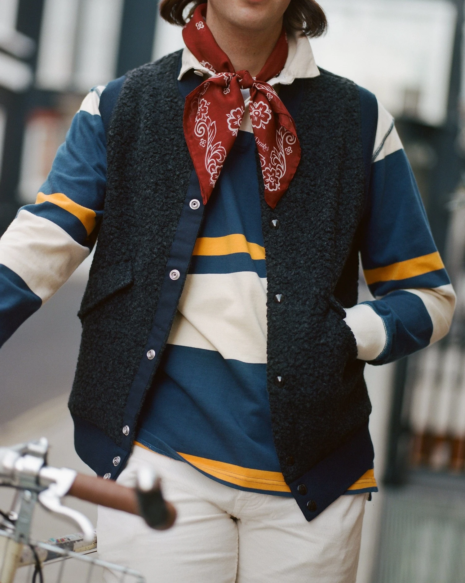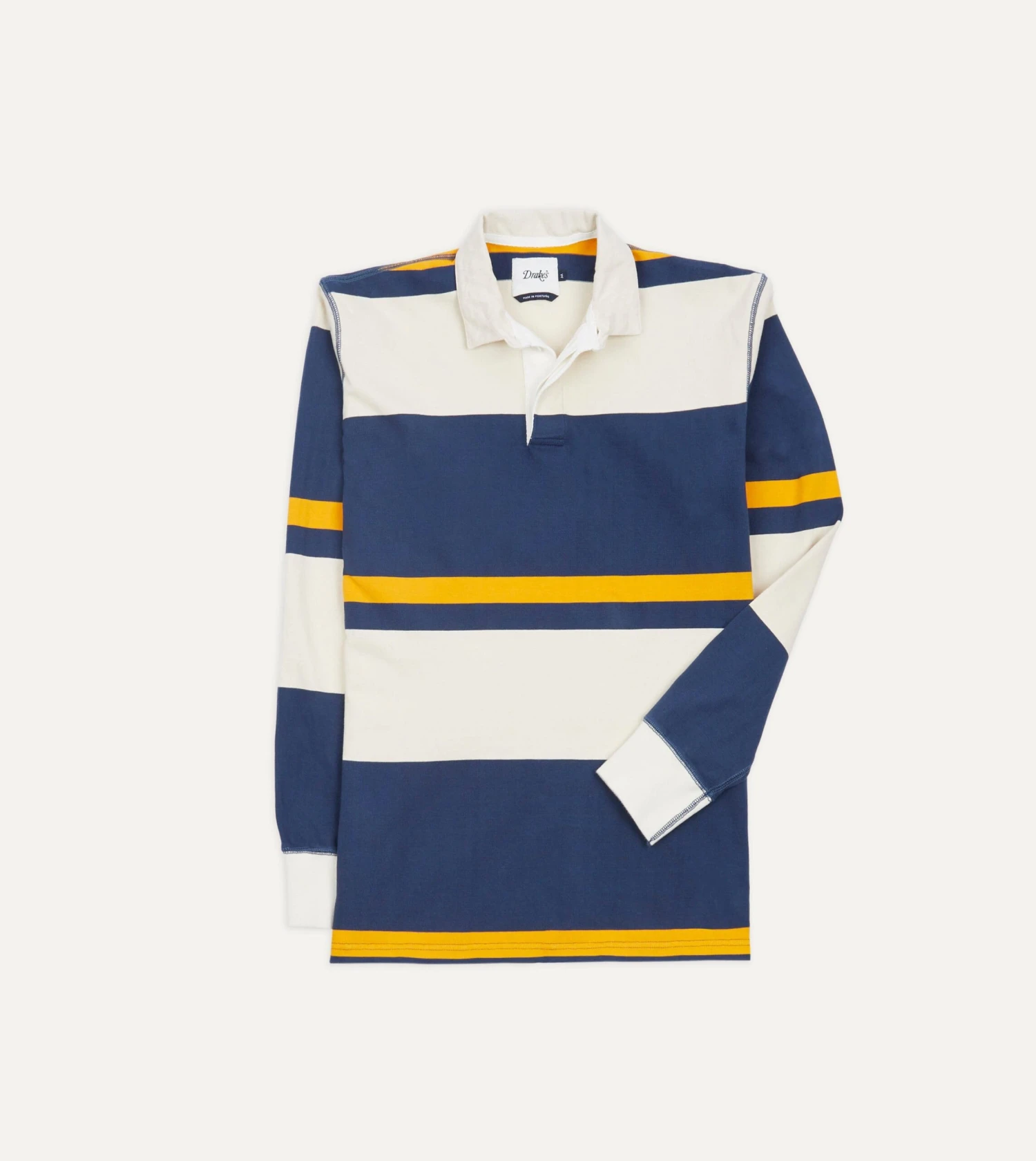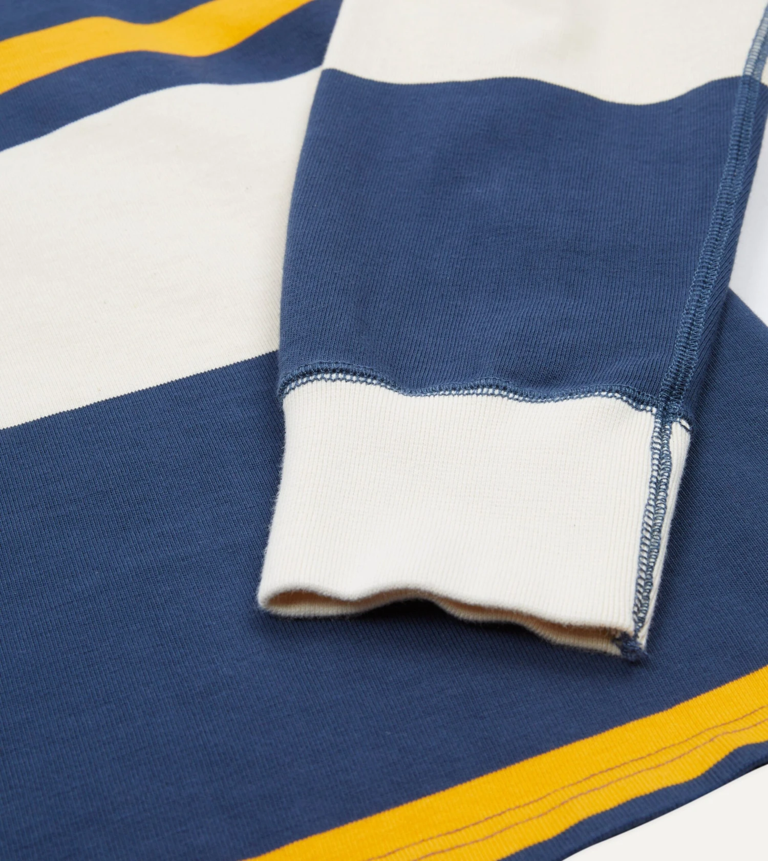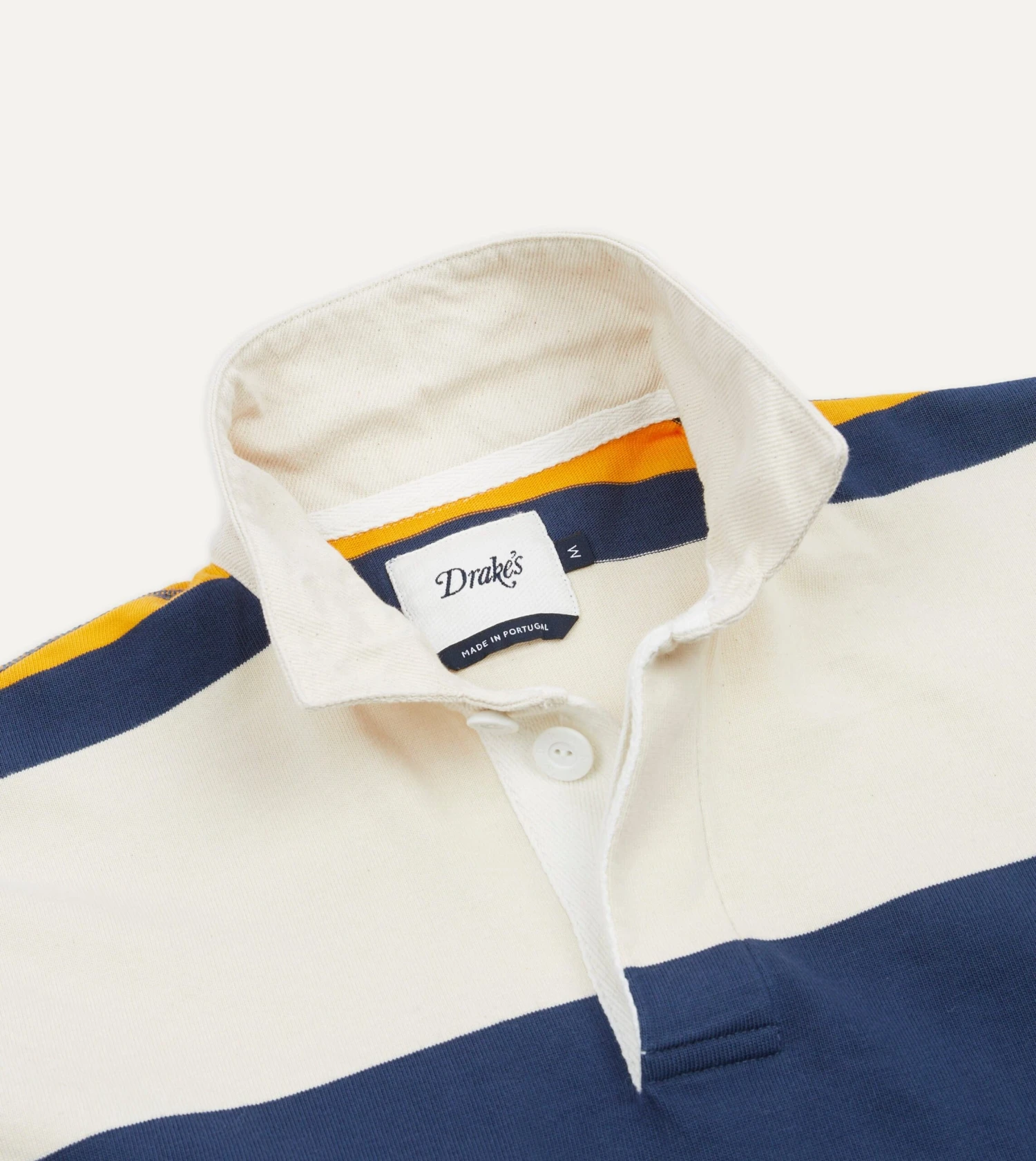 Ecru, Navy And Yellow Stripe Cotton Rugby Shirt