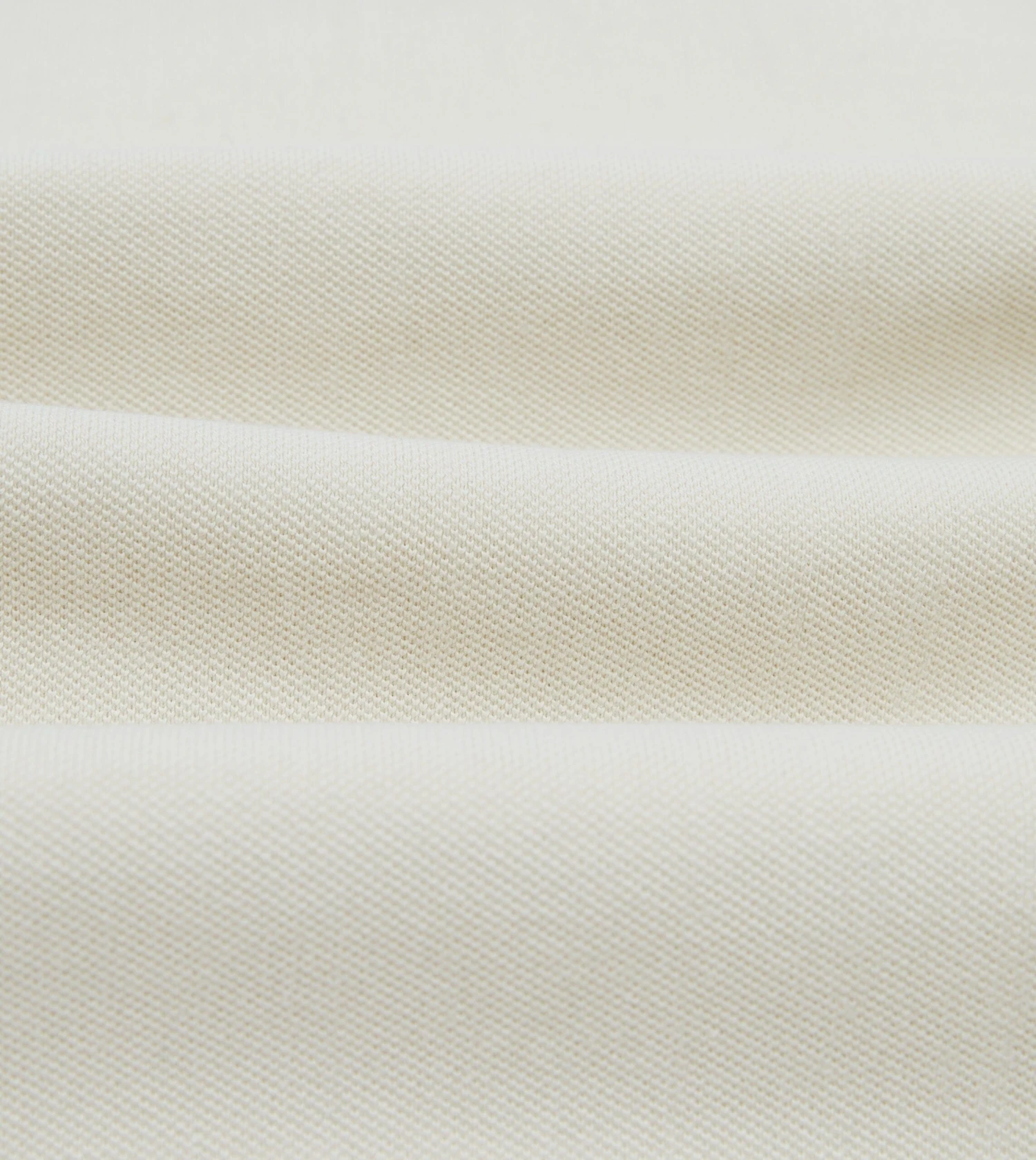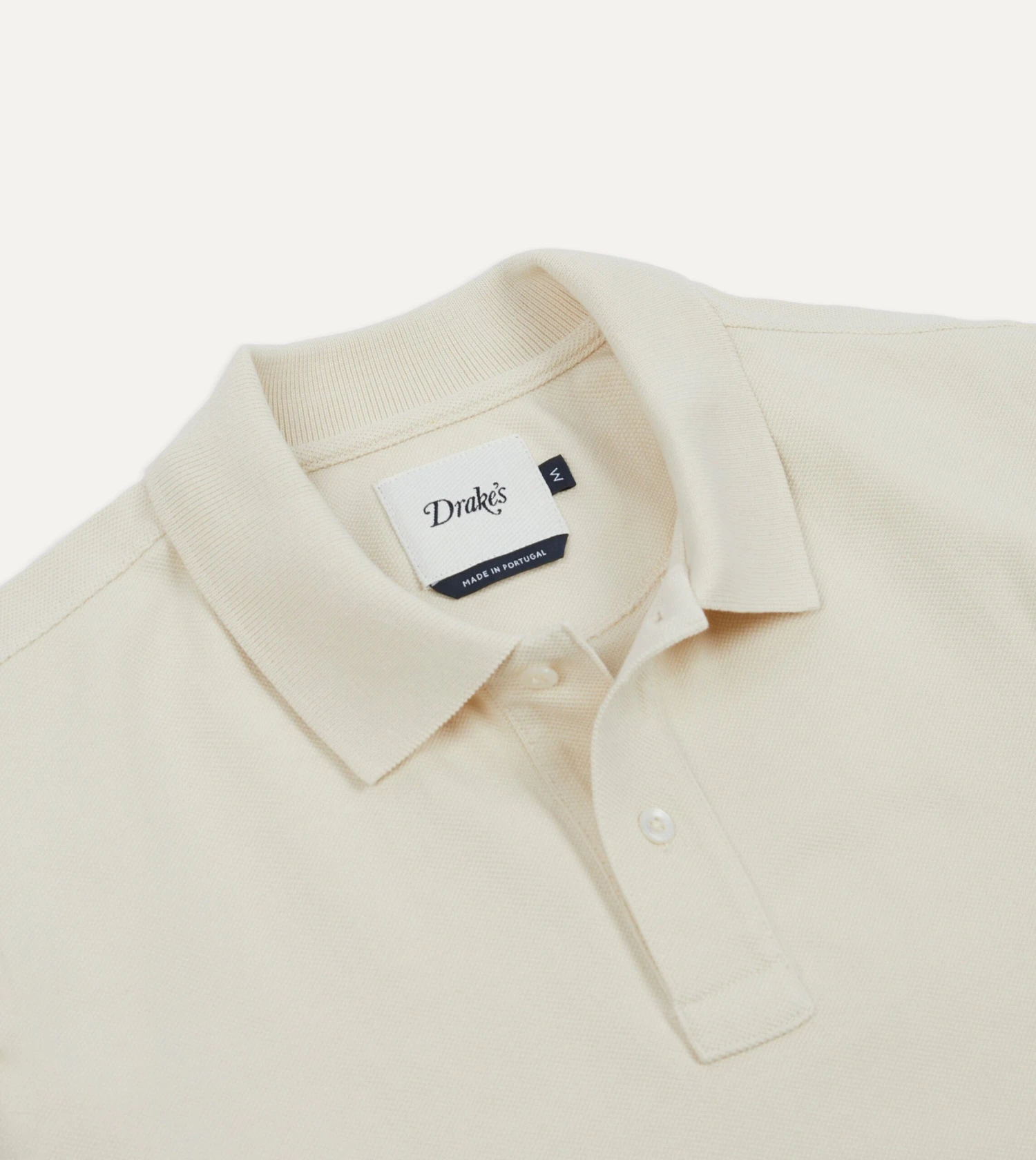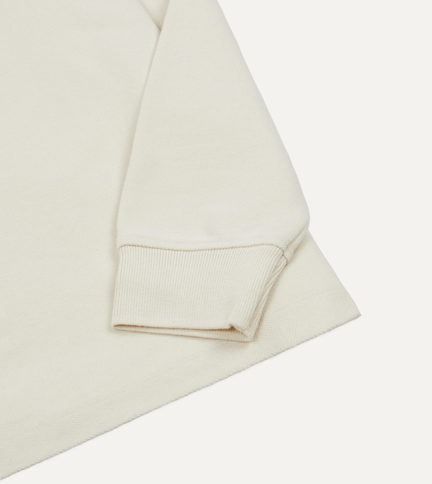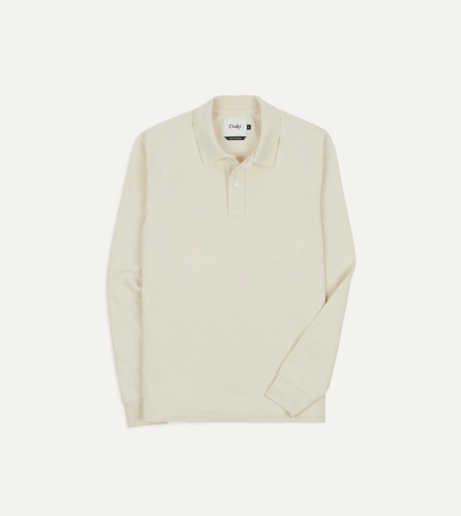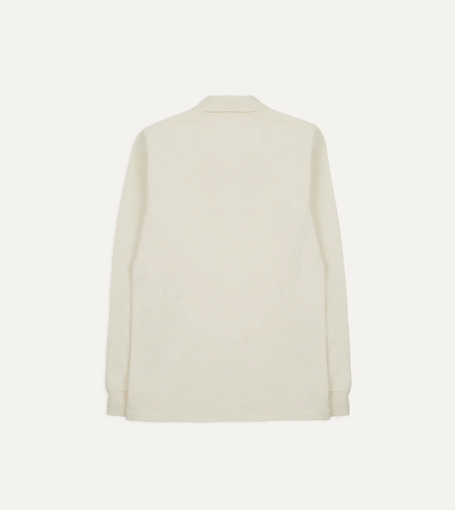 Ecru Pique Cotton Long-Sleeve Polo Shirt