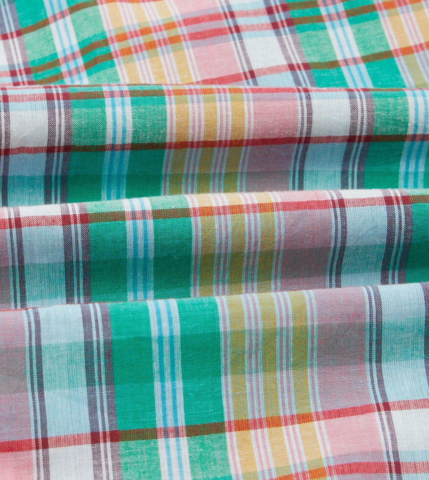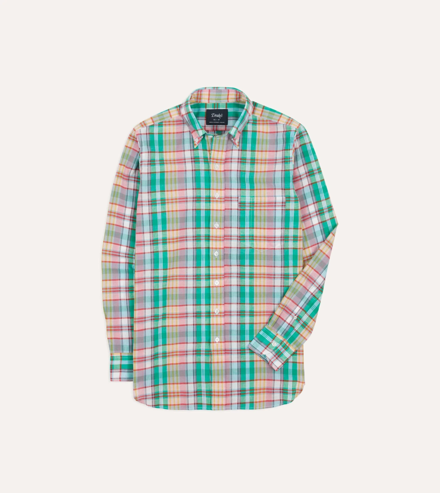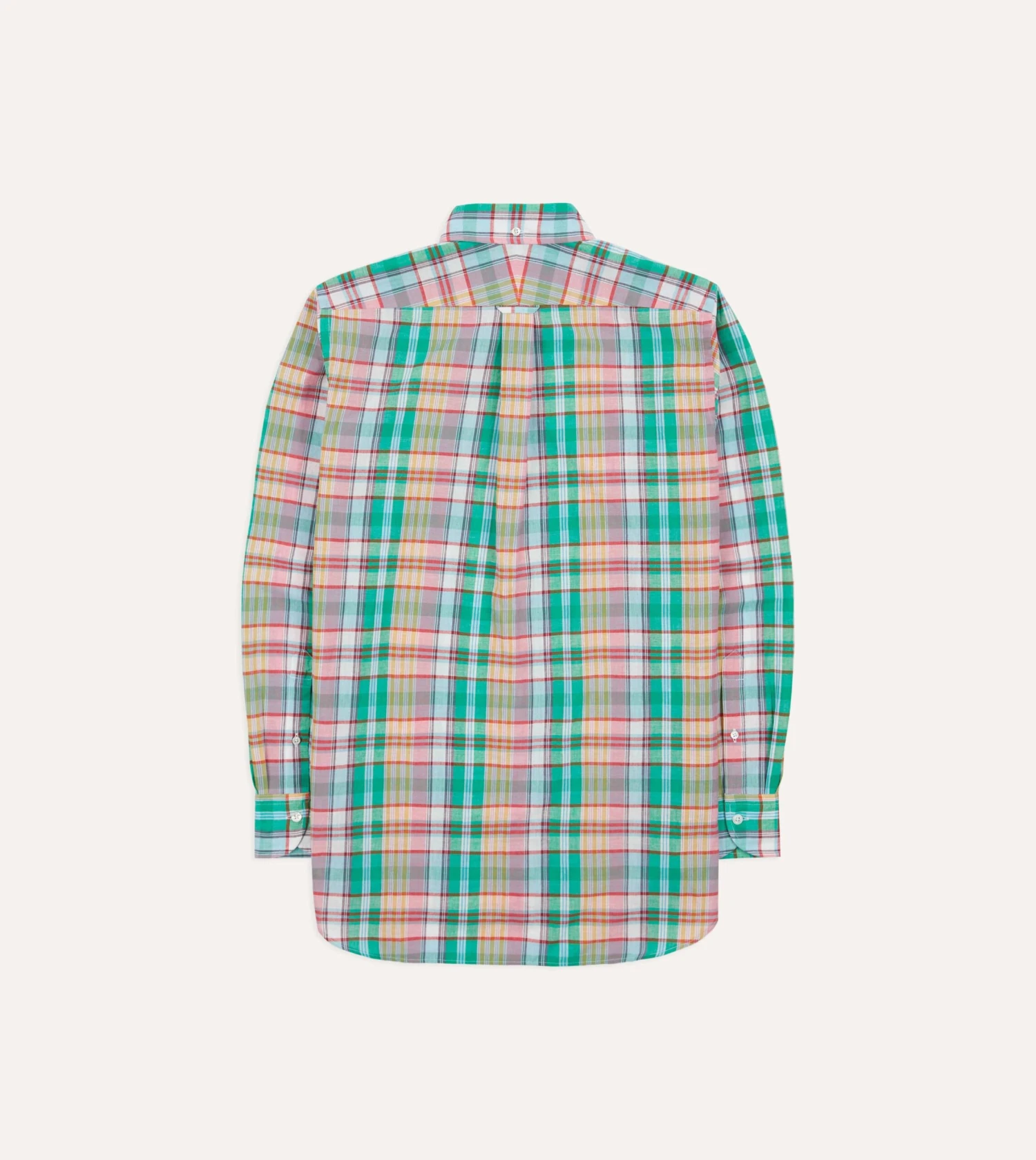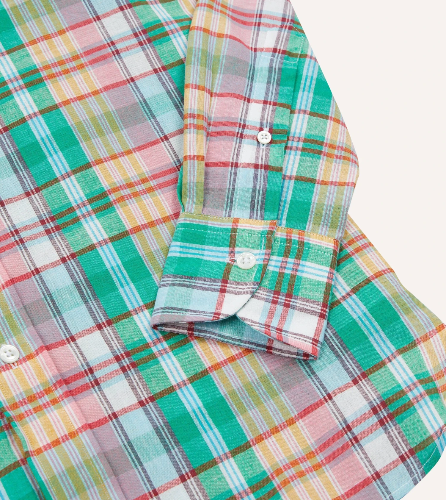 Green And Blue Madras Check Cotton Button-Down Shirt
