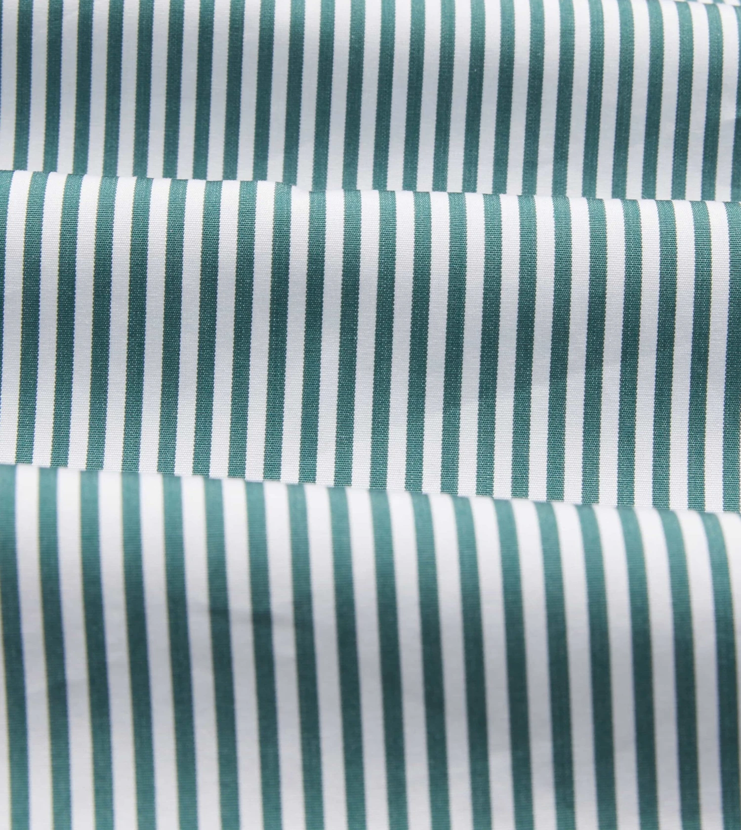 Green And White Bengal Stripe Spread Collar Cotton Poplin Shirt