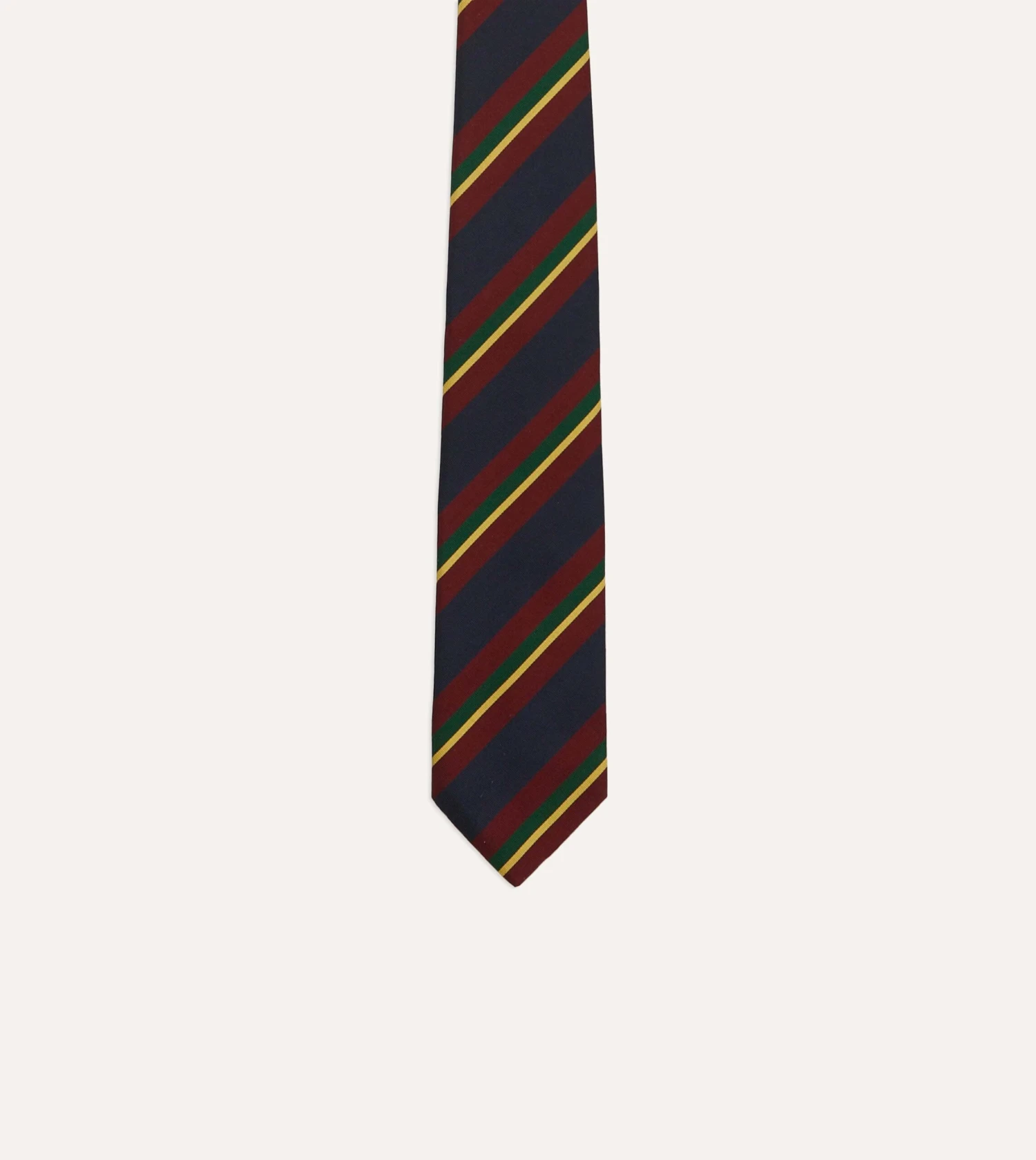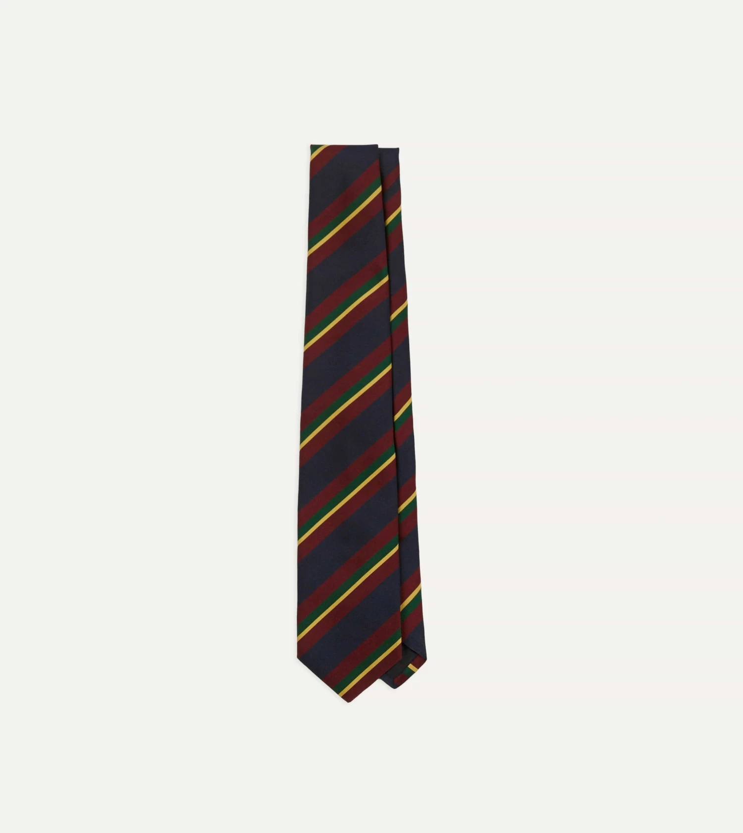 A striped pure silk tie is one of the most enduring pieces of neckwear available, redolent of earlier periods of style, while retaining a distinctly modern feel.
