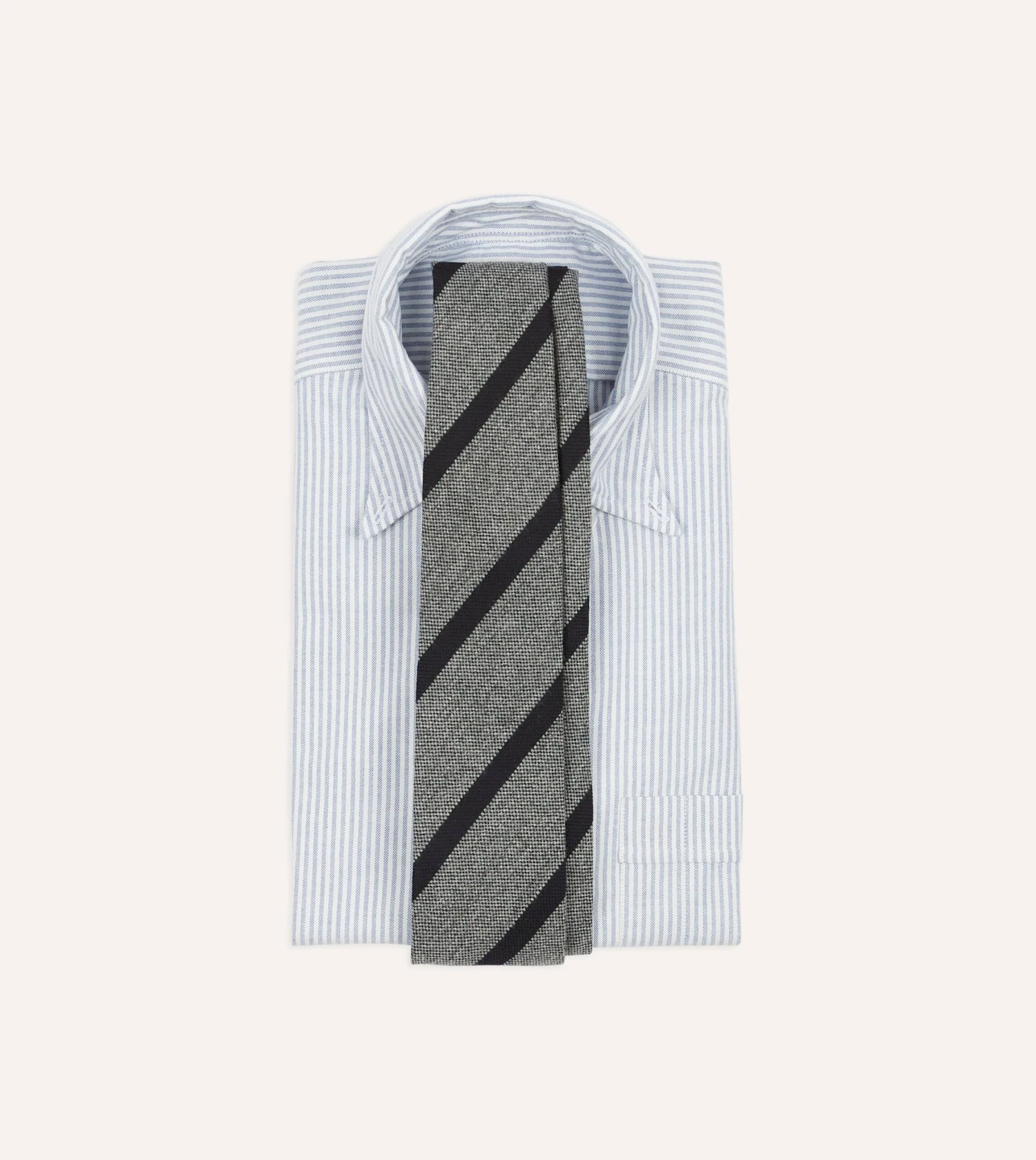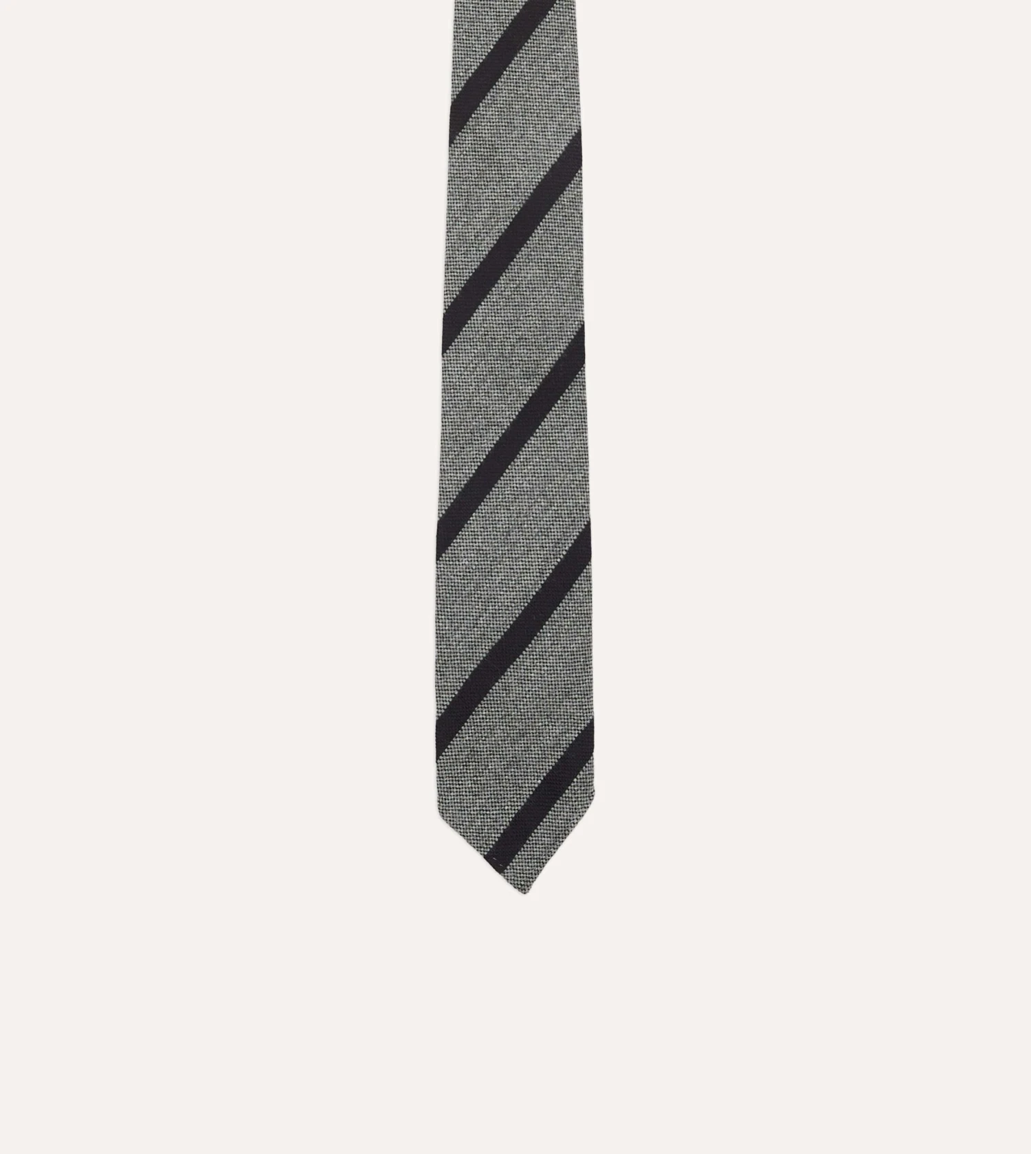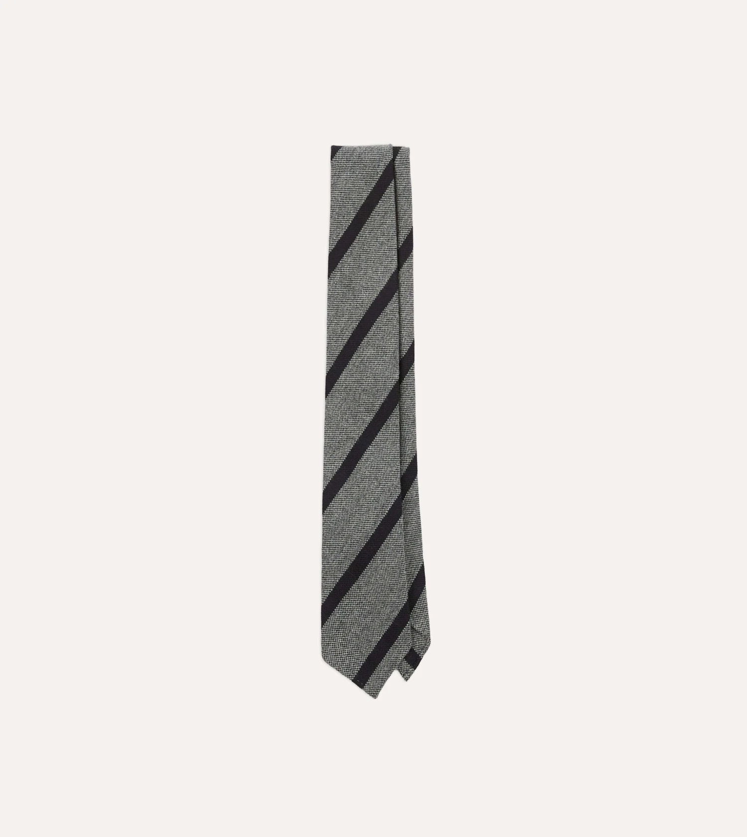 Grey And Black Double Stripe Hand Rolled Wool Tie