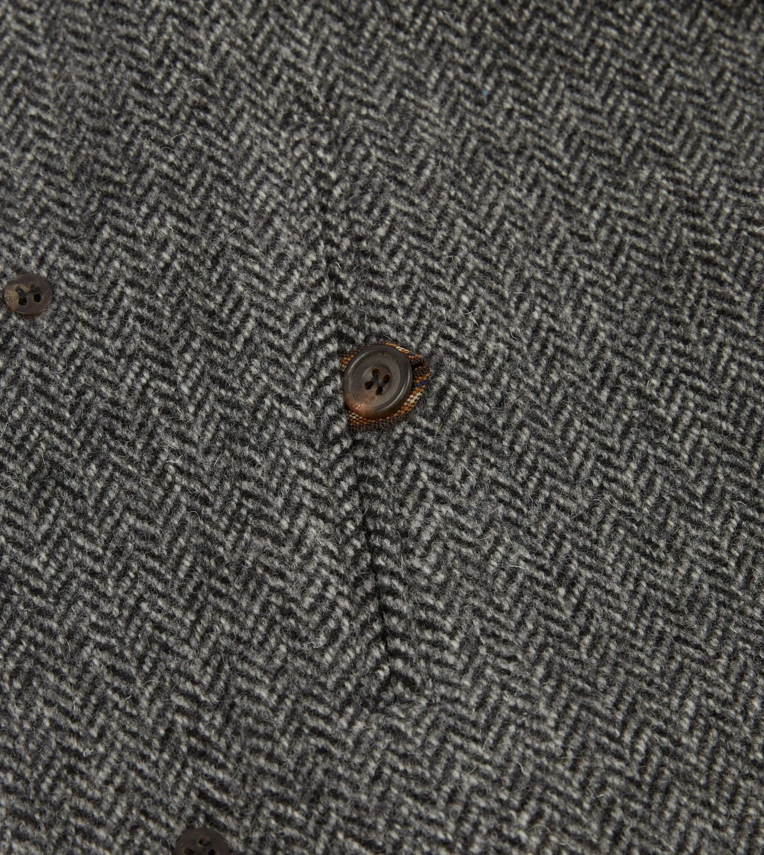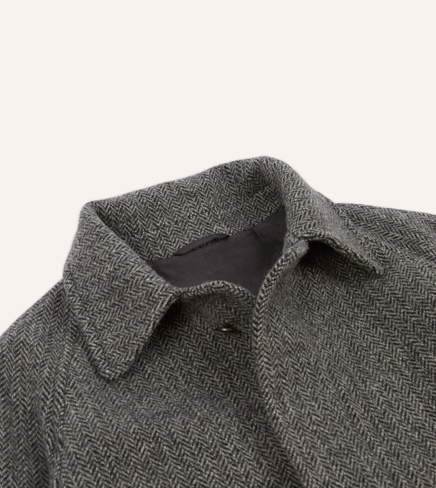 Unstructured and practical in design, the coat features a sturdy, serviceable collar and valueed sleeve straps to defend against the elements, while split raglan shoulders, a fly front and considerable rear vent offer uninhibited manoeuvrability.