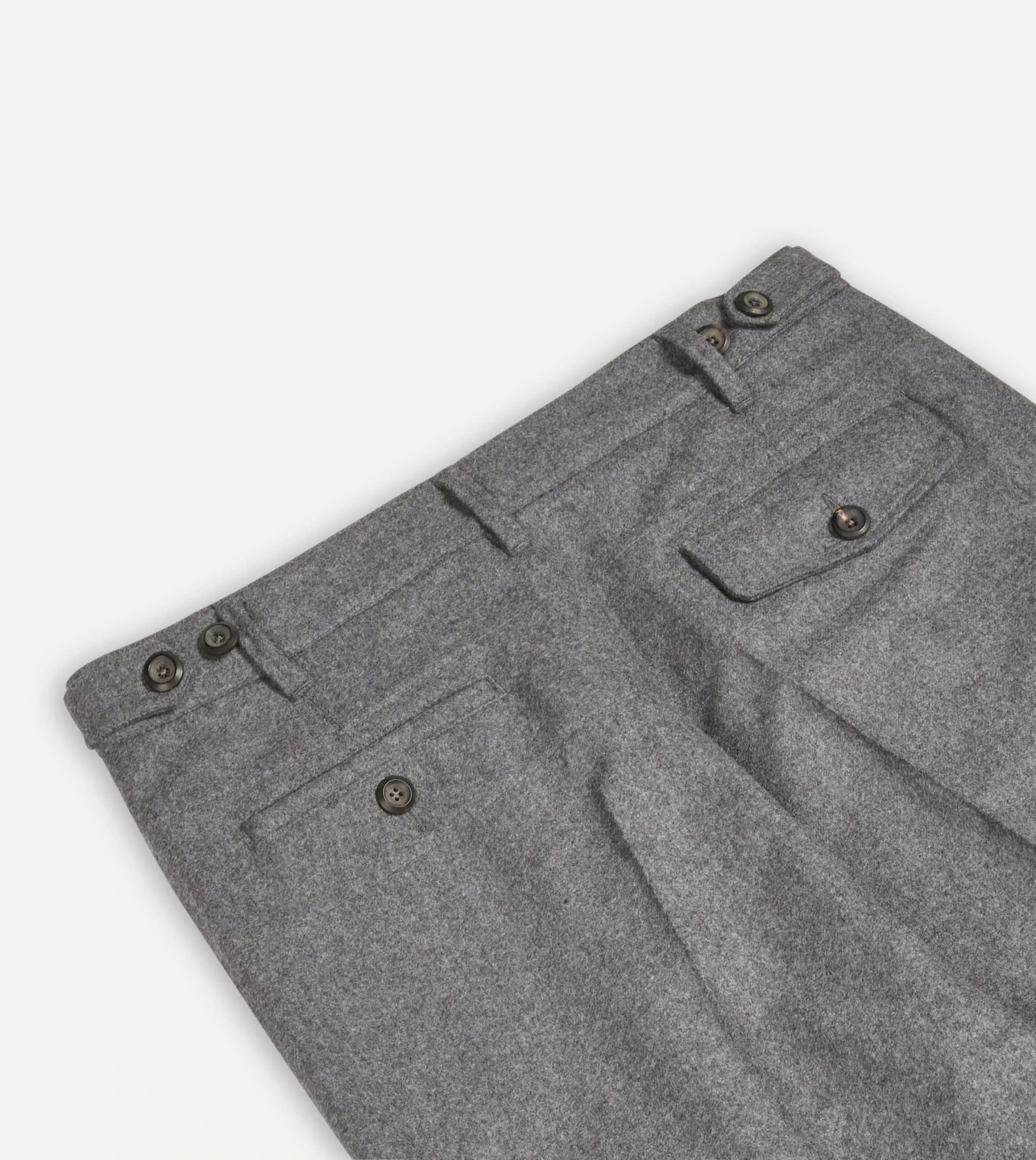 Side adjusters alongside belt loops and a concealed fob pocket keep up the utilitarian nature of these trousers, while a full leg and high rise that sits just above the hip creates a classic, mid-century shape.