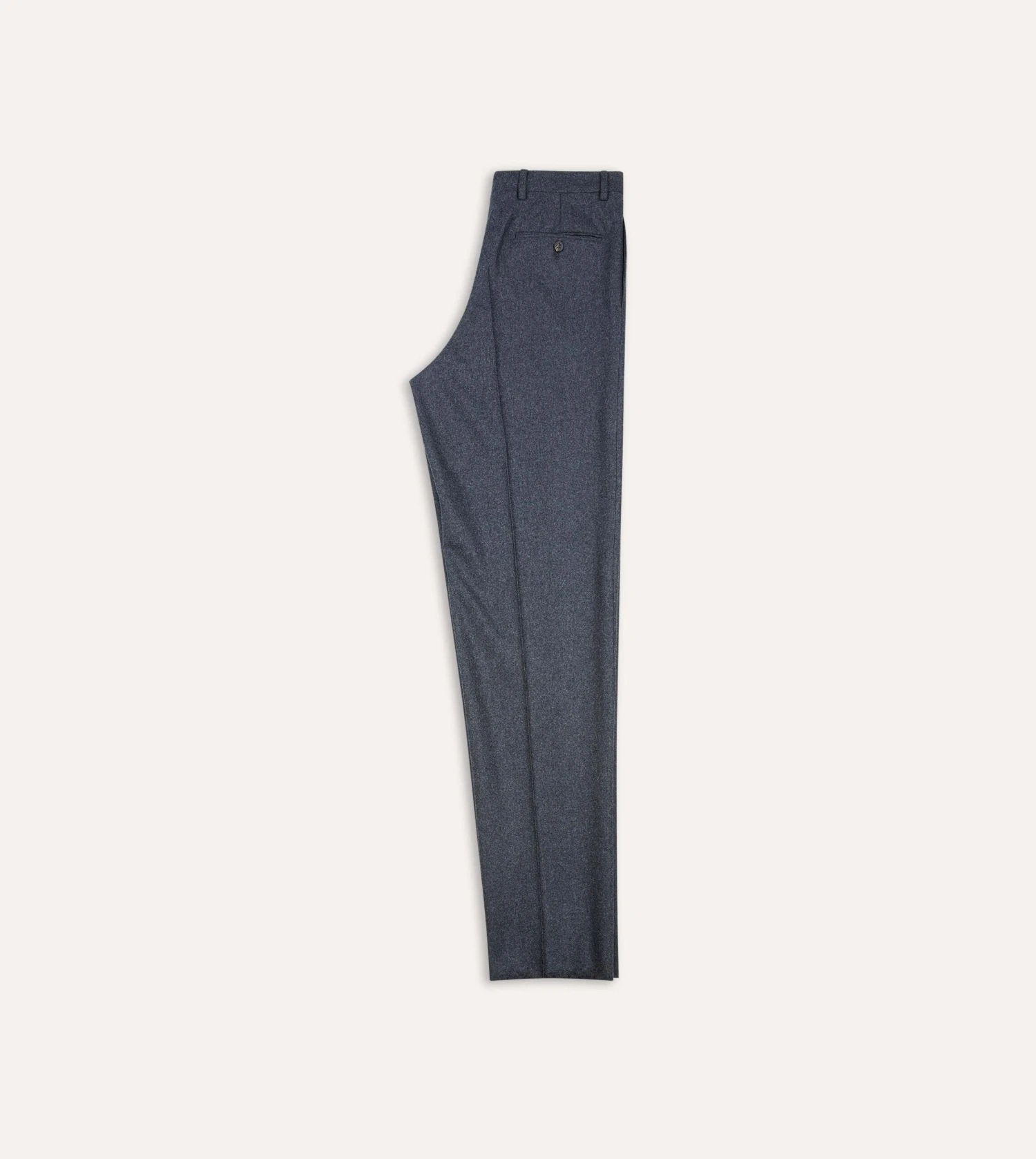 Crafted from a mid-weight wool flannel, the half-lined trousers feature understated details such as an extended tab front, French bearer valueing with interior waistband curtaining, an after-dinner split to the rear, and a prong keeper for securing a belt buckle.