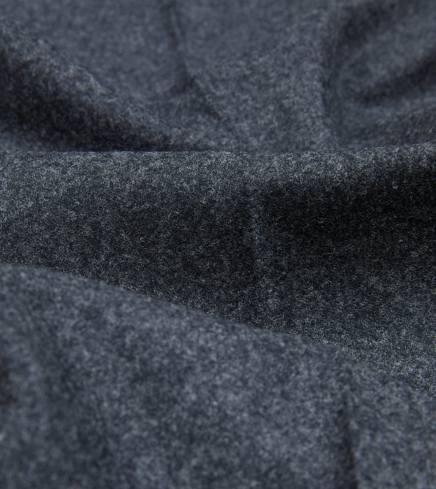 Crafted from a mid-weight wool flannel, the half-lined trousers feature understated details such as an extended tab front, French bearer valueing with interior waistband curtaining, an after-dinner split to the rear, and side adjusters in lieu of belt loops.
