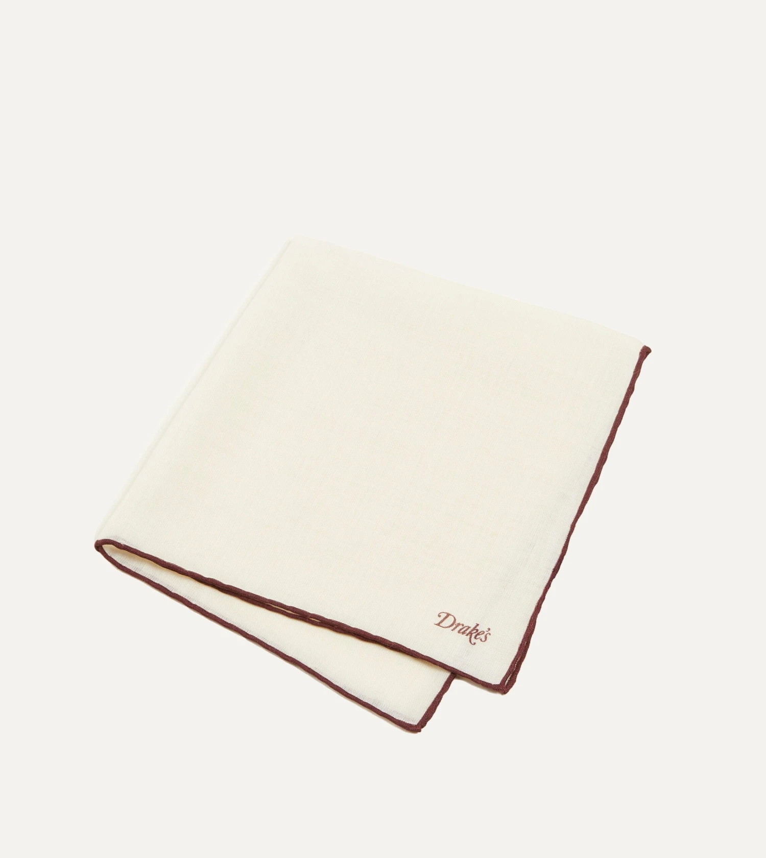 One of our most classic pocket square designs, the handrolled shoestring border creates a dynamic visual contrast however it is folded (or stuffed) in one’s pocket.