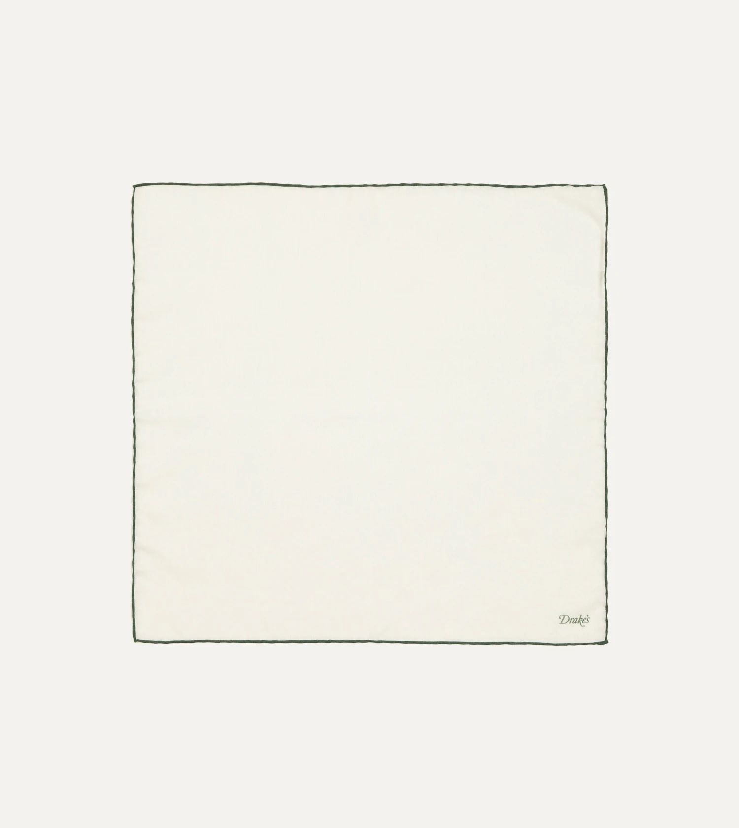 One of our most classic pocket square designs, the handrolled shoestring border creates a dynamic visual contrast however it is folded (or stuffed) in one’s pocket.