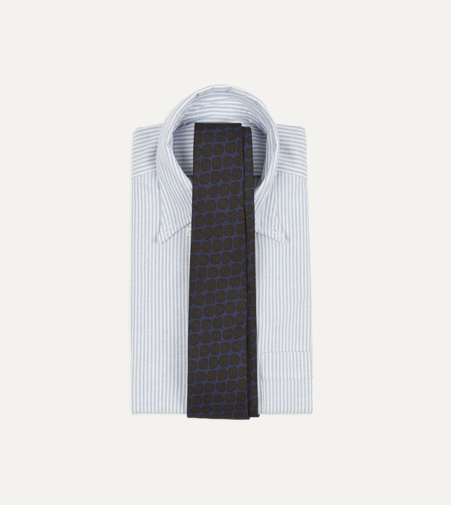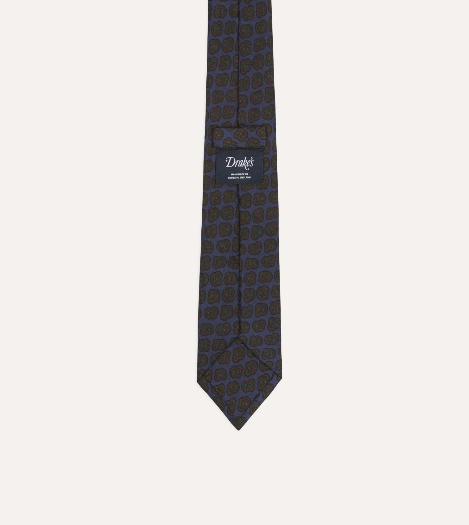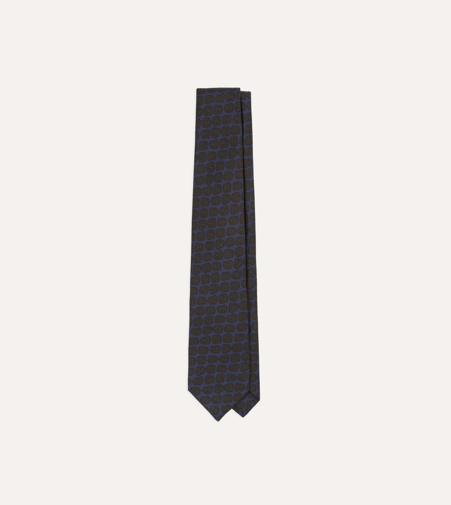 Navy And Brown Paisley Double Leaf Print Silk Tipped Tie