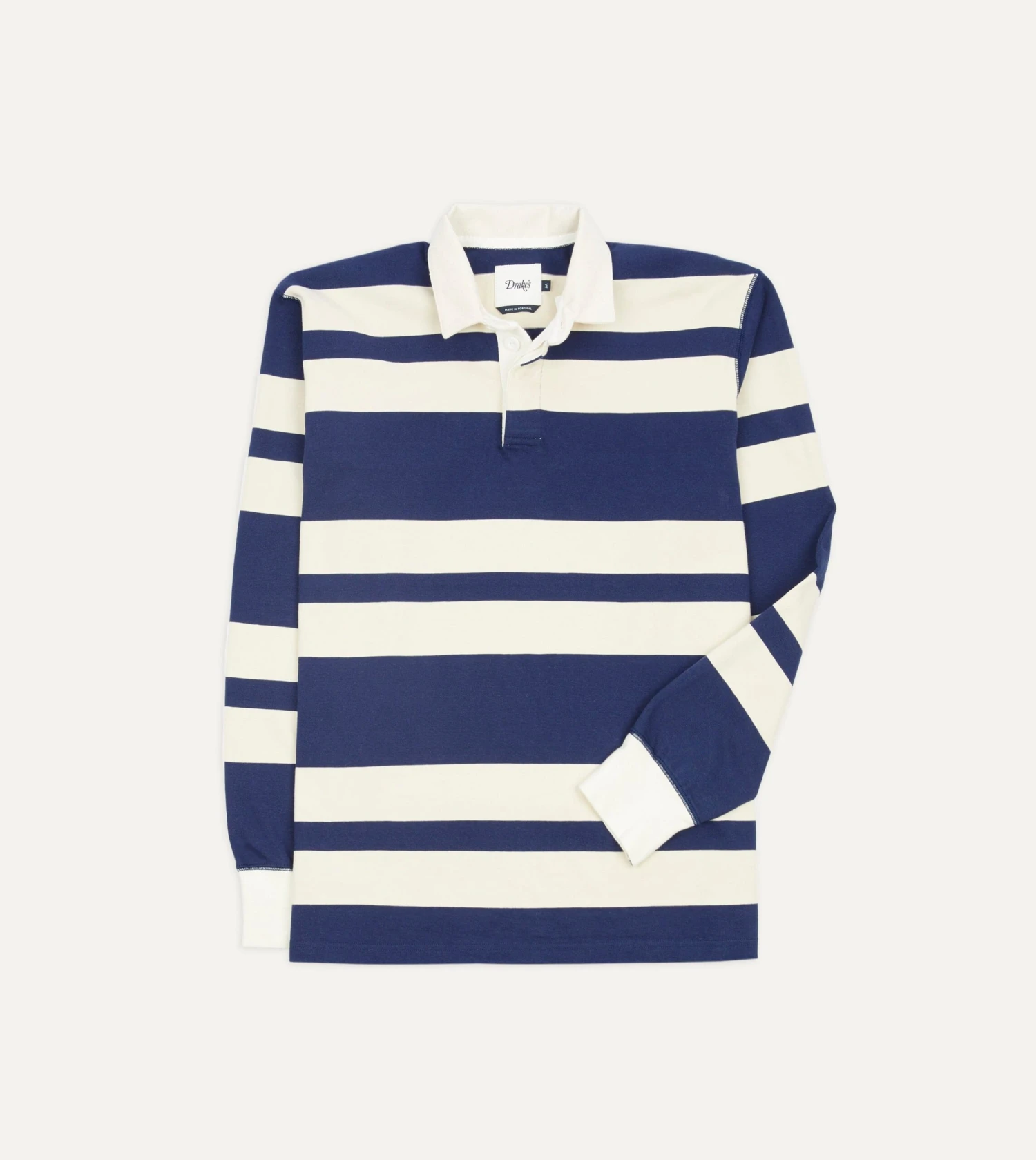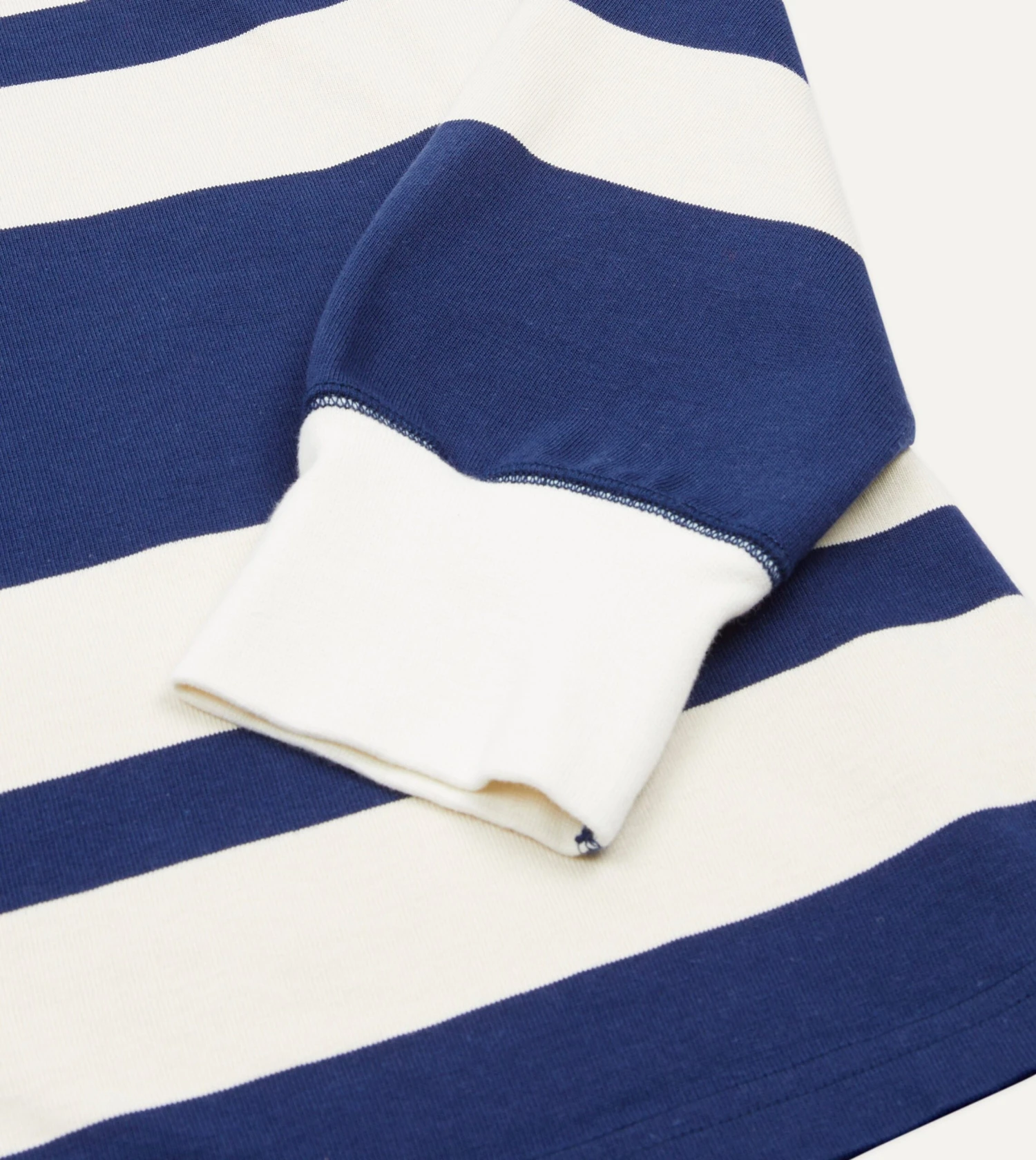 The rugby shirt has steadily become a staple of our collections, and this time around is no different. Cut from a densely knitted cotton, our idiosyncratic take on an enduring bit of vintage sportswear has a substantial feeling to it, as well as a certain tactility.