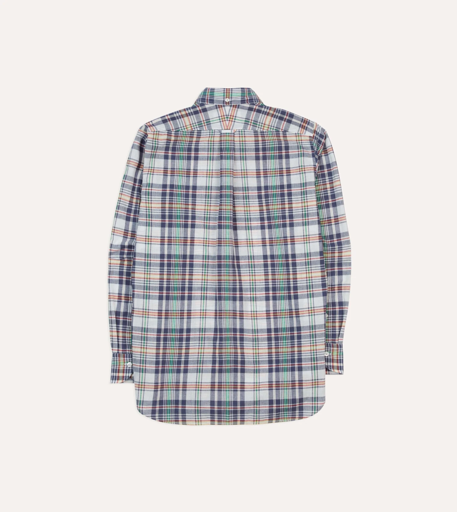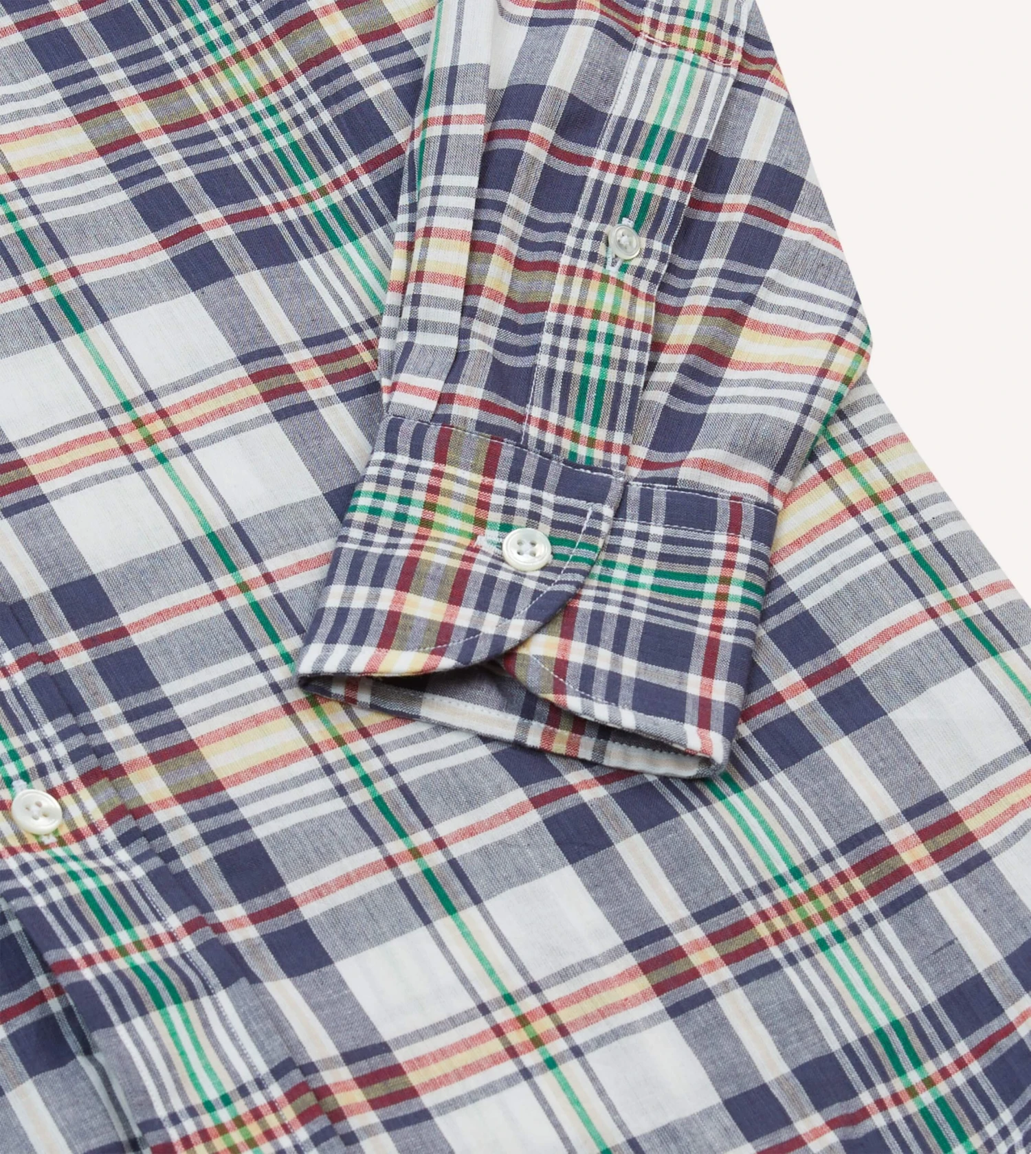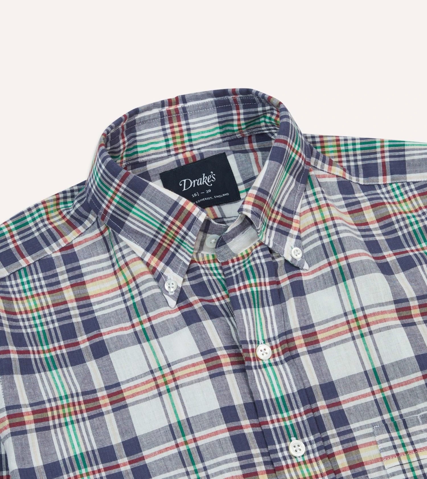 Navy And Yellow Madras Check Cotton Button-Down Shirt