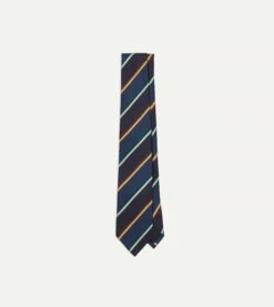 A striped silk tie is one of the most enduring pieces of neckwear available, redolent of earlier periods of style, while retaining a distinctly modern feel.