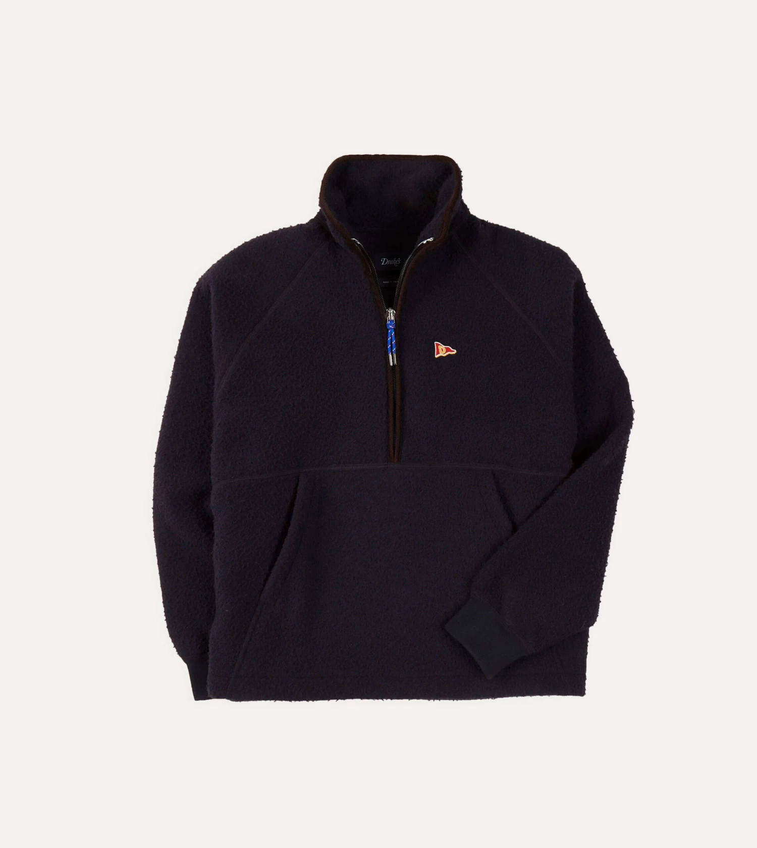 Combining sporty casualwear with a fabric that nods to tailored clothing, this half-zip pullover is crafted from a textured Casentino wool. Finished with an embroidered ‘D’ flag logo, it creates an air of carefree, lighthearted style.