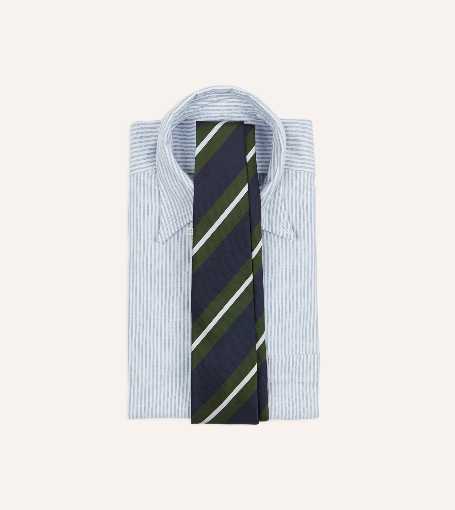 Cut from a beautiful mogador cloth, which blends silk and cotton for a substantial hand and a matte finish, this tie makes an impression with a regimental stripe motif.