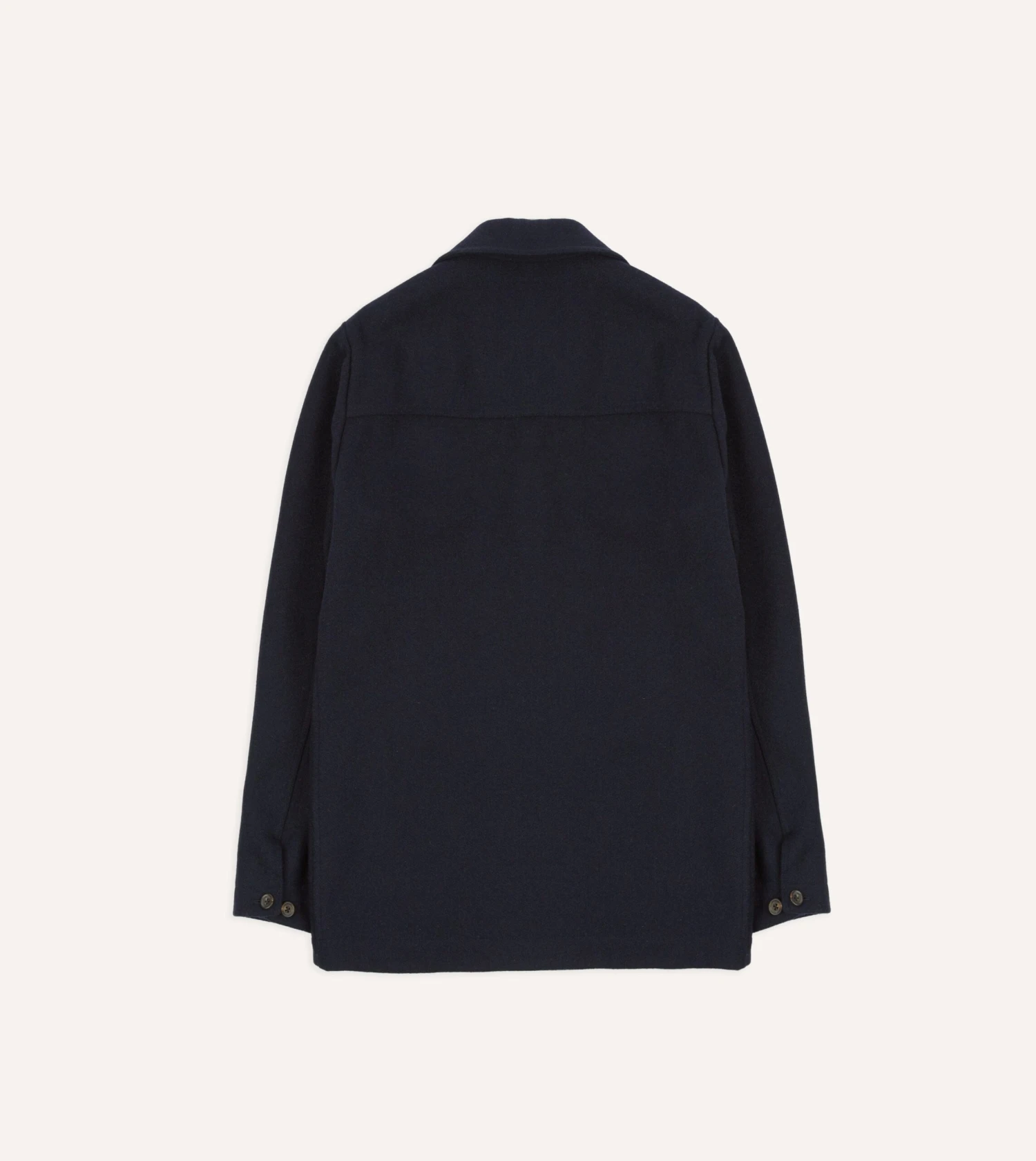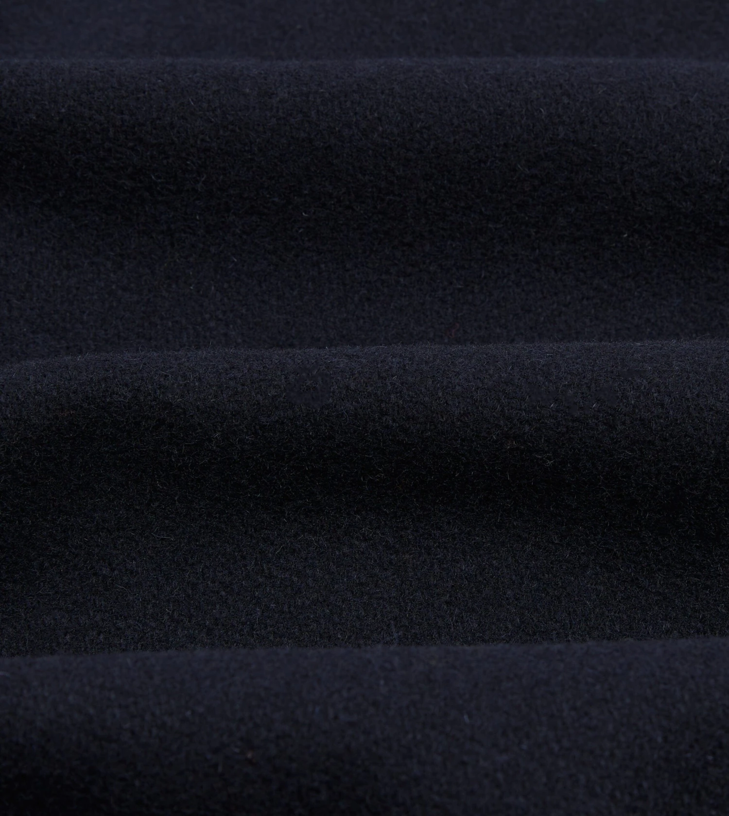 Constructed from a stout 16.2oz melton wool woven in Italy, it is finished with genuine horn values and features a distinctive reinforced shoulder, alongside patch and flap bellows pockets and adjustable cuffs.
