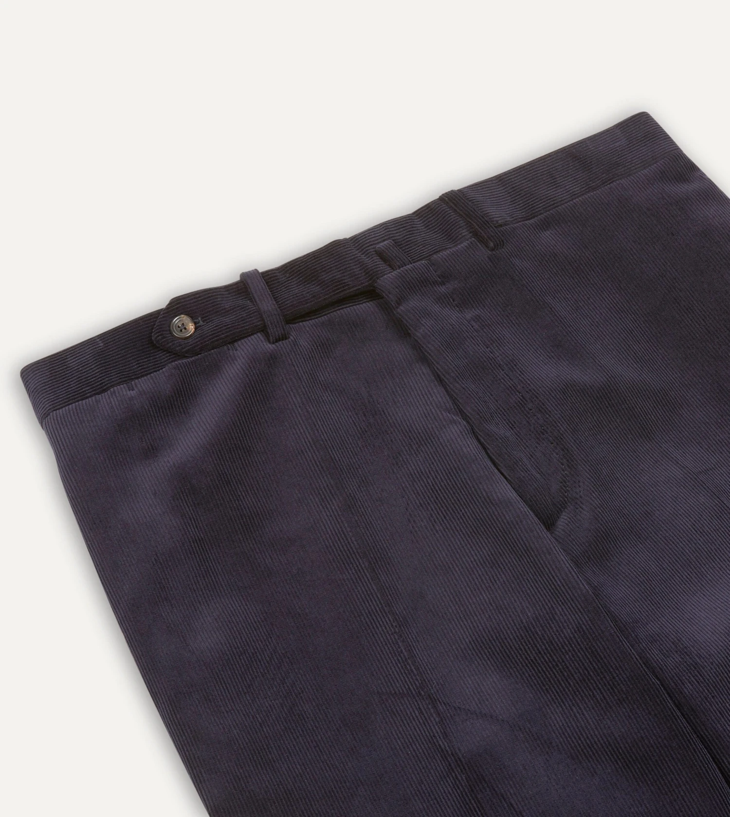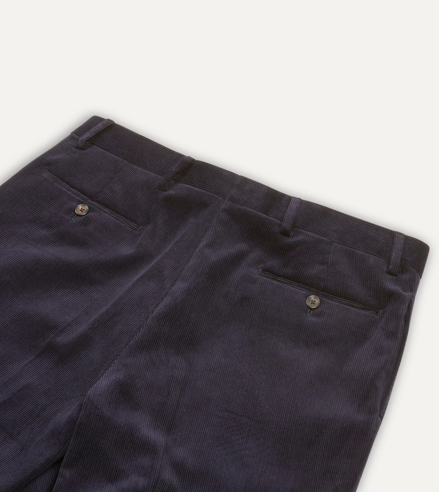 Navy Mid-Wale Corduroy Flat Front Trouser