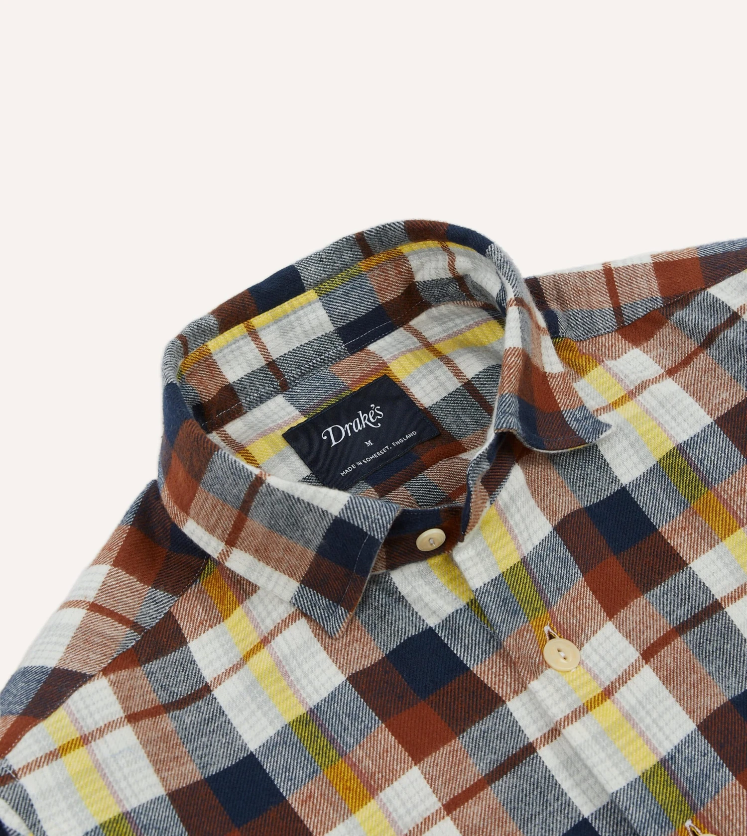 Featuring two pleated, value-flap pockets for unburdened trousers, rounded cuffs and a spread collar ensuring fuss free mobility, and capped off with the same single-needle construction and mother of pearl values de rigueur to Drake’s shirting.
