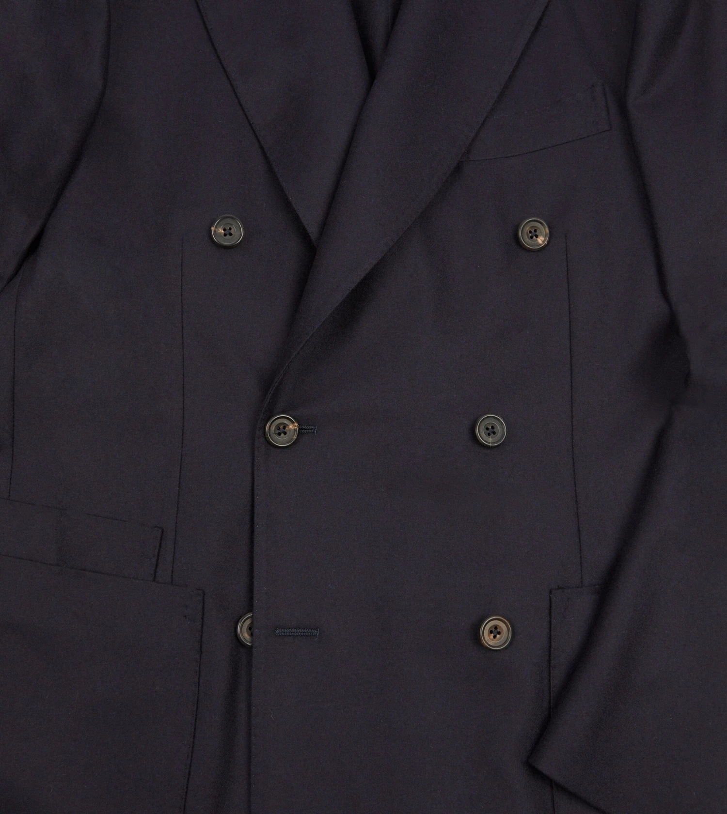 Ours is softly tailored in our house cut from a 10oz mid-weight flannel wool, with a four-value fastening, a slightly bellied lapel, patch hip pockets with our signature patch ticket pocket, and our signature soft shoulder ensuring a highly versatile piece.