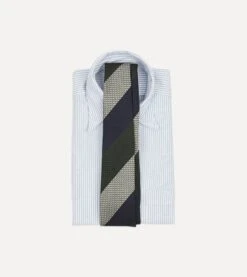 Olive And Red Block Stripe Hand Rolled Silk Grenadine Tie