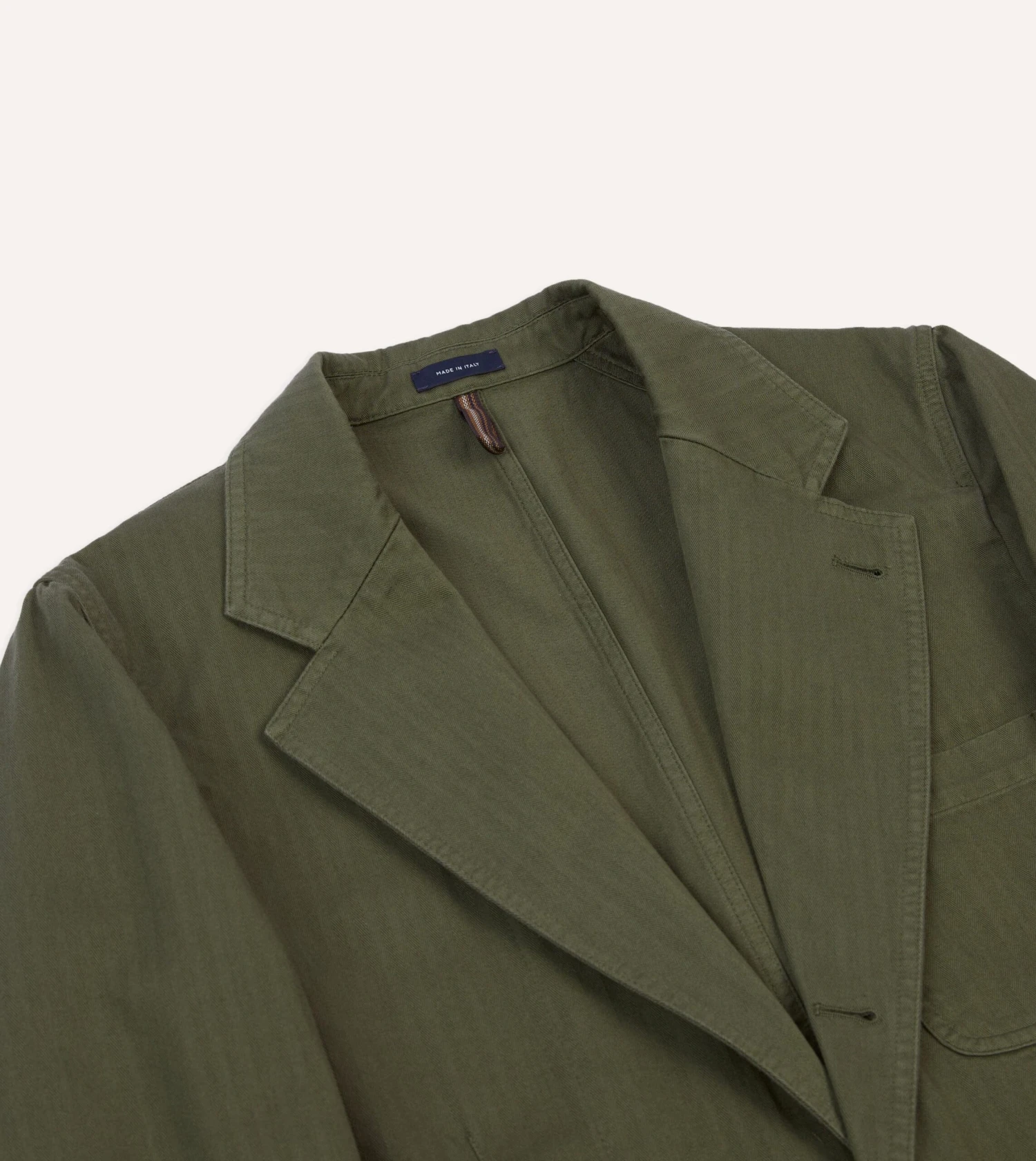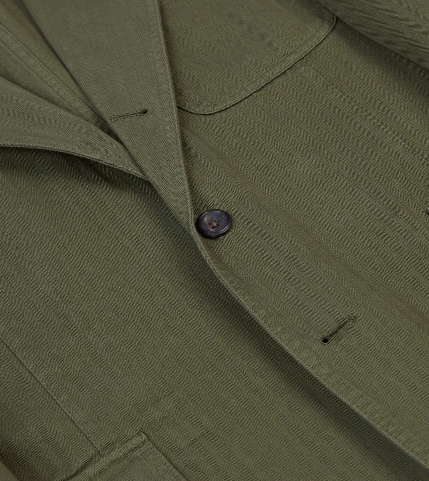 Cut from a 12.6oz herringbone cotton woven in the heart of Valtellina since 1895, pair it with the matching trousers for an informal take on the classic two-piece suit.
