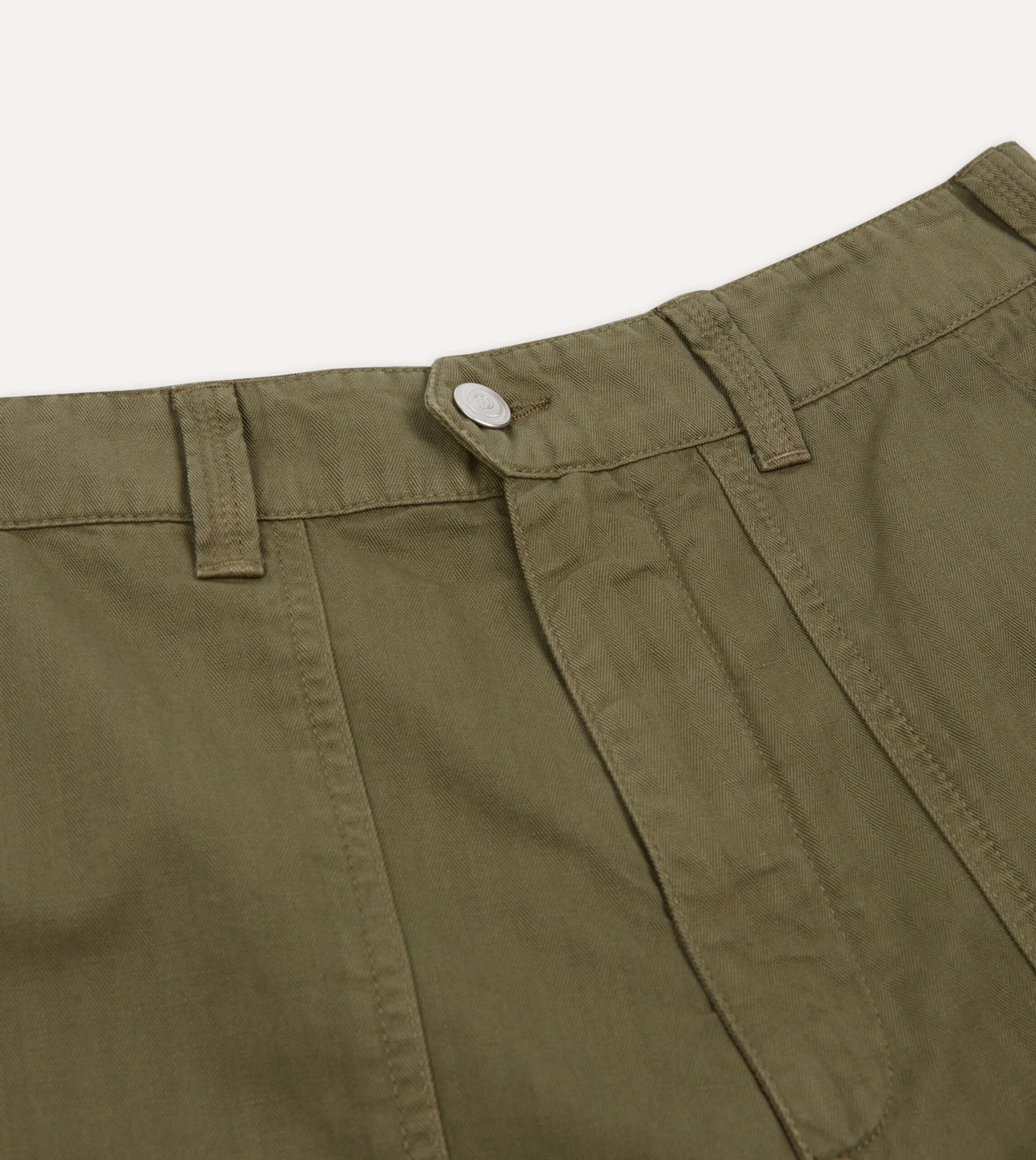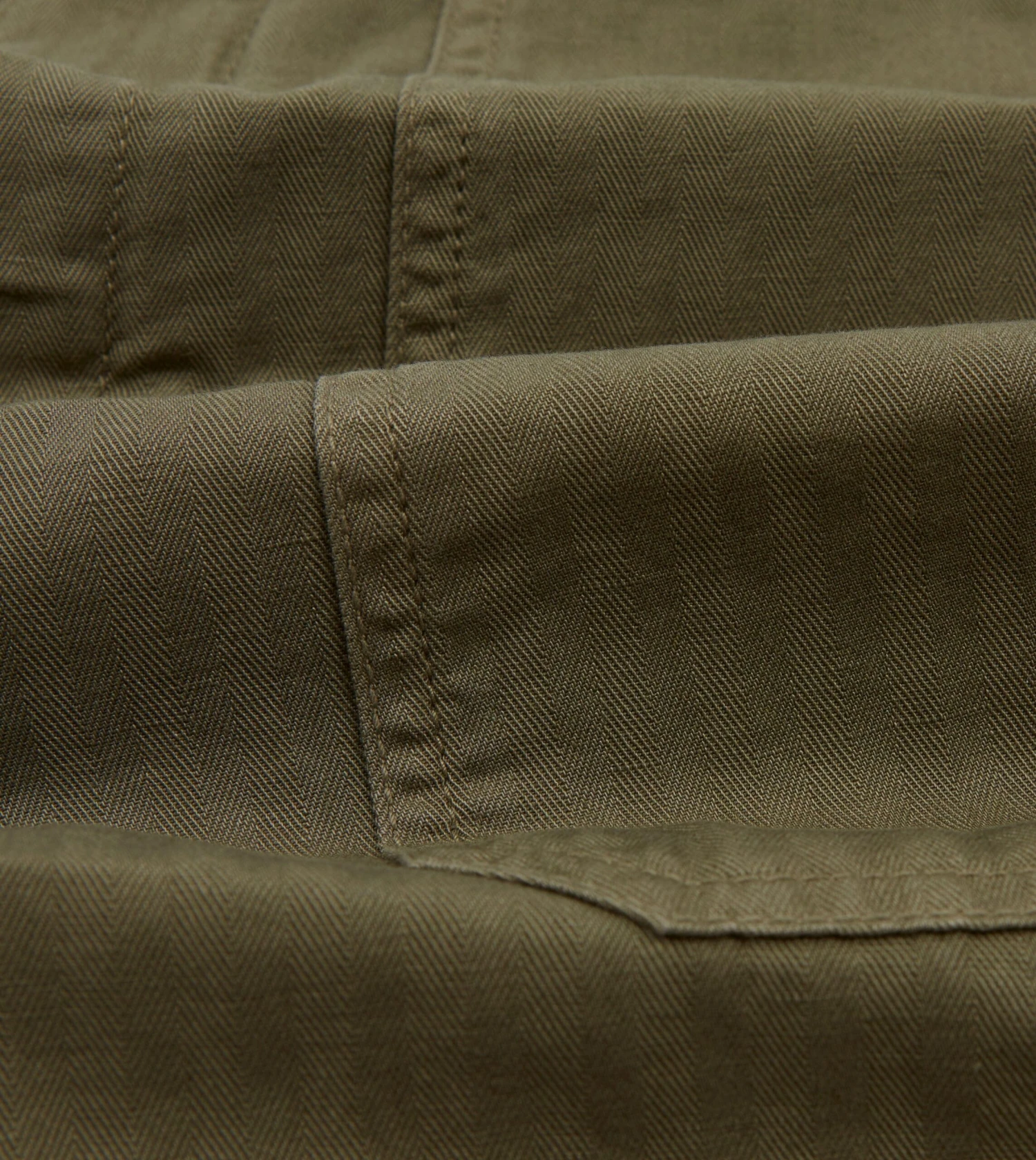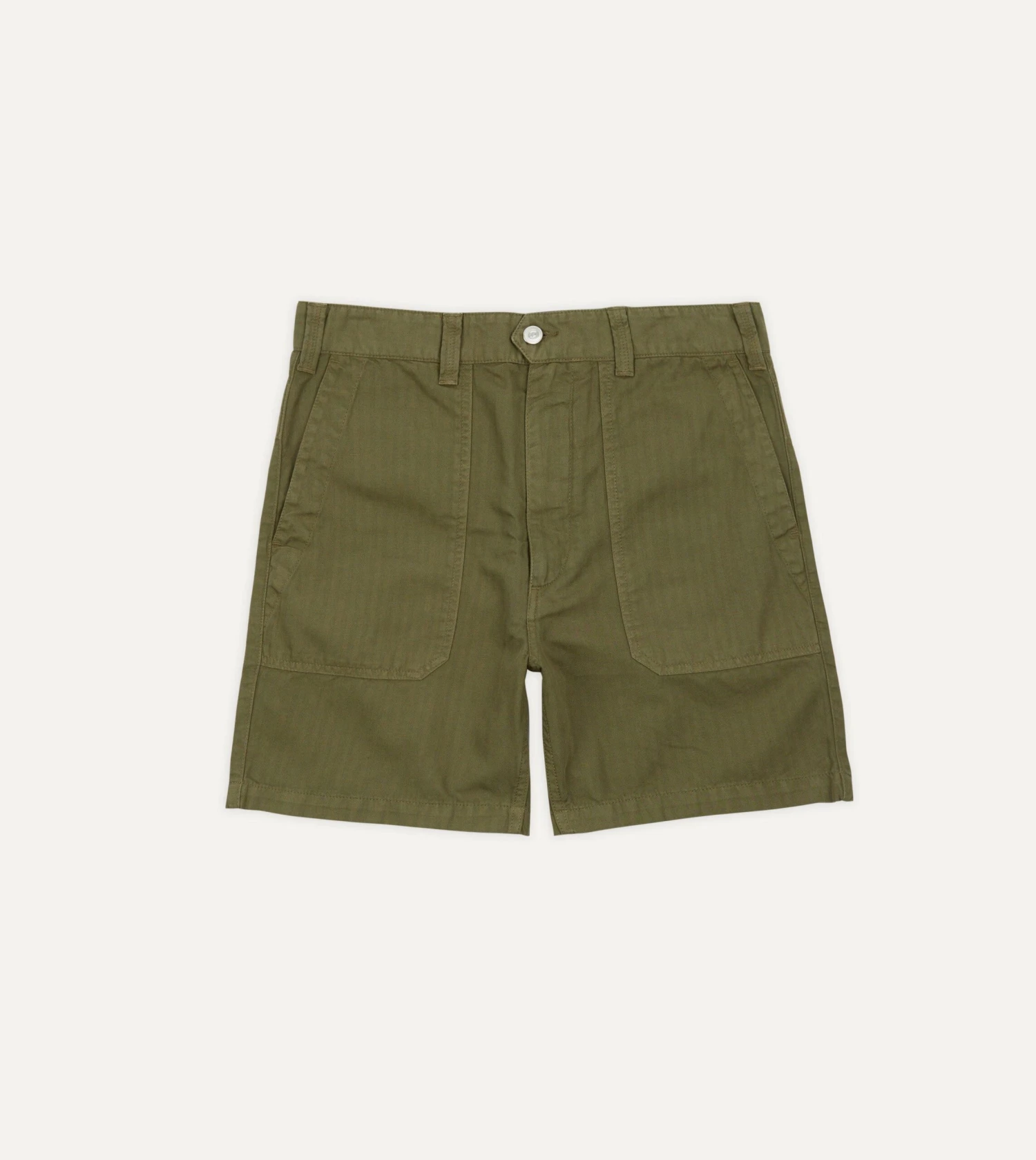 Inspired by vintage military garb, reinforced pockets and rivet values keep up the utilitarian nature of these shorts, while a full leg and high rise that sits just above the hip creates a classic, mid-century shape.