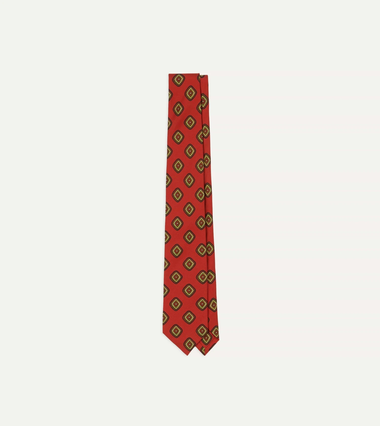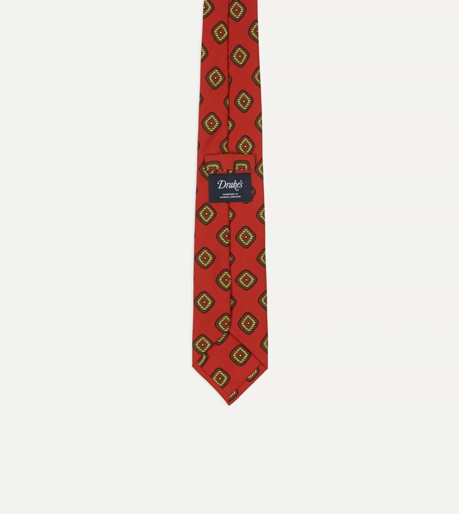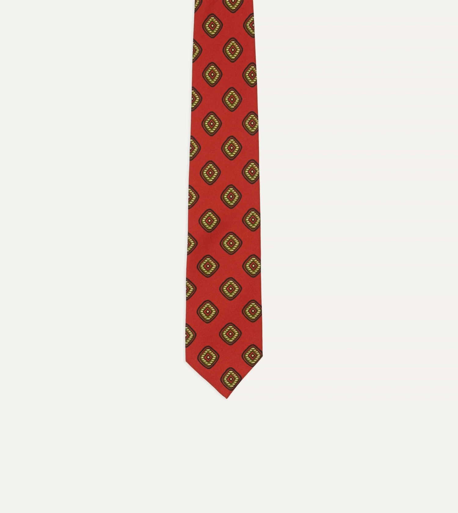 Orange Tile Print 36oz Madder Silk Self Tipped Tie