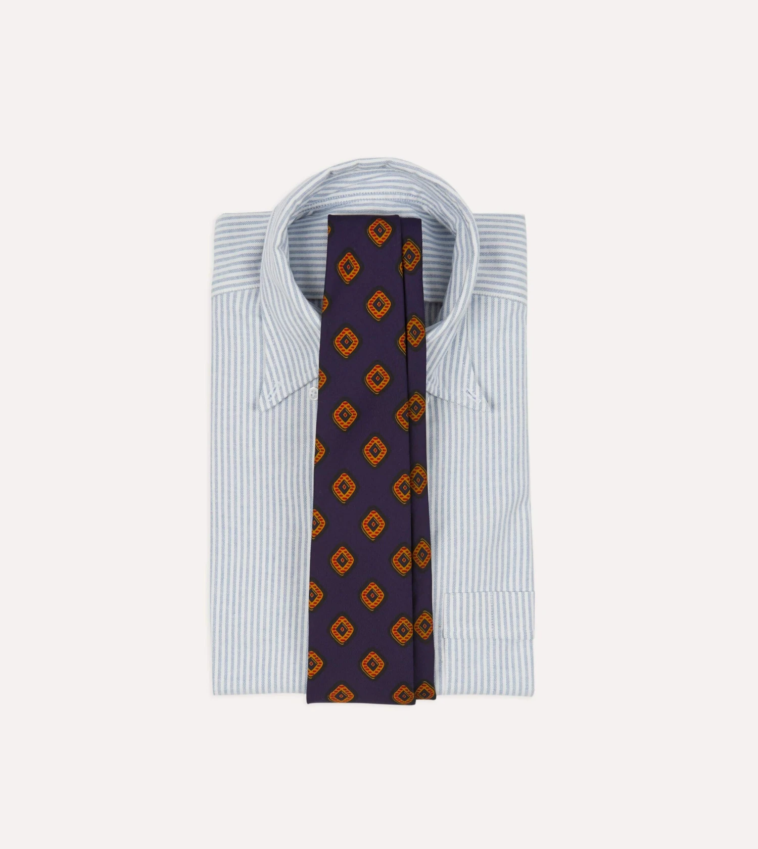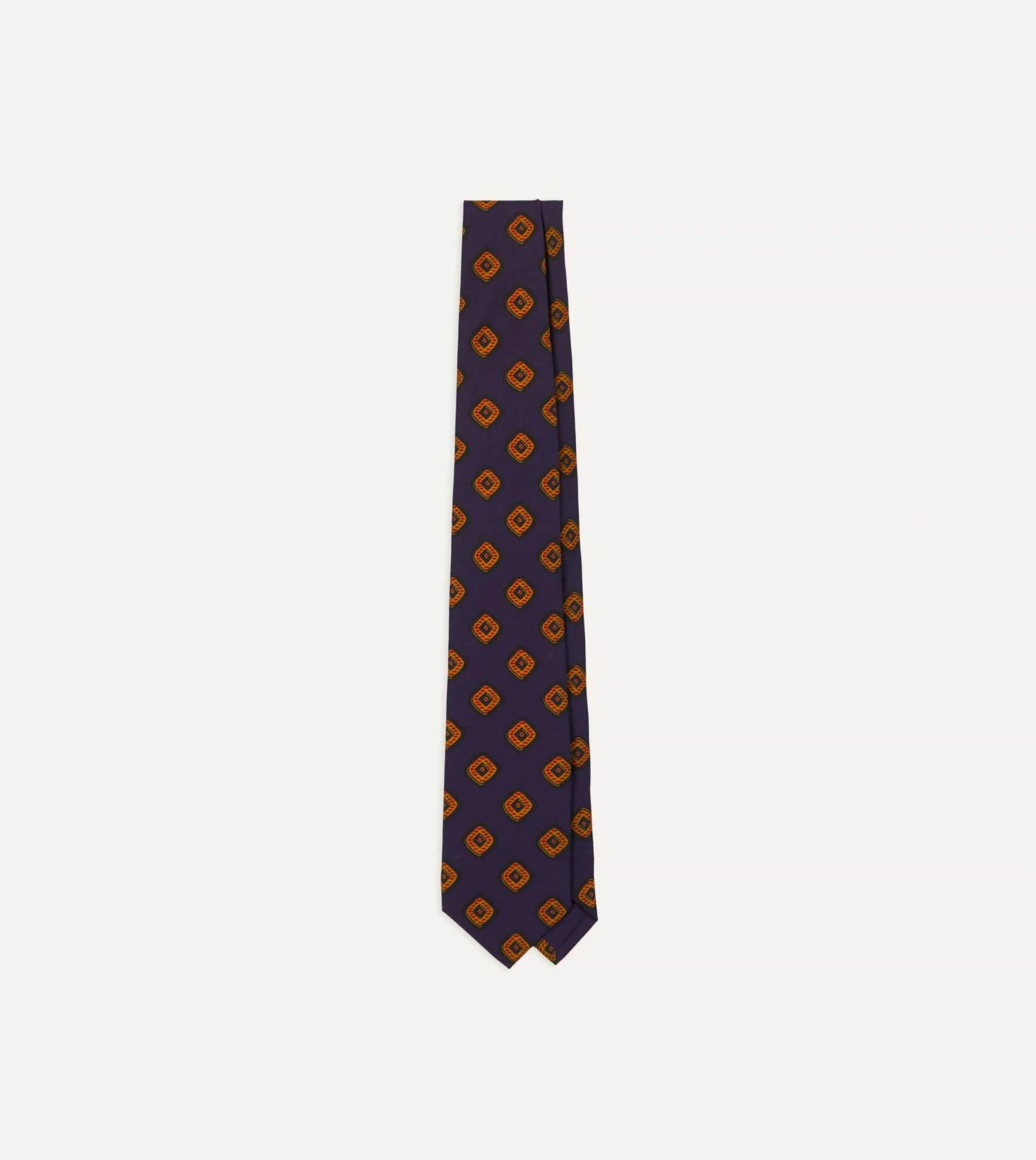 An elegant necktie, handmade in London and featuring an archival tile design, hand-printed in Macclesfield on 36oz Madder silk.