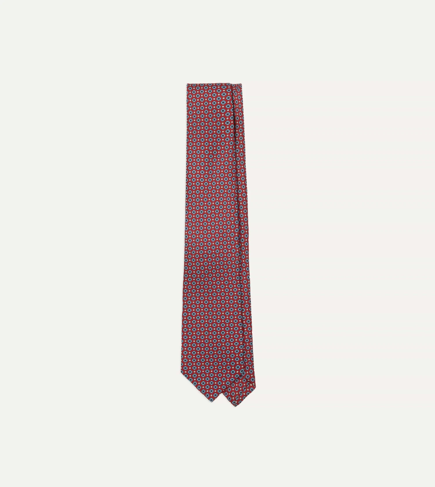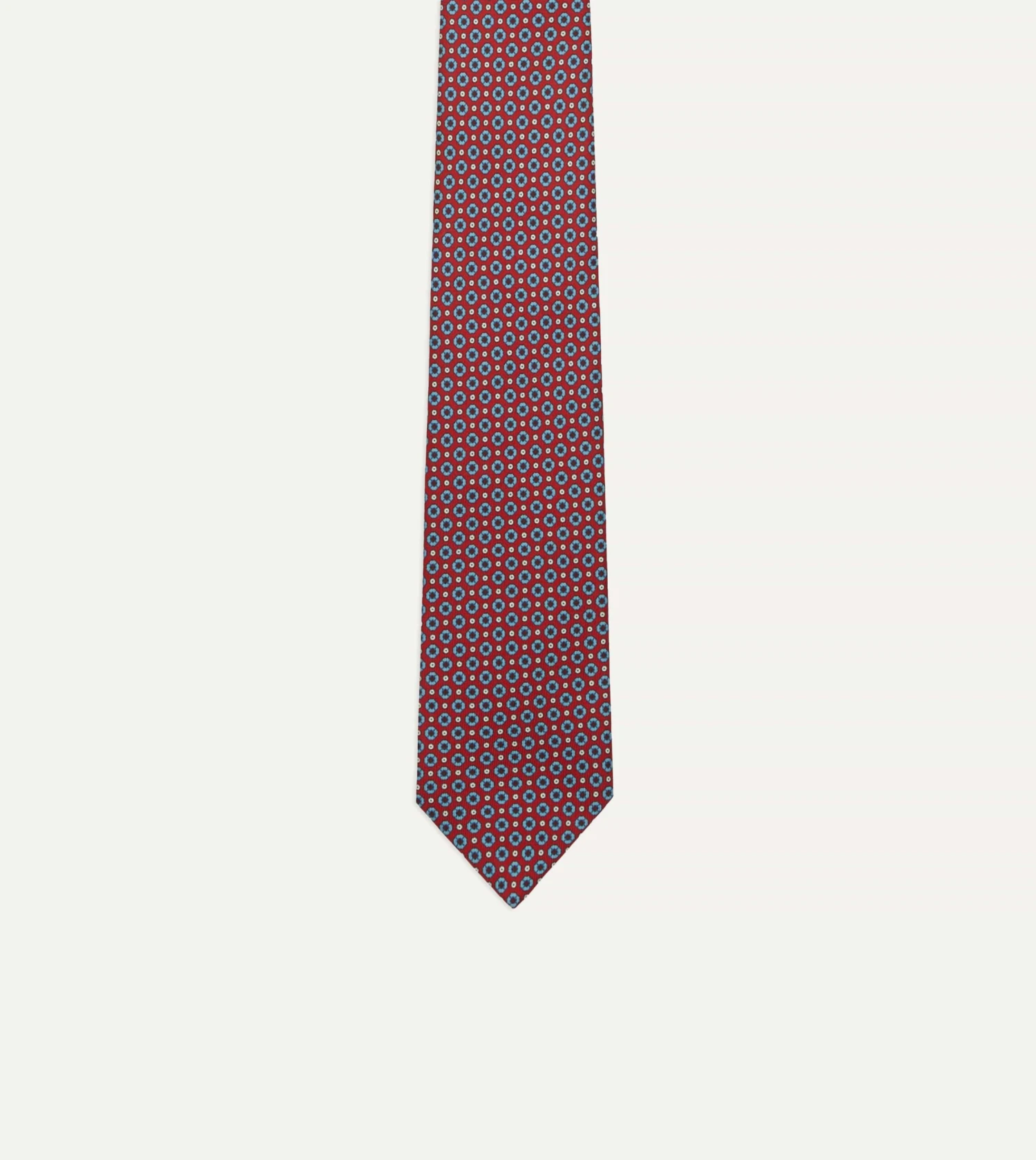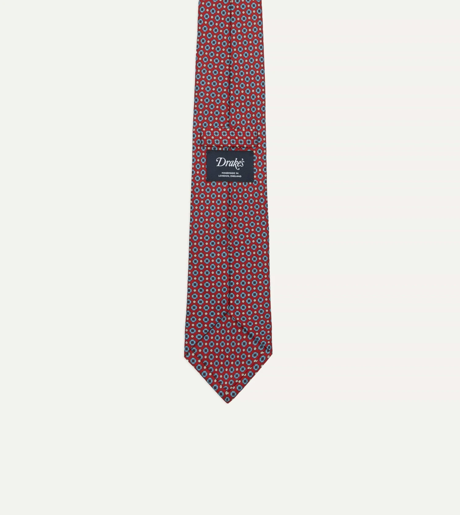 An ornate medallion design simply exudes elegance, particularly when printed on pure silk and hand rolled by our dedicated tiemakers in the heart of east London.