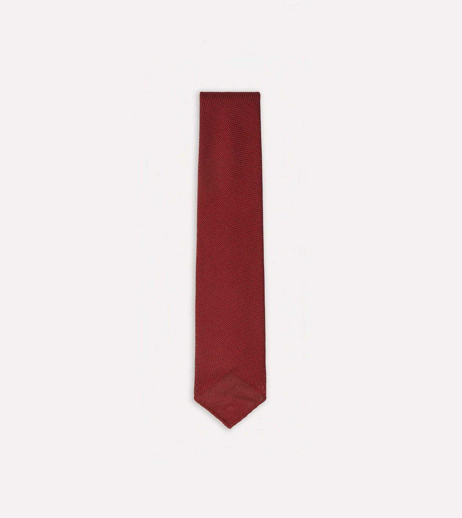 Red Fine Woven Grenadine Silk Hand Rolled Tie