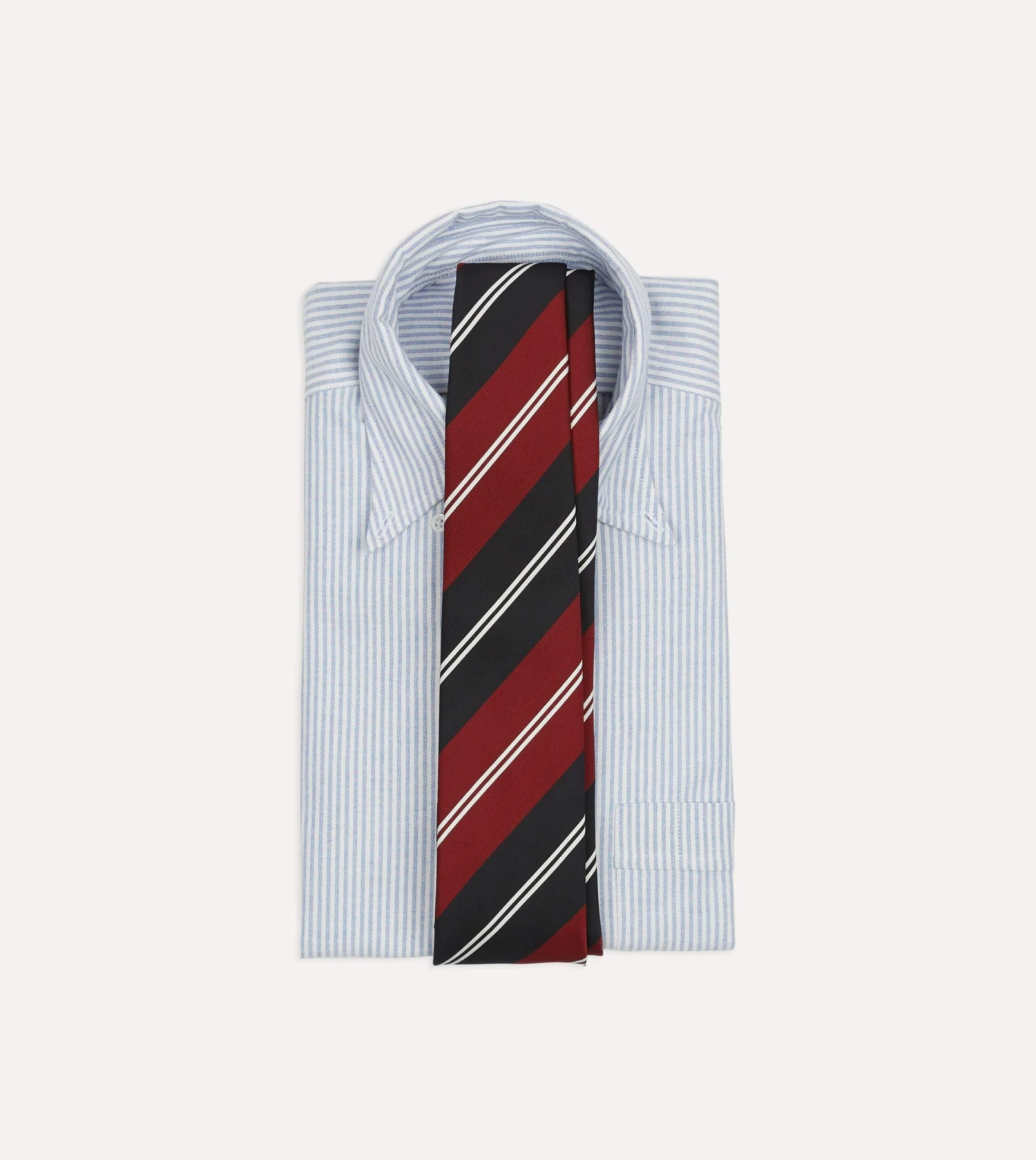 Cut from a beautiful mogador cloth, which blends silk and cotton for a substantial hand and a matte finish, this tie makes an impression with a regimental stripe motif.