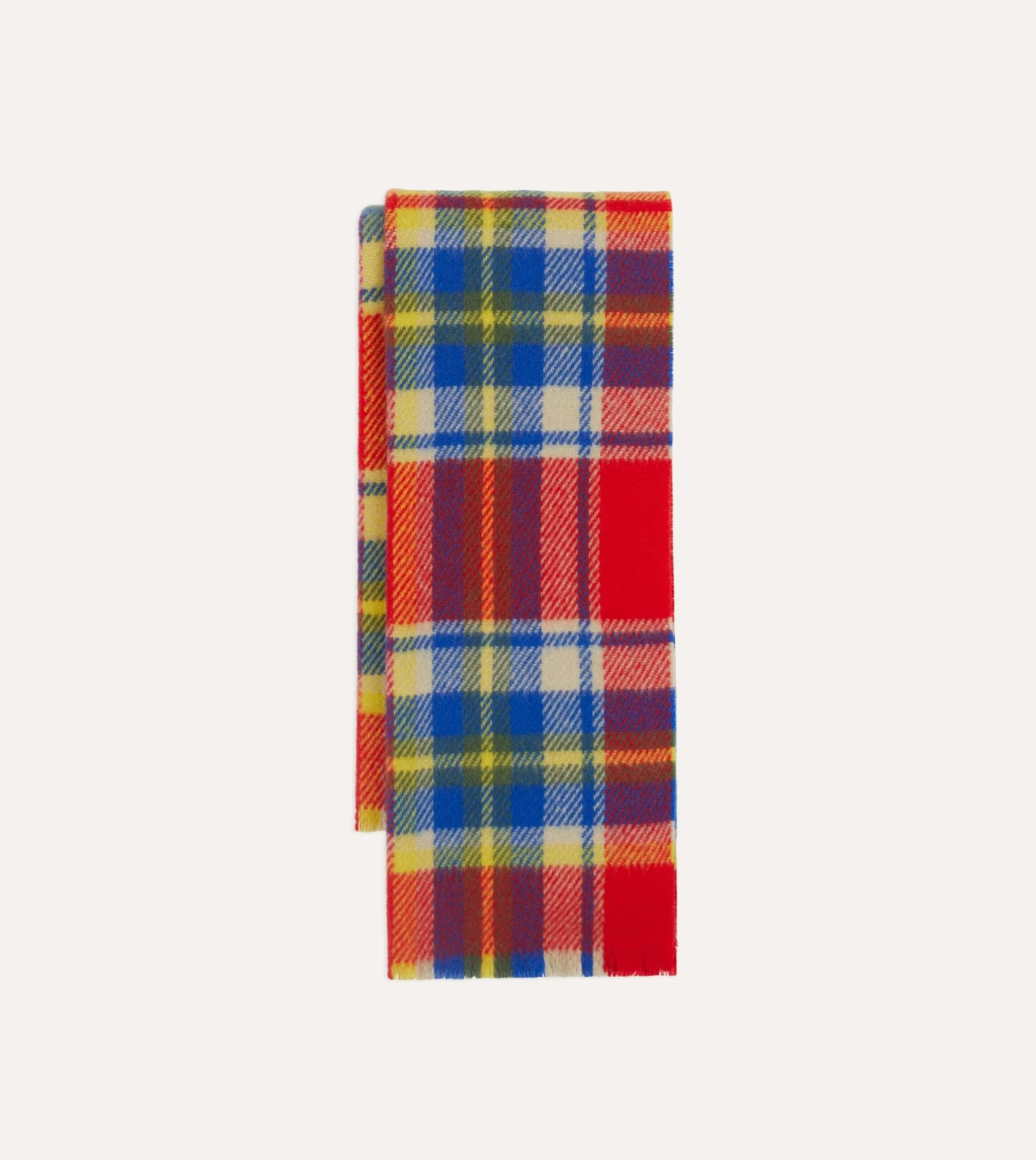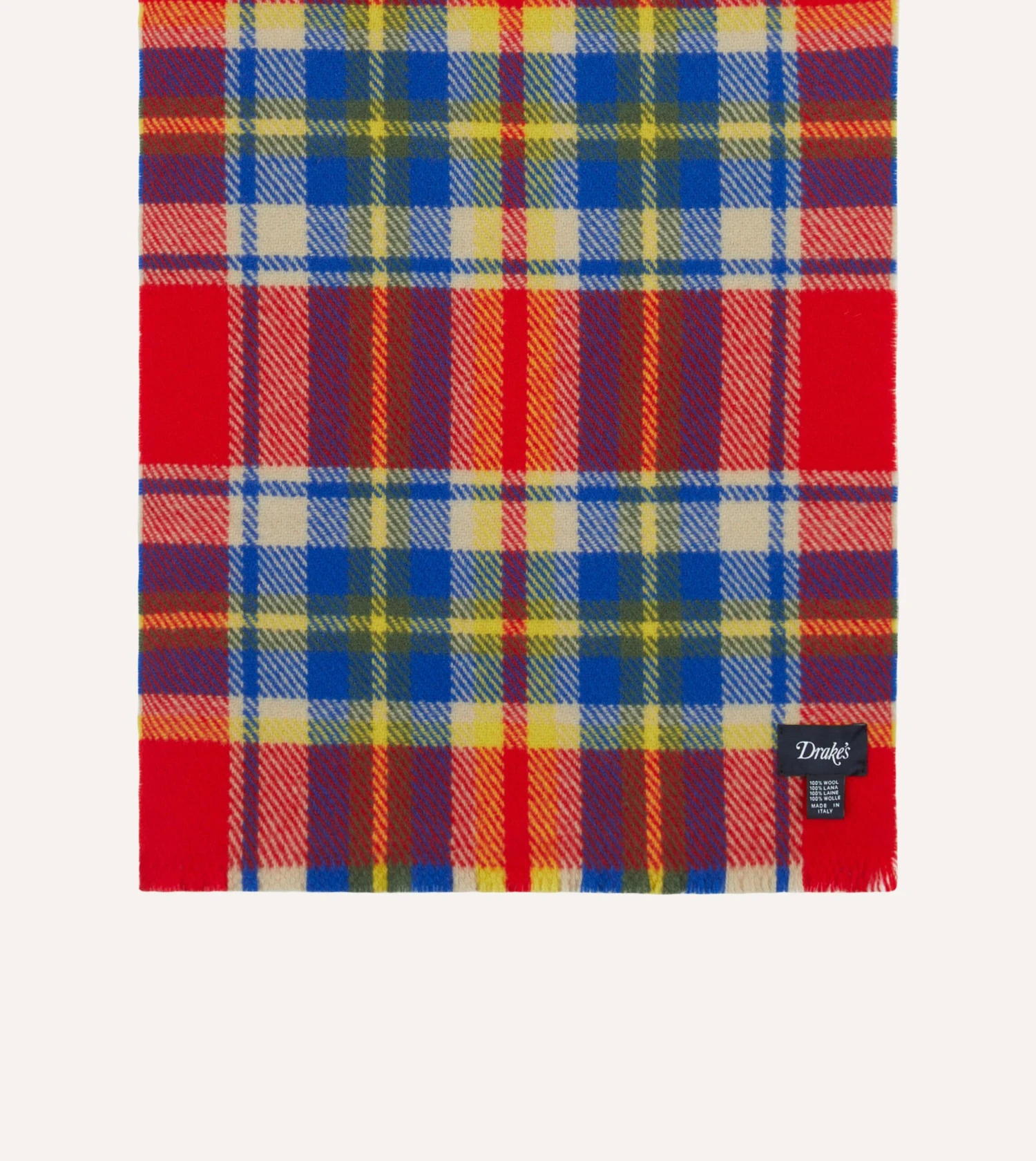 Woven in Tuscany, Italy, this scarf in an archival tartan check is a warming and lustrous addition to your cold weather wardrobe. The highest-quality virgin wool fibres with natural temperature regulating properties keep things cosy, while the eyelash fringe and tonal colouring can be applied to a wealth of looks, ideal for adding a subtle sense of Highlands charm to an ensemble.