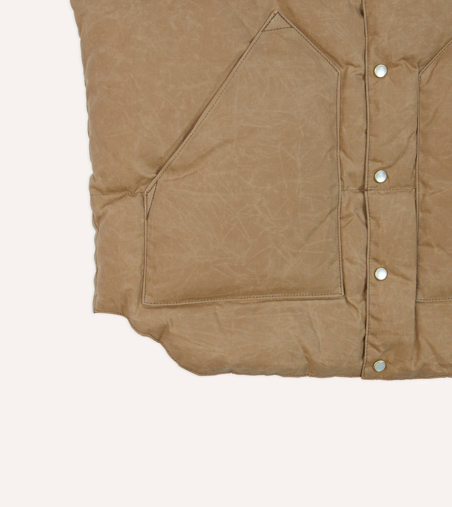 Made in Japan expressly for Drake’s to the same exacting standards as the American originals from the 1960s, the down vest from Rocky Mountain Featherbed features a single-piece Western style yoke and a 90/10 down to feather ratio filling for a stylish and warming addition to a winter wardrobe.